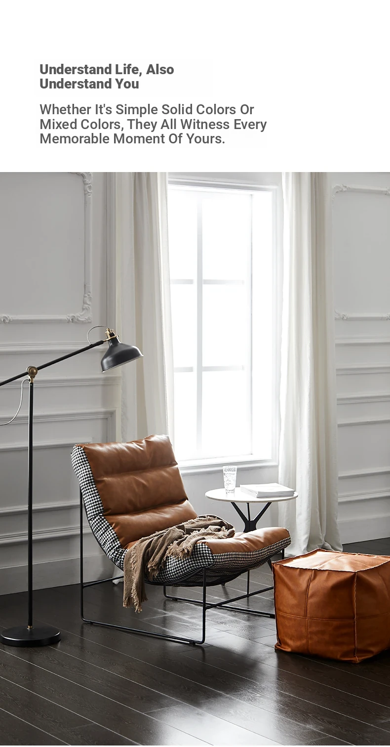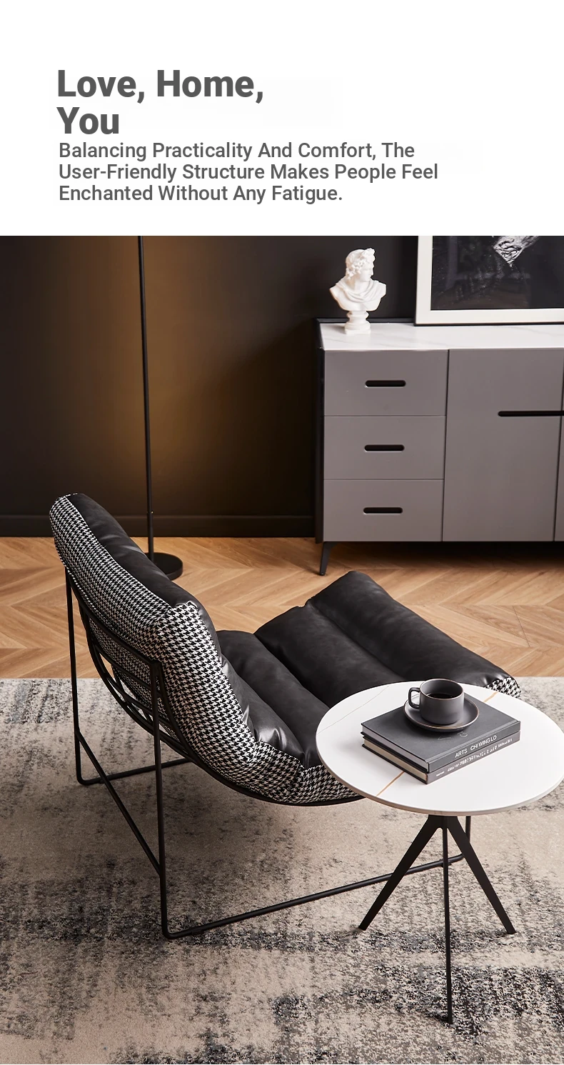 Designer Single Sofa - Modern Minimalist Lightweight Luxury Houndstooth Pattern Lazy Chair for Living Room - Cozy Caterpillar Small Armchair Perfect for Relaxation