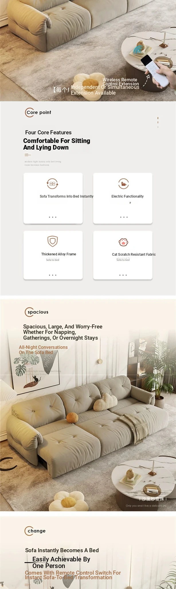 Electric Sofa Bed for Living Room - Automatic Folding and Stretching Multifunctional Cloud Sofa with Cat Scratch Resistant Fabric, Perfect for Cozy Spaces