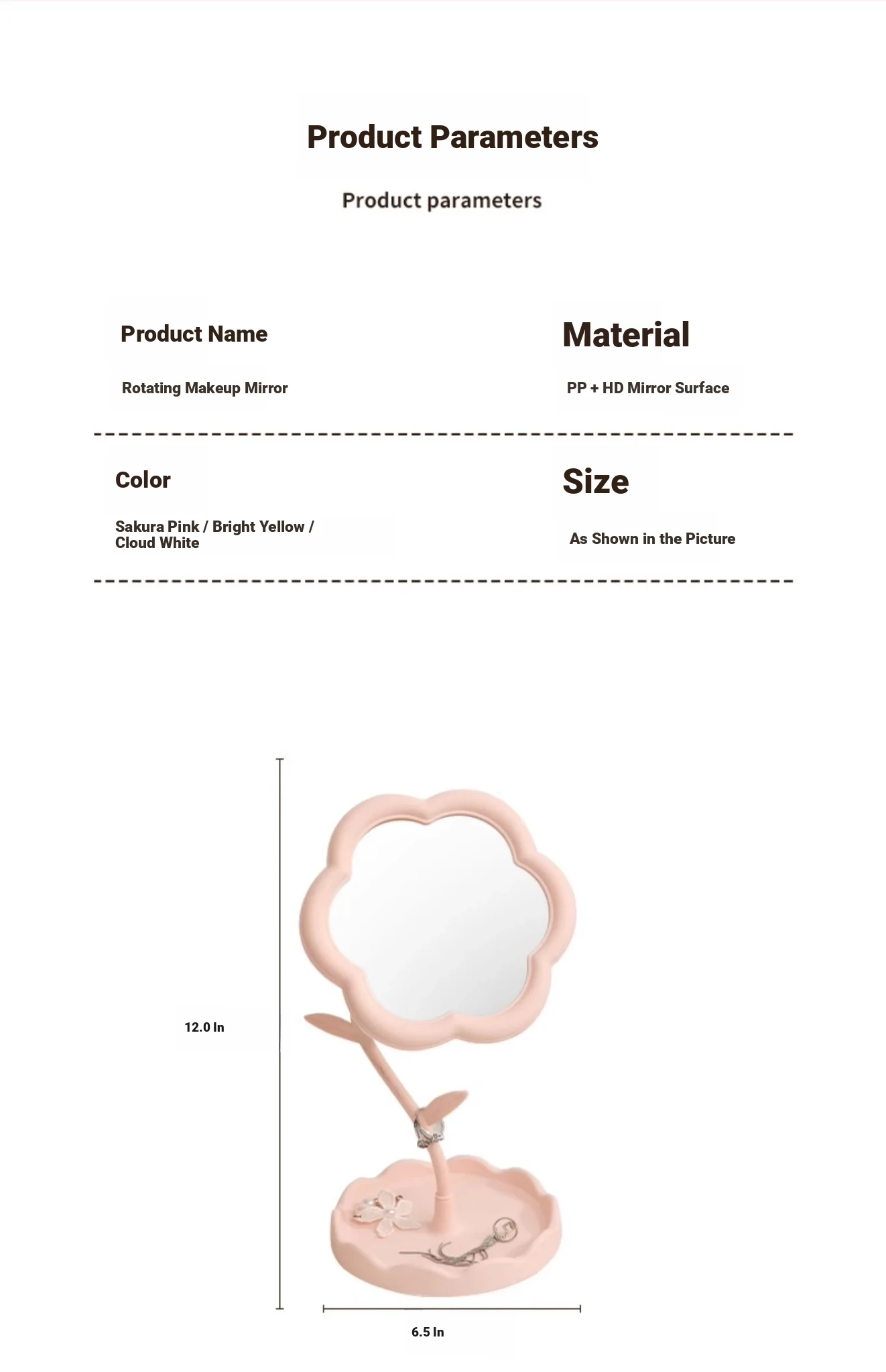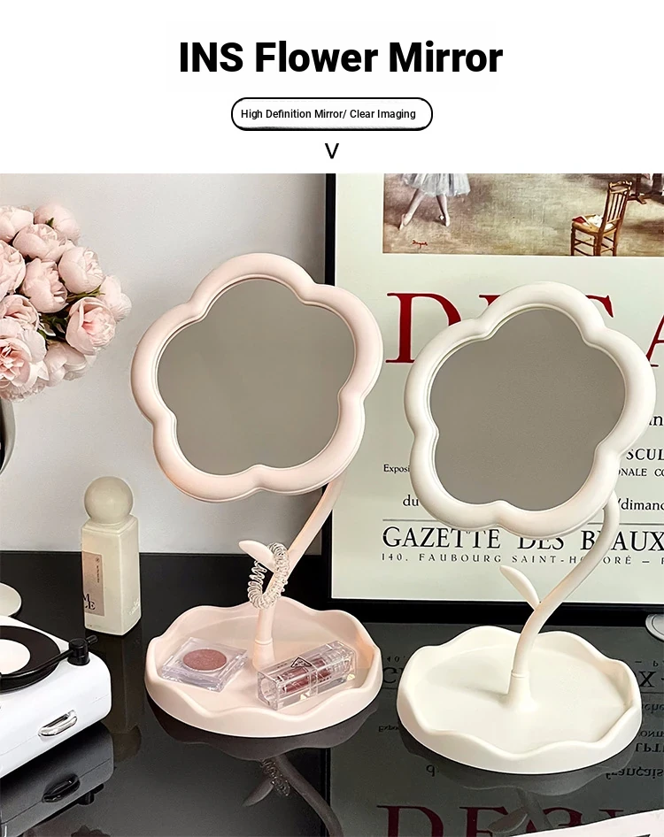 Elegant Floral Makeup Mirror - Stylish Vanity Table Mirror for Beauty Enthusiasts, Perfect for Bedrooms and Dressing Areas, Adds a Touch of Sophistication to Your Space.
