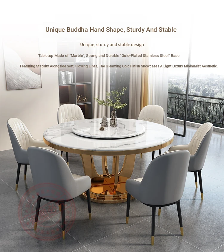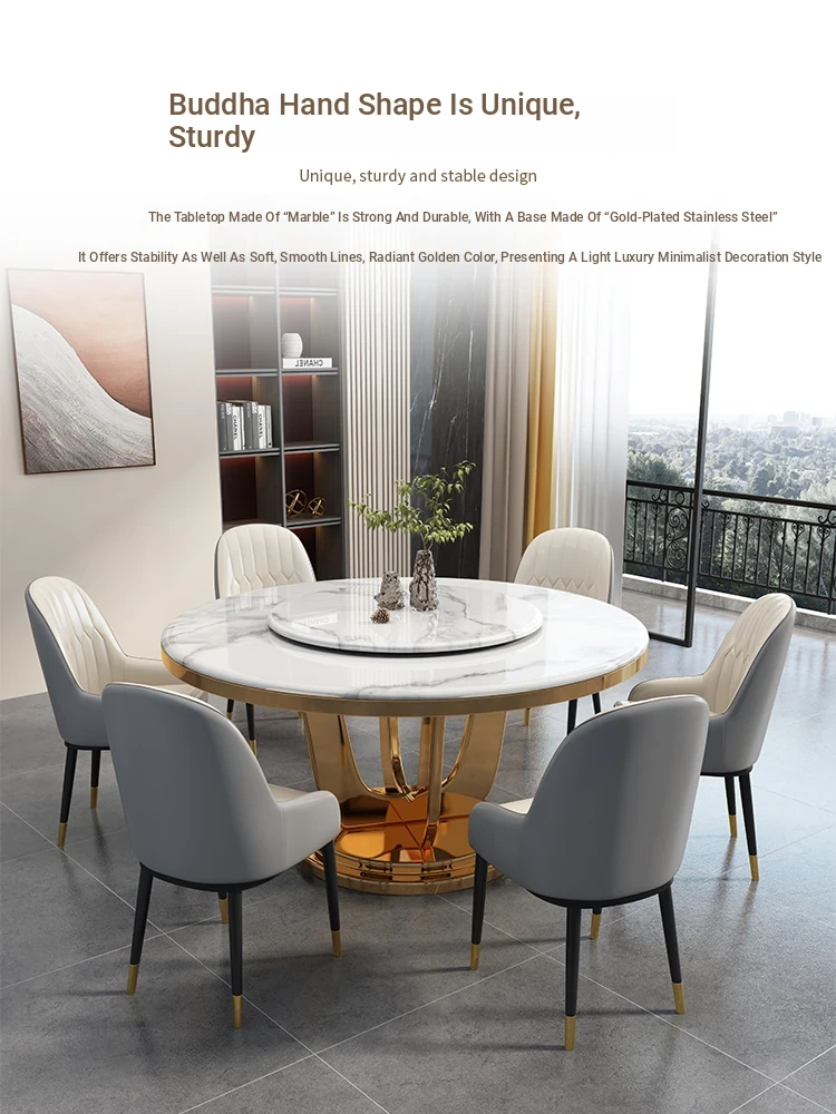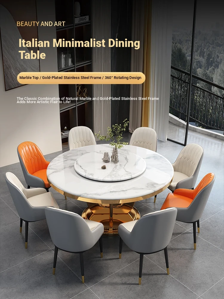 Accessible Luxury marble dining table (send turntable) +10 chairs