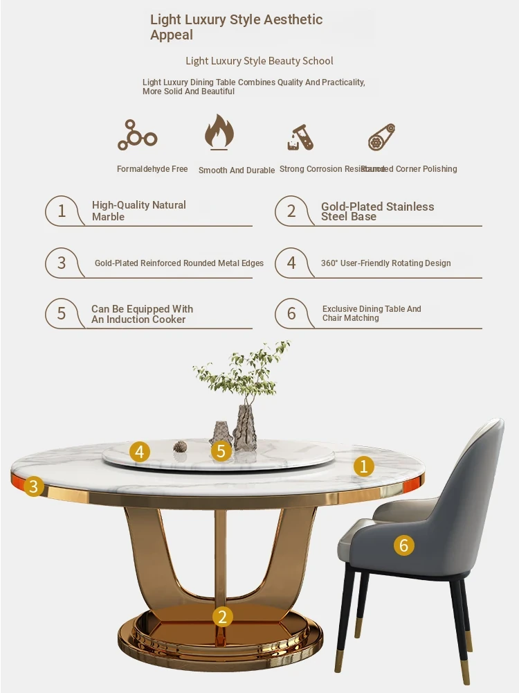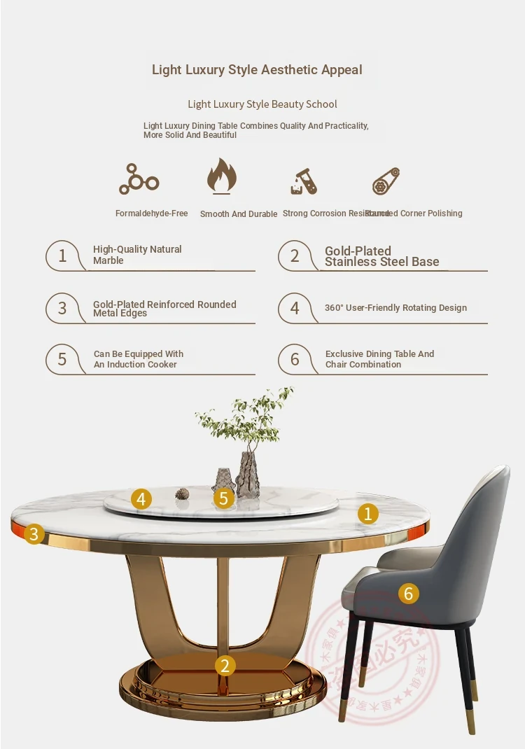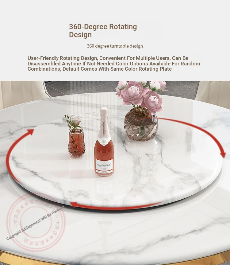 Accessible Luxury marble dining table (send turntable) +6 chairs