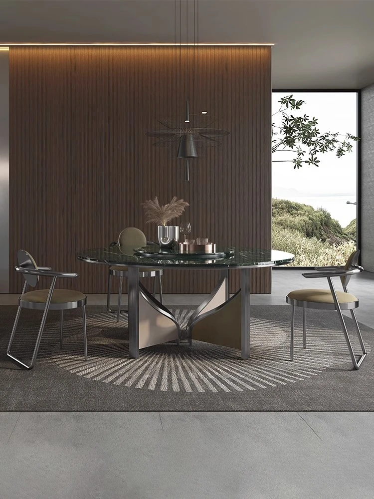 Elegant Natural Stone Dining Table - Luxurious Designer Table and Chair Set for Home and Villa, Minimalist Italian Style, Perfect for High-End Living Spaces