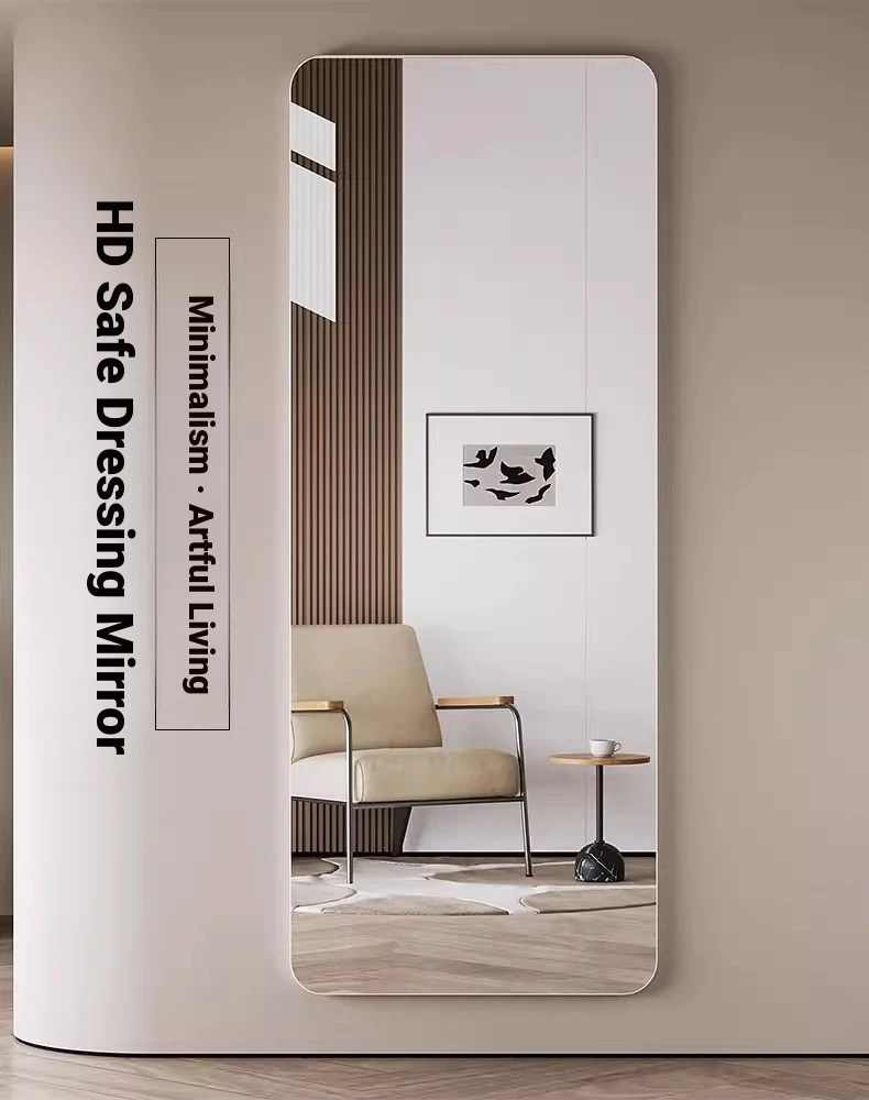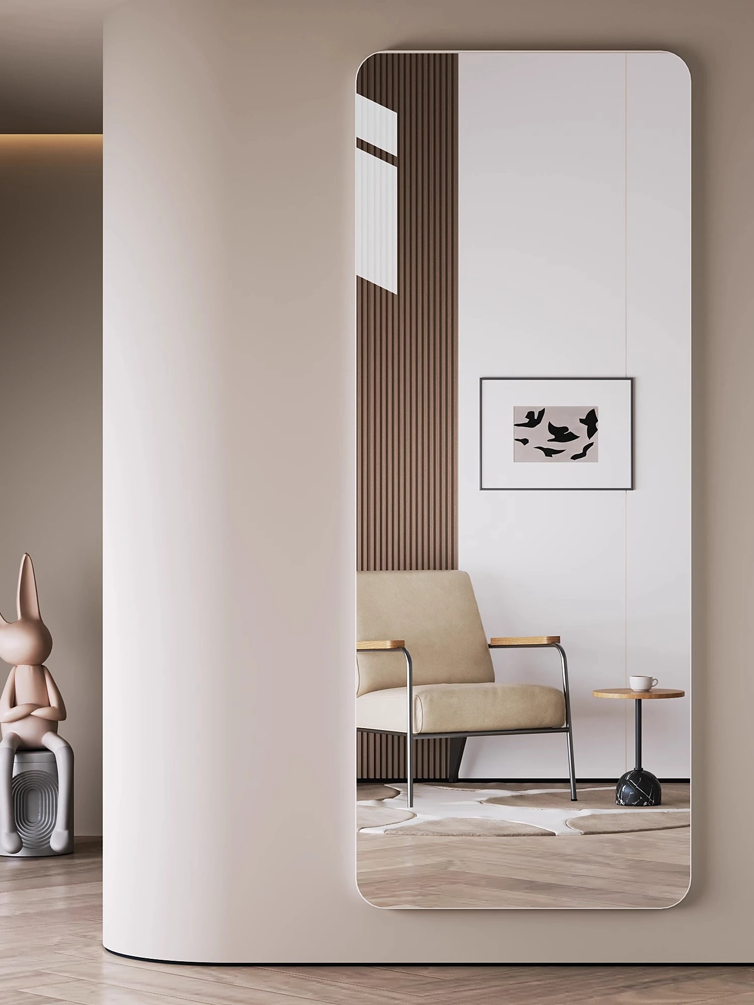 Frameless Full-Length Mirror - Stylish Self-Adhesive Dressing Mirror for Closet Doors, Wall-Mounted or Floor Standing, Perfect for Bedrooms and Home Use, Elegant and Functional Design