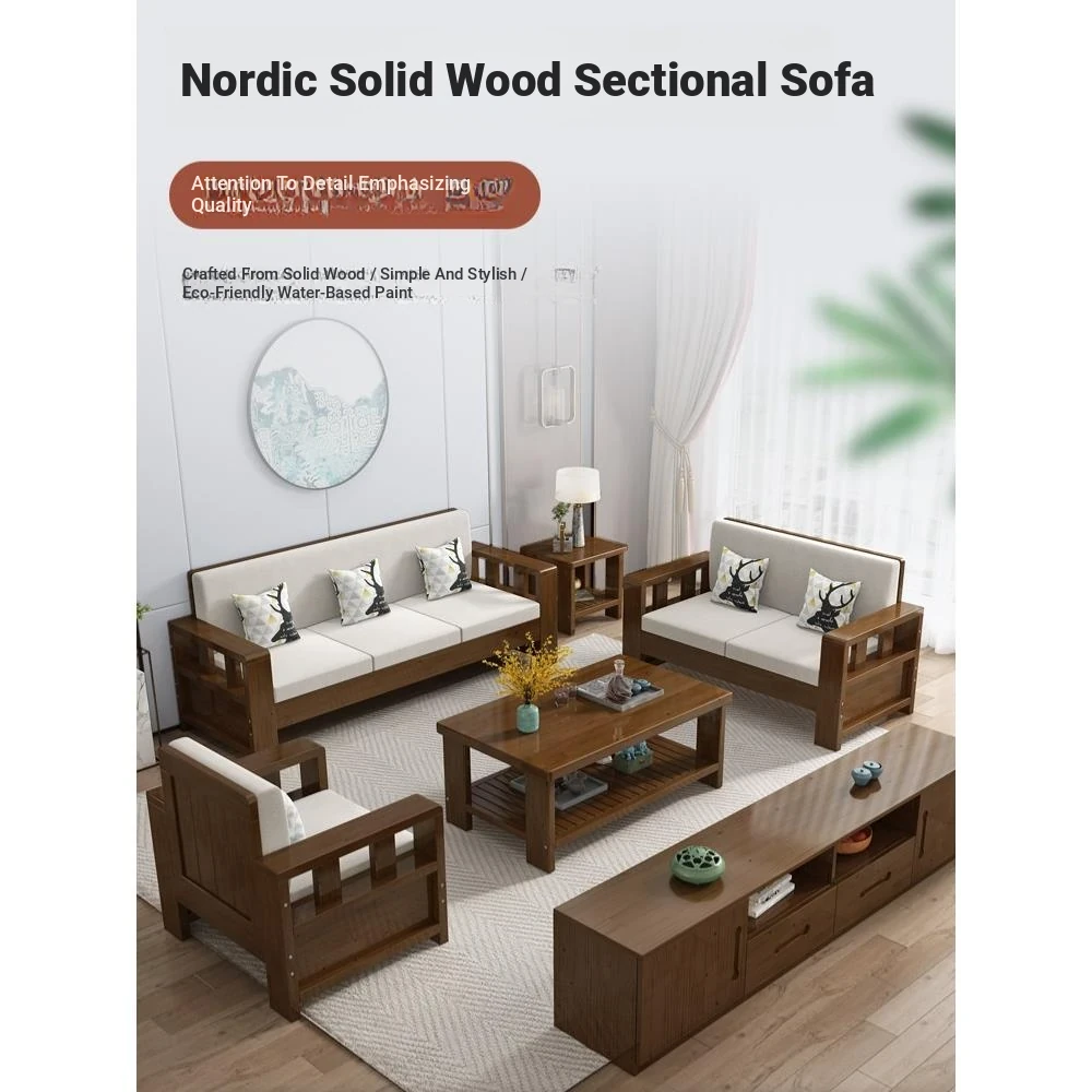 [Free Shipping to Hong Kong] Chinese Style Solid Wood Sofa Set - Minimalist Design for Living Room, Versatile for All Seasons, Perfect for Small Spaces