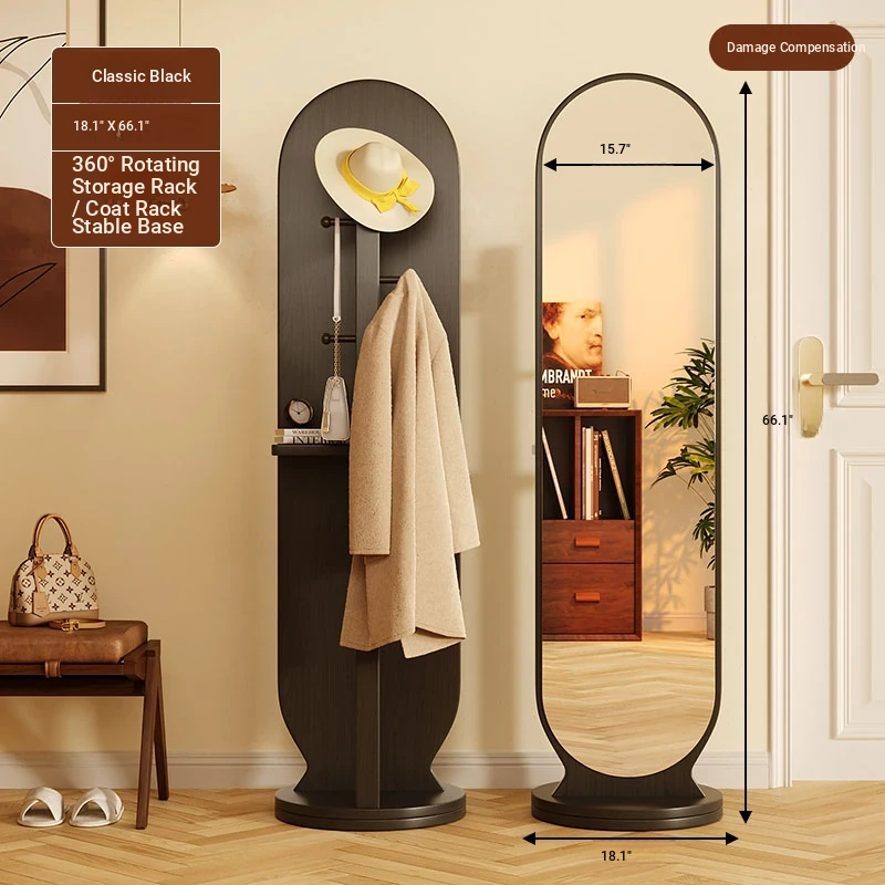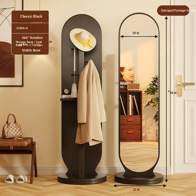 Damaged package❤Flagship-Elegant Black 56*168 [Rotate + Storage + Hanging Clothes] Shunfeng Door