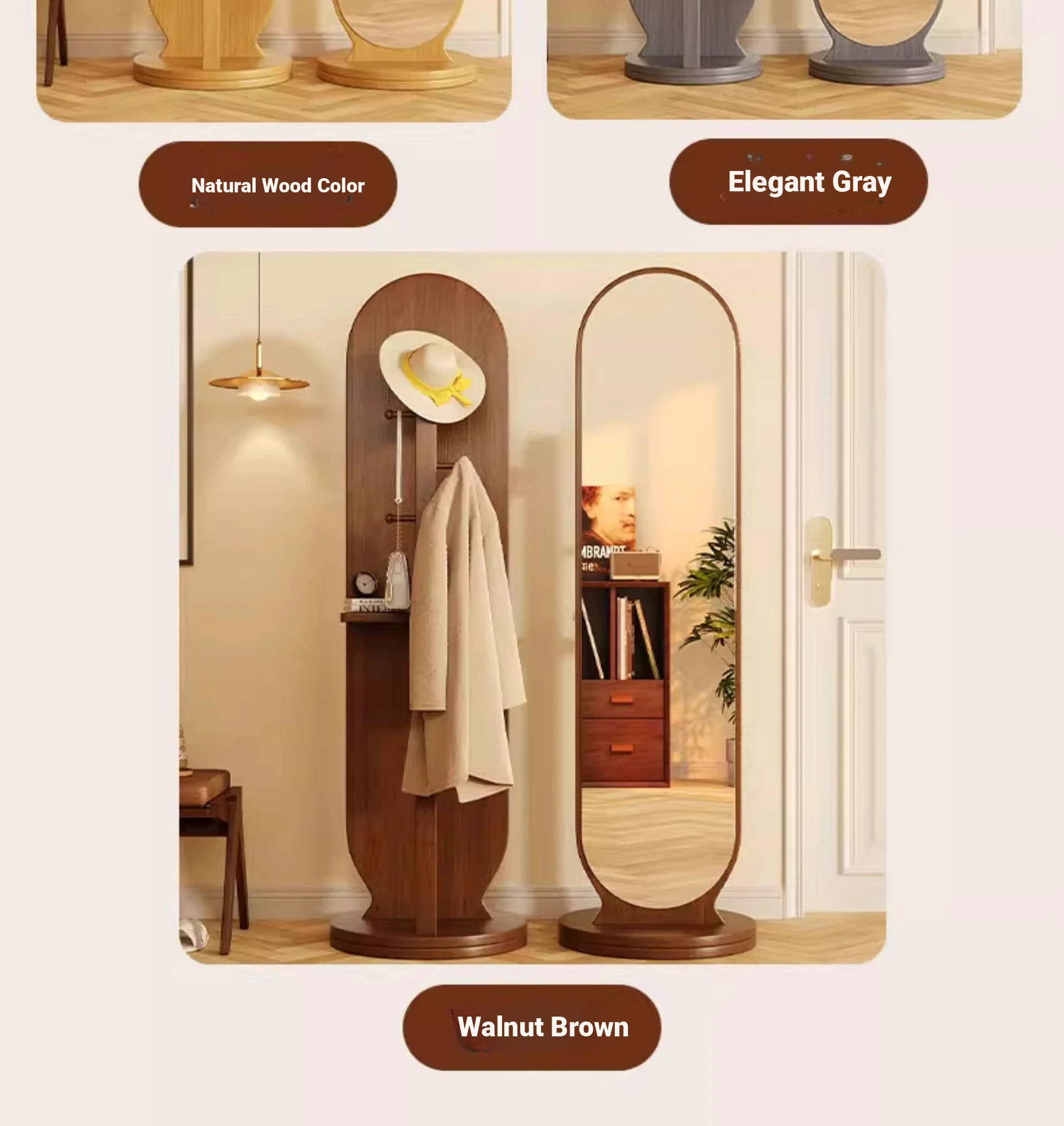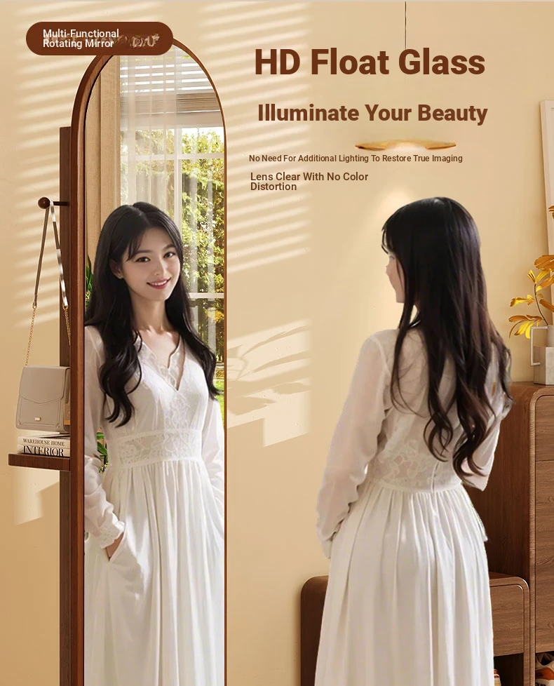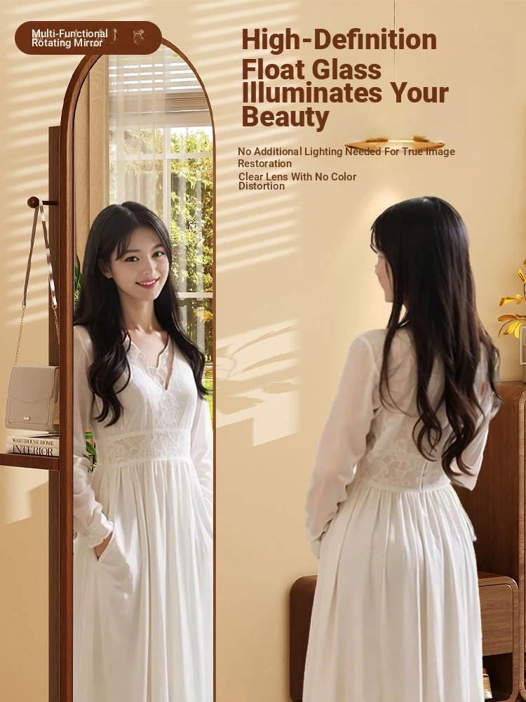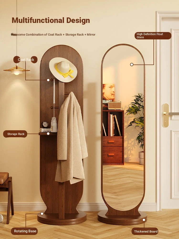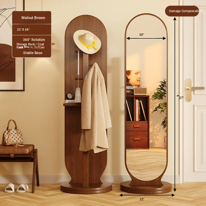 Damaged package❤Upgrade-walnut color 46*168 [Rotate + storage + hanging clothes] Shunfeng door