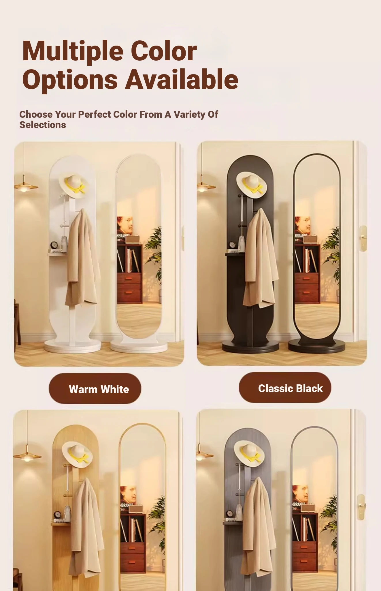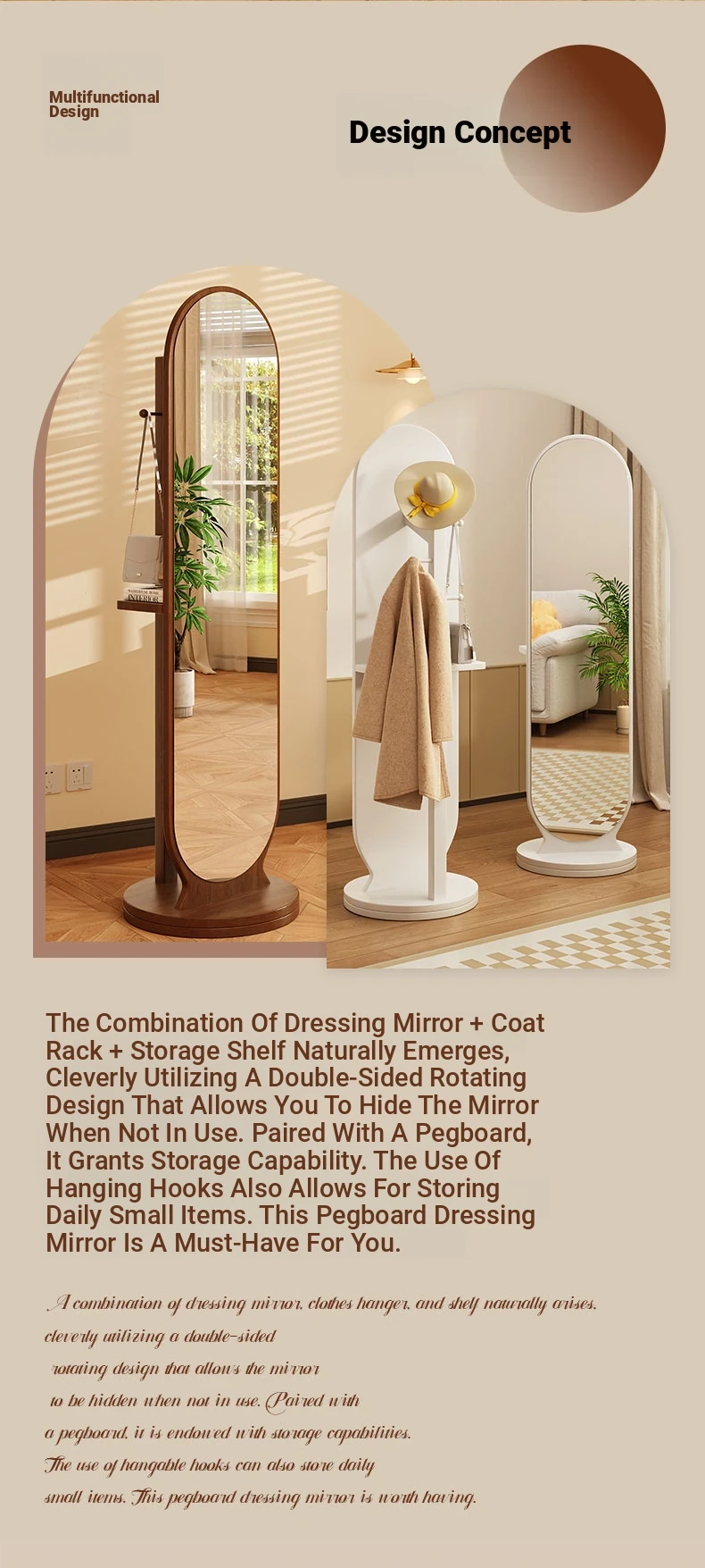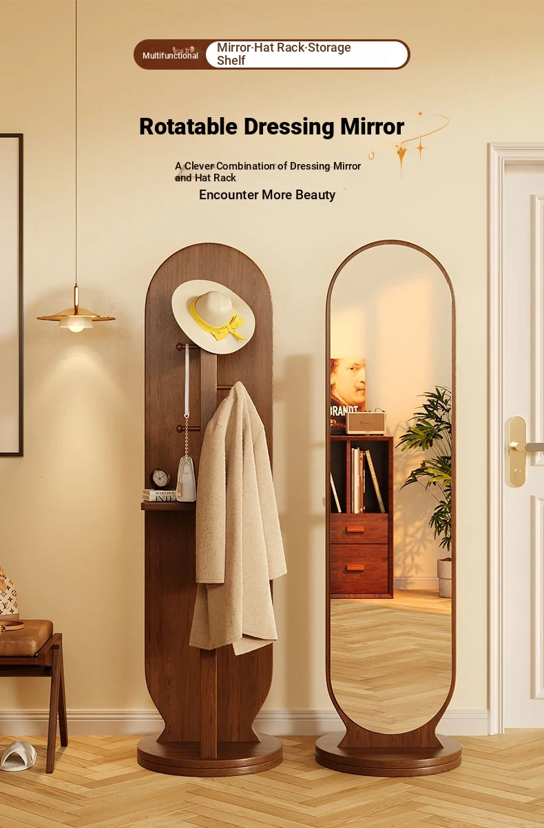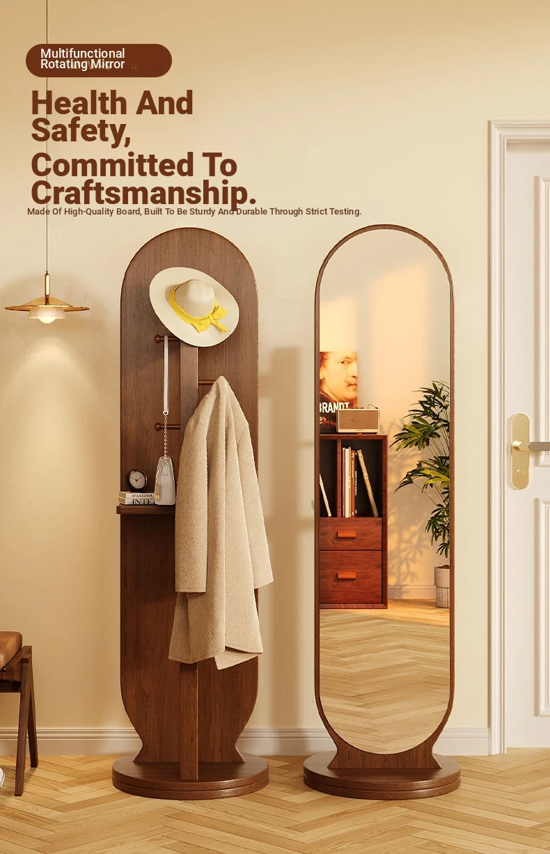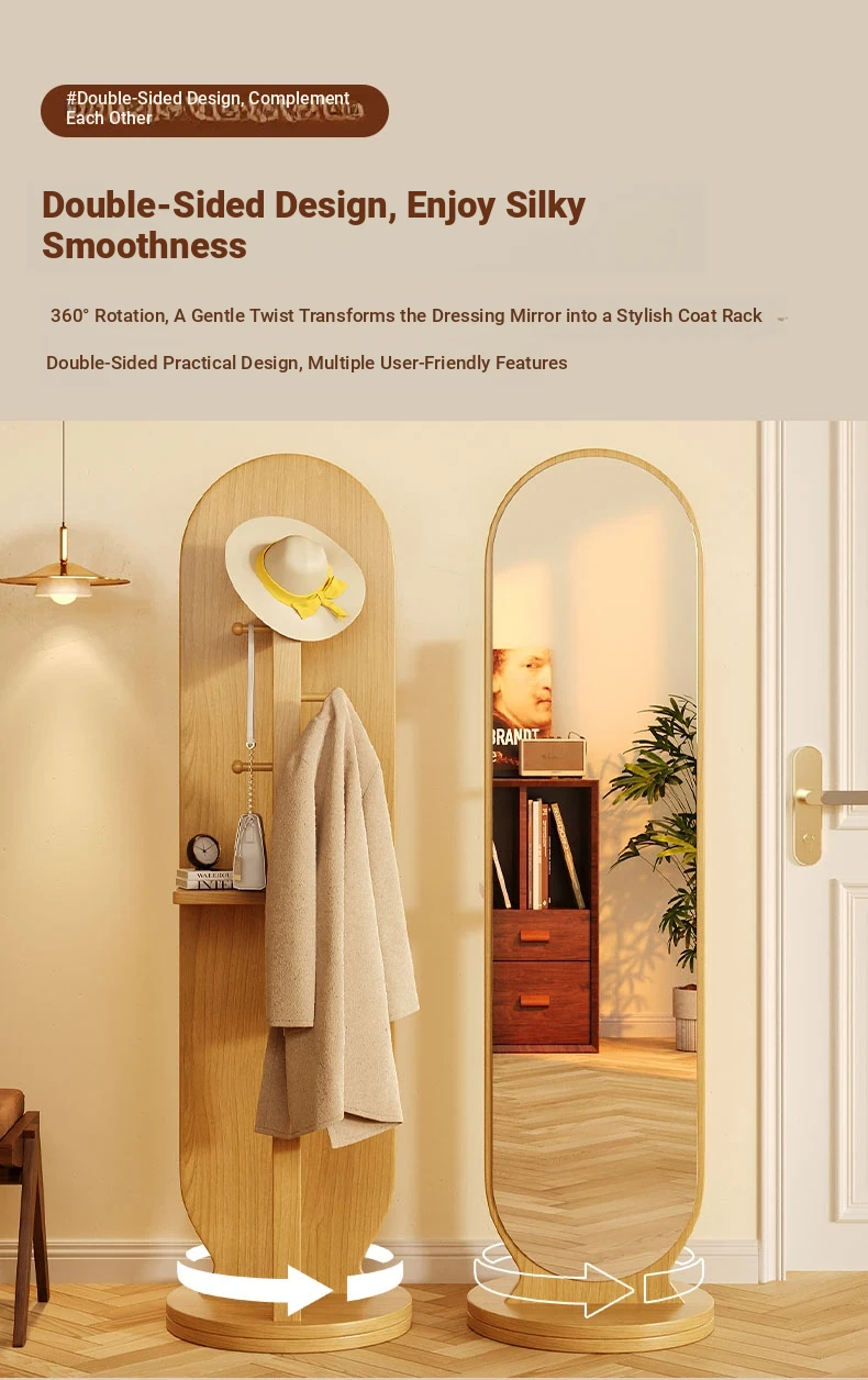 Full-Length Rotating Dressing Mirror with Movable Stand - Stylish Floor Mirror with Built-in Clothing Rack for Bedroom - Perfect for Trying on Outfits and Enhancing Your Space