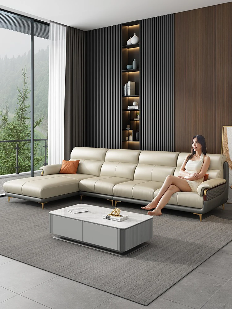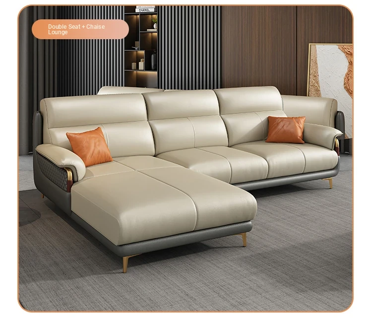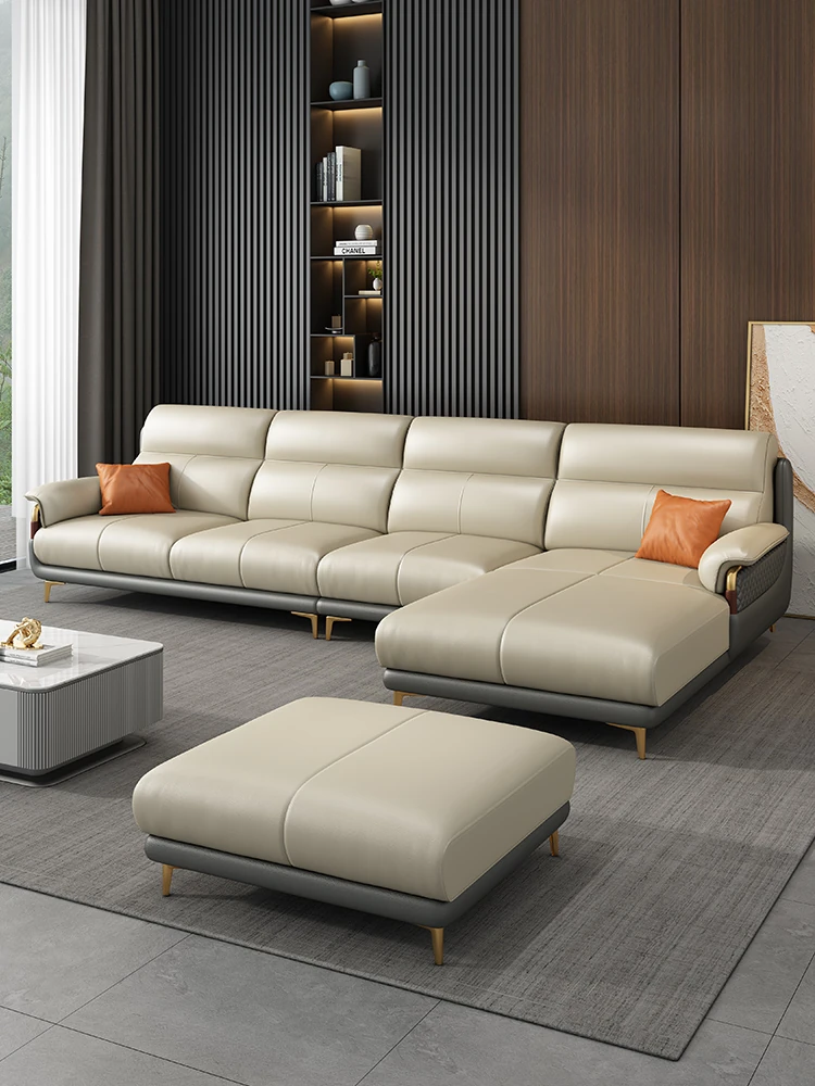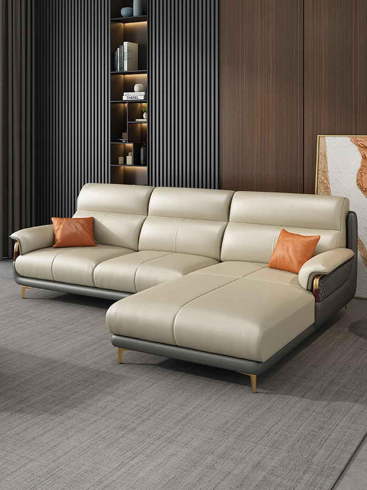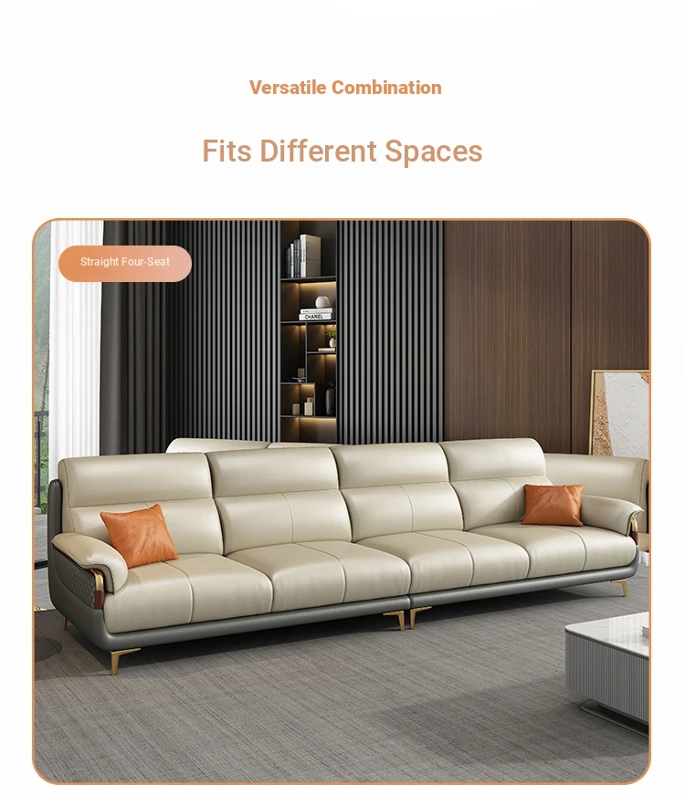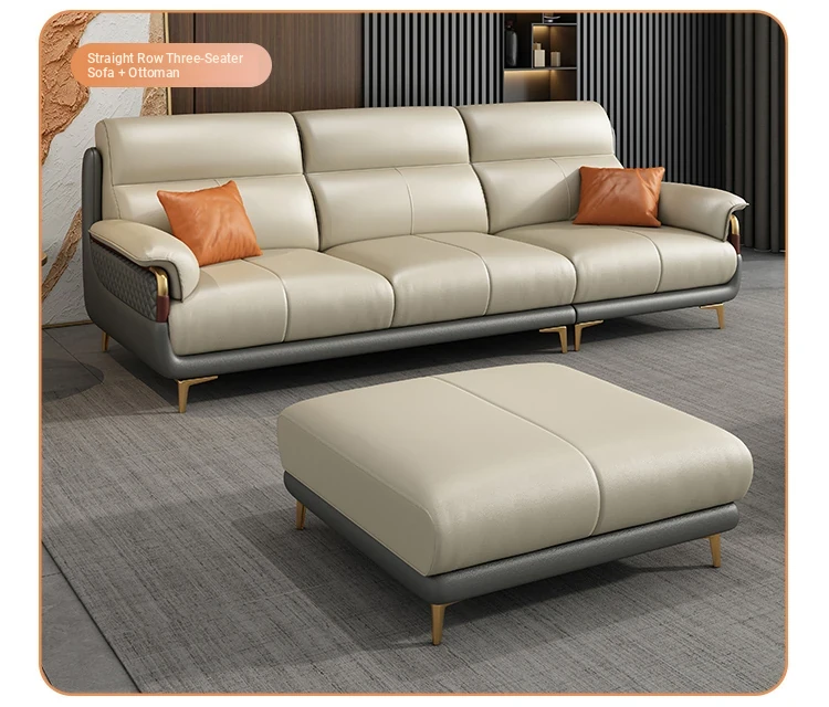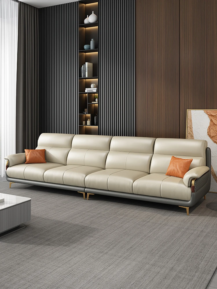 Genuine Leather Italian Minimalist Sofa - Modern Nordic Design for Living Rooms of All Sizes - Luxurious Top-Grain Cowhide Chaise Lounge Furniture