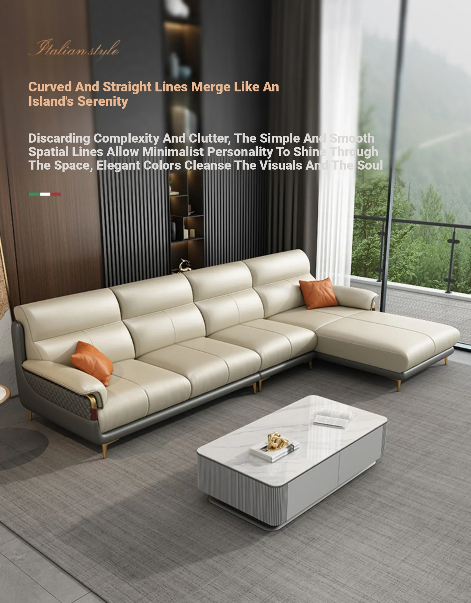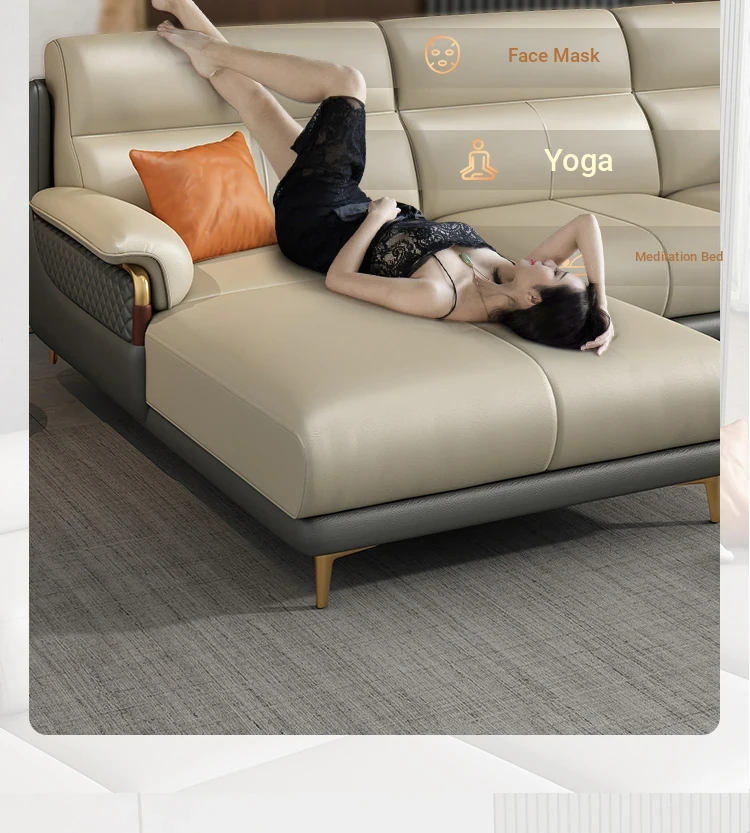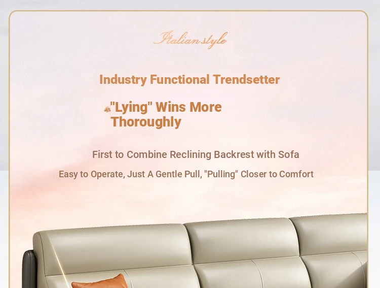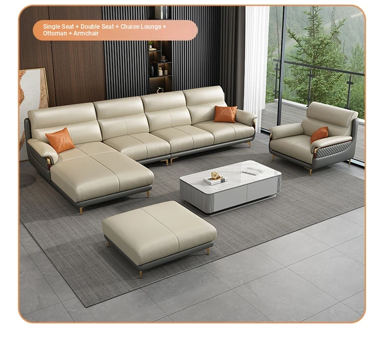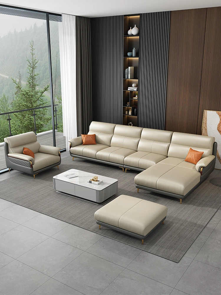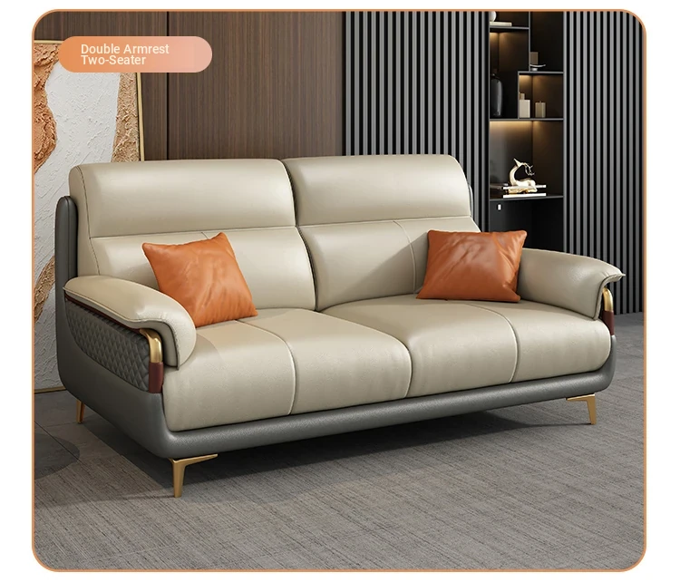 Genuine Leather Italian Minimalist Sofa - Modern Nordic Design for Living Rooms of All Sizes - Luxurious Top-Grain Cowhide Chaise Lounge Furniture