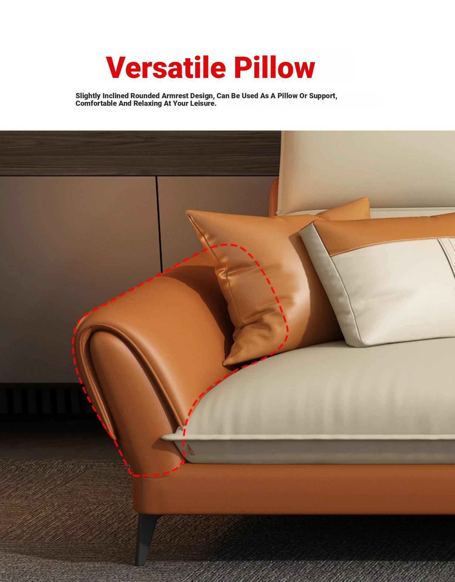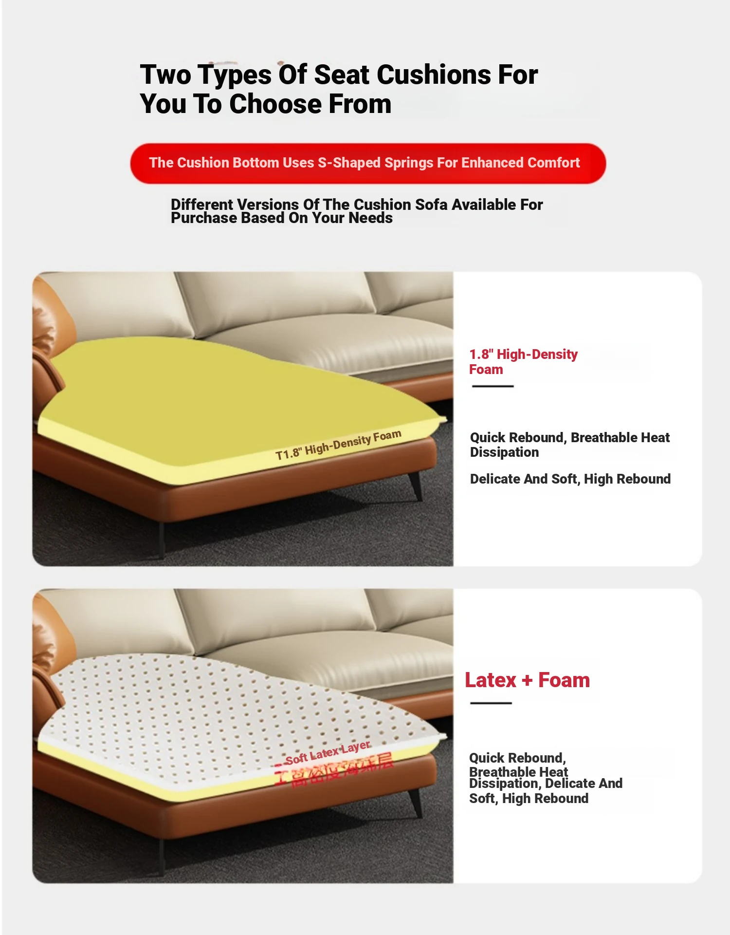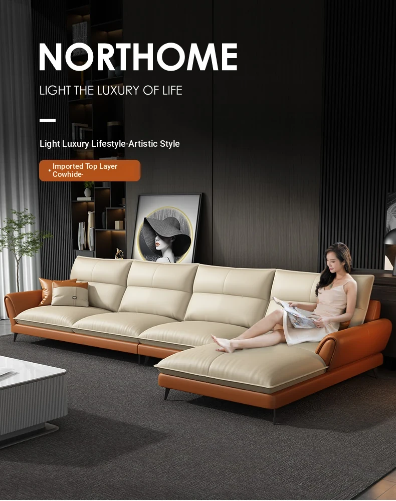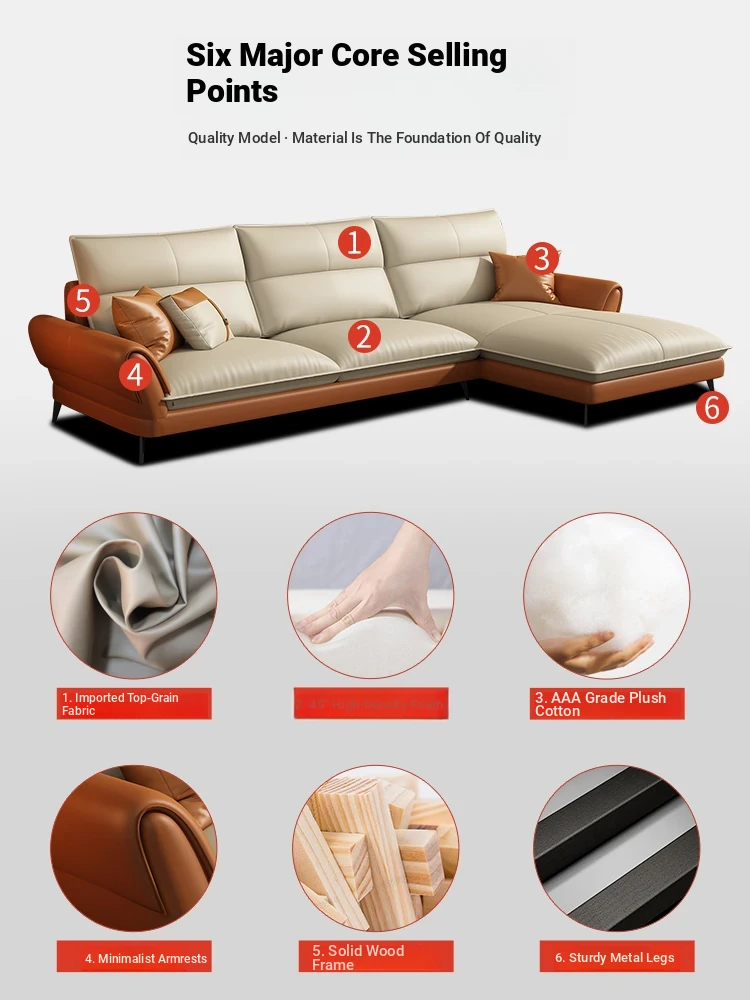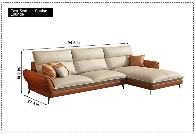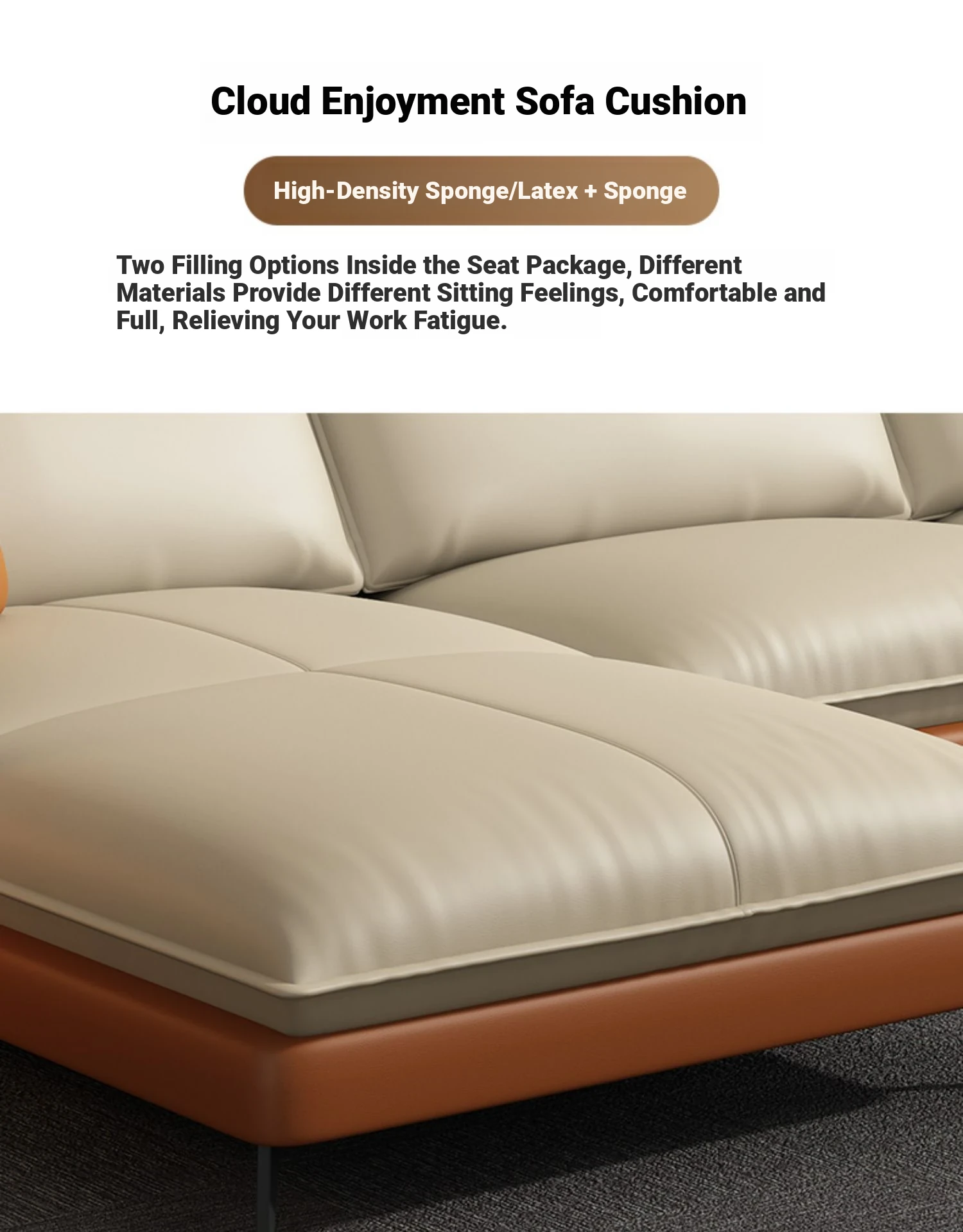 Genuine Leather Sofa - Modern Minimalist Design for Small Spaces, Nordic Style, 3-4 Seater Chaise Lounge Combination for Your Living Room