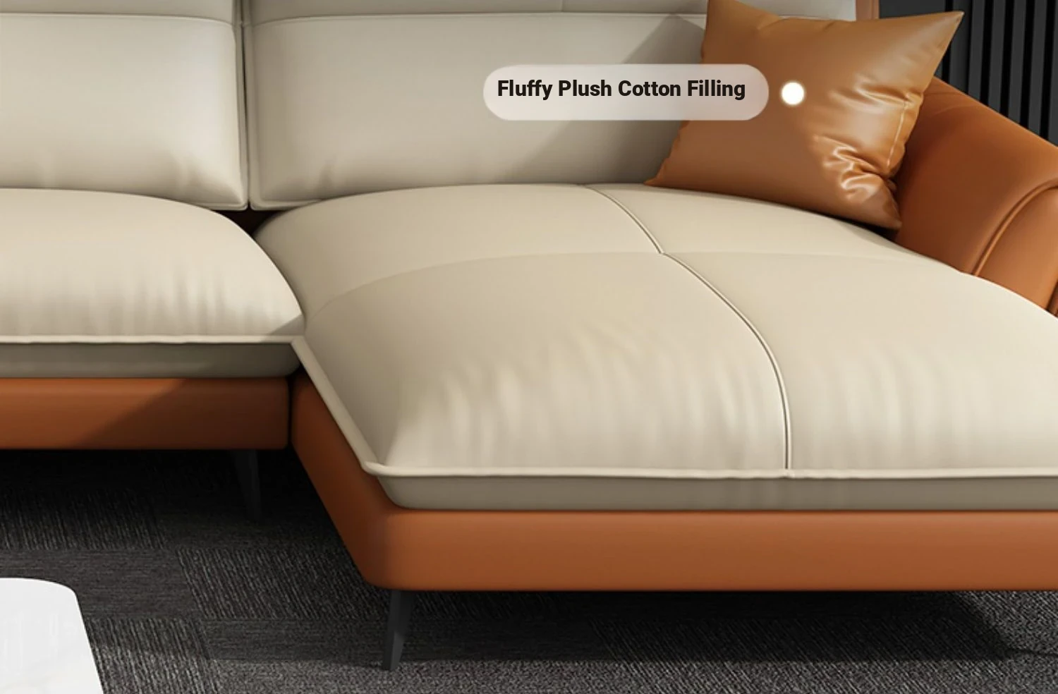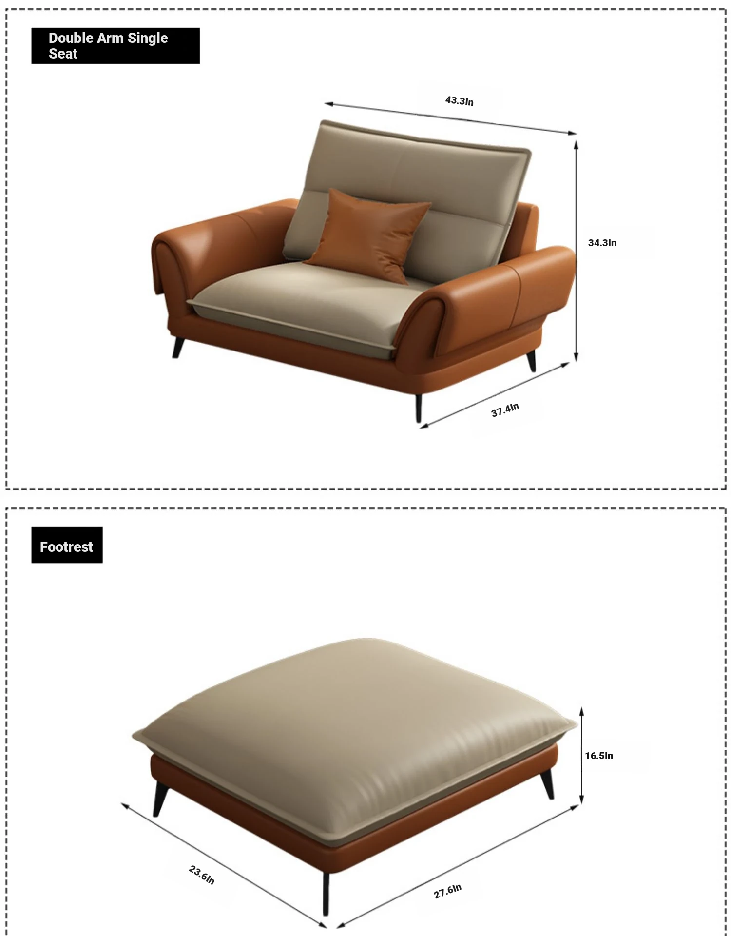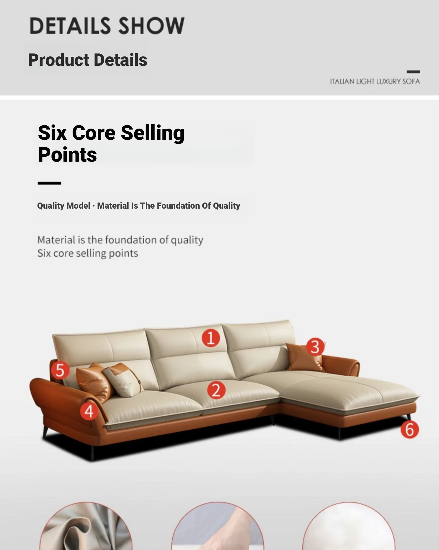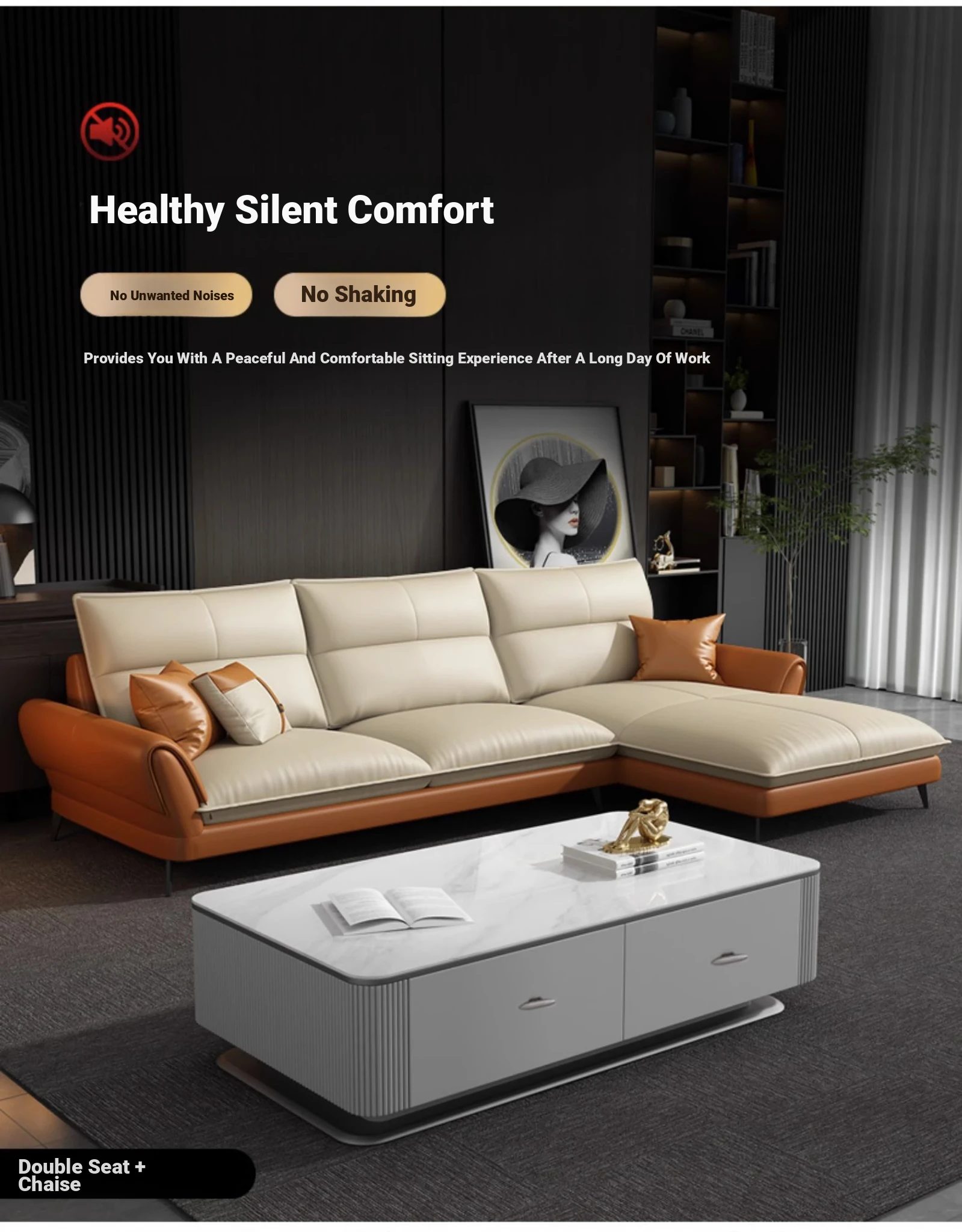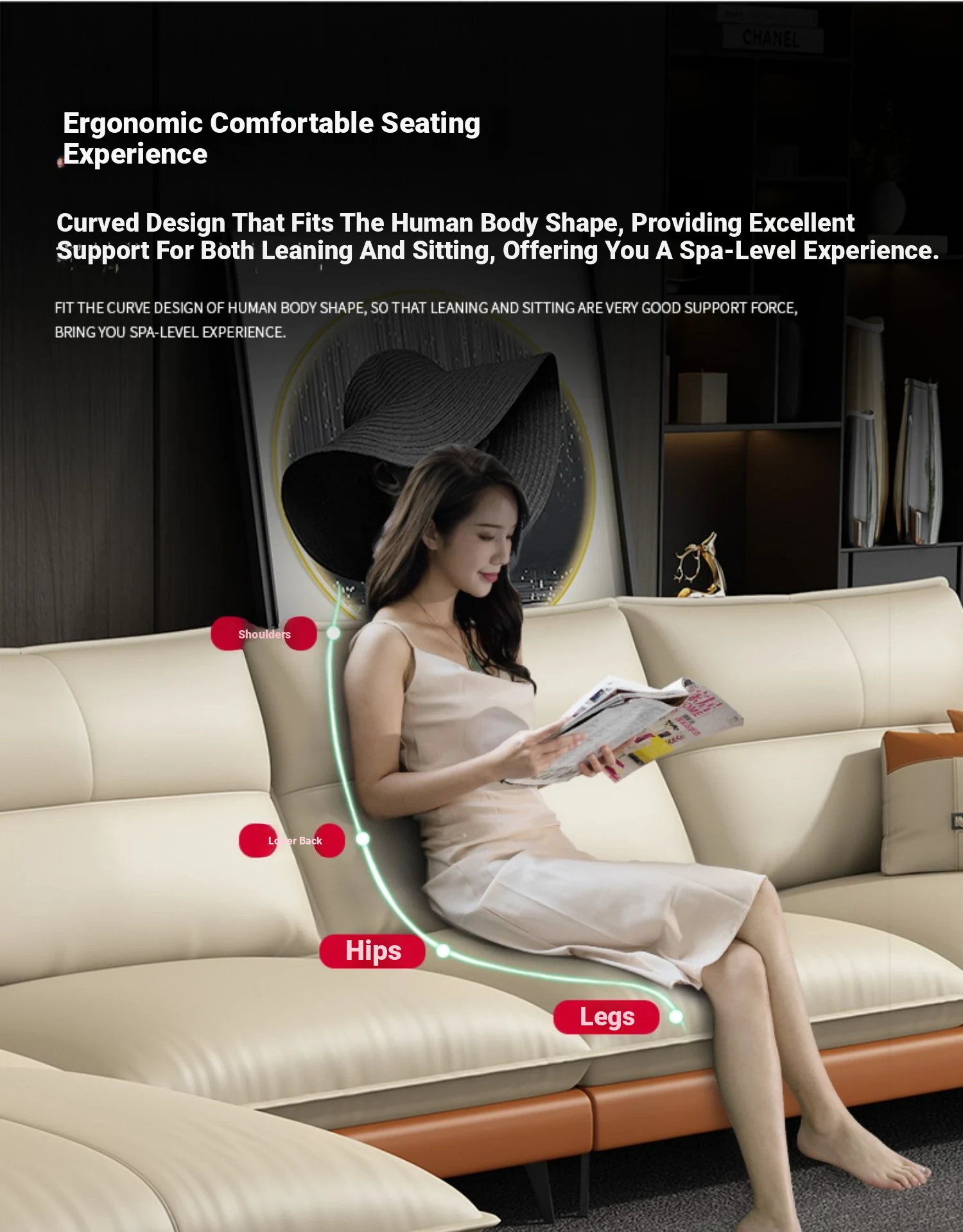 Genuine Leather Sofa - Modern Minimalist Design for Small Spaces, Nordic Style, 3-4 Seater Chaise Lounge Combination for Your Living Room