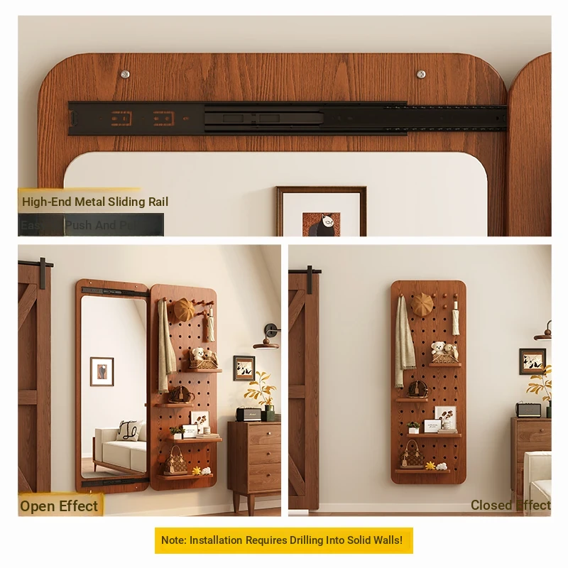 Invisible Folding Full-Length Mirror - Wall-Mounted Dressing Mirror for Home Entryway, Space-Saving Design, Perfect for Dressing and Styling.