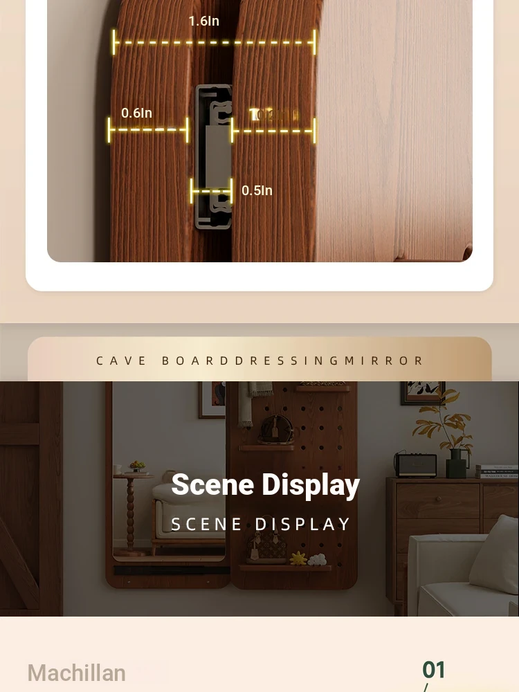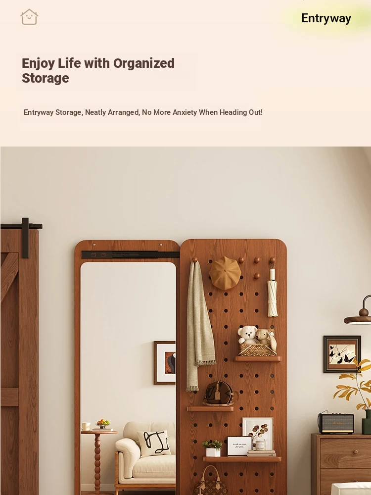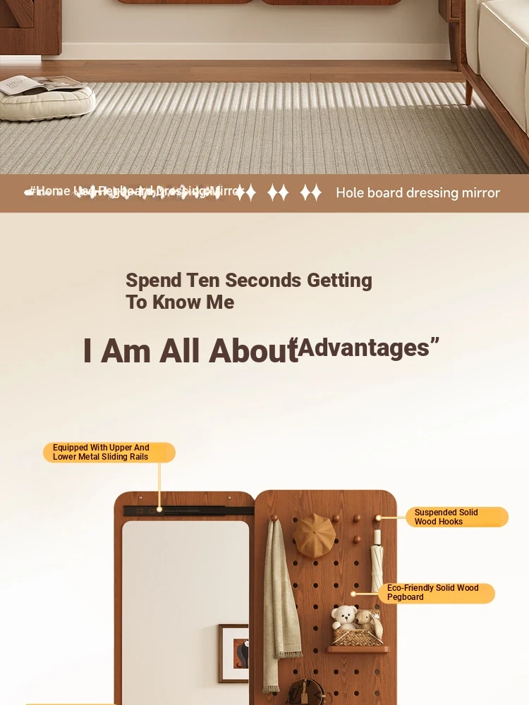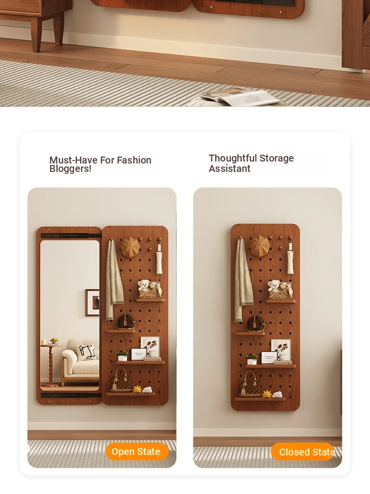 Invisible Push-Pull Full-Length Wall-Mounted Mirror with Pegboard Design - Perfect for Home Entryways and Dressing Areas, Space-Saving and Stylish!