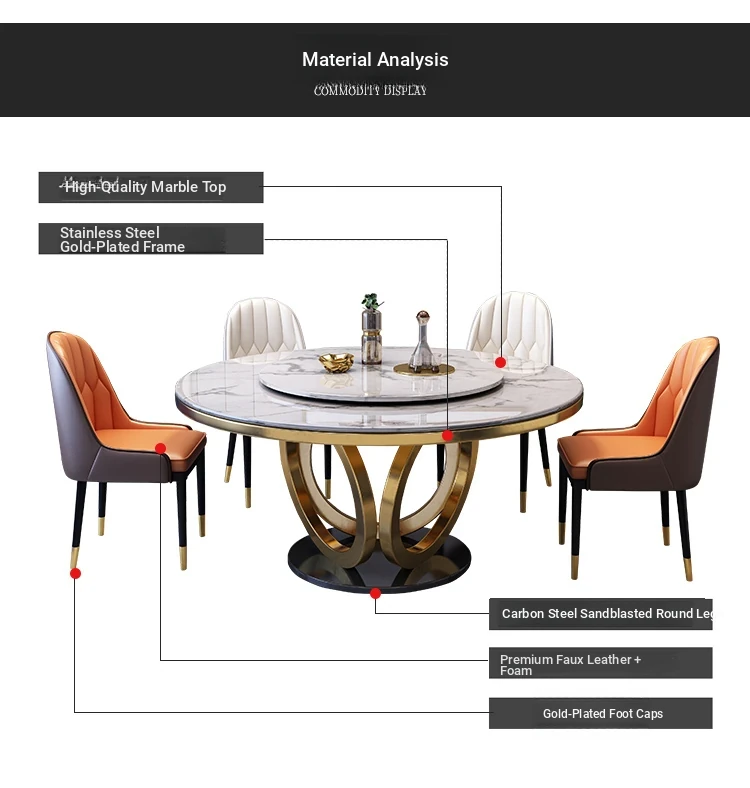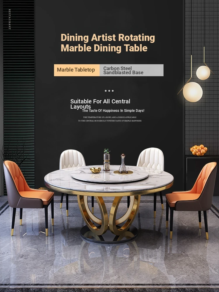 Accessible Luxury marble dining table [send turntable] +4 chairs