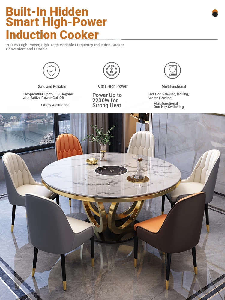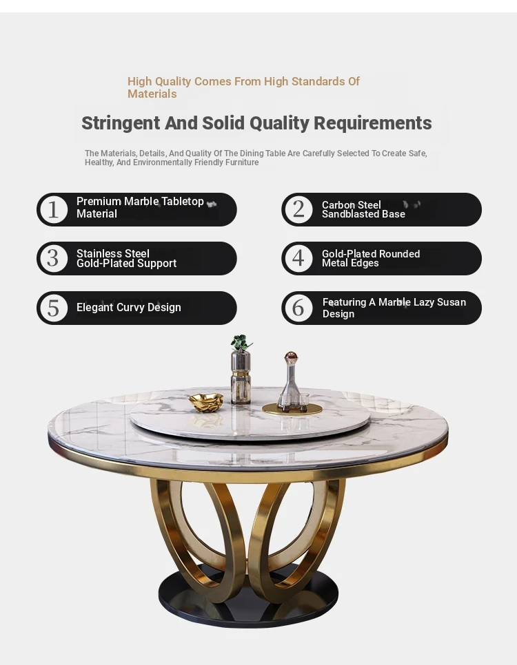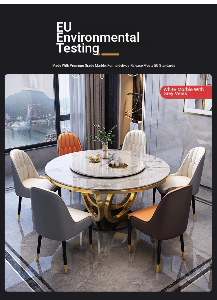 Accessible Luxury marble dining table [send turntable] +10 chairs