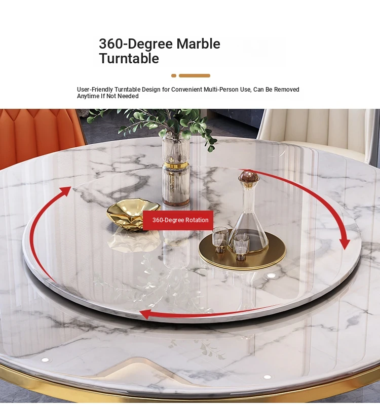 Accessible Luxury marble dining table [send turntable] +8 chairs