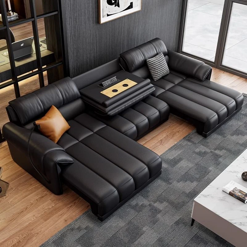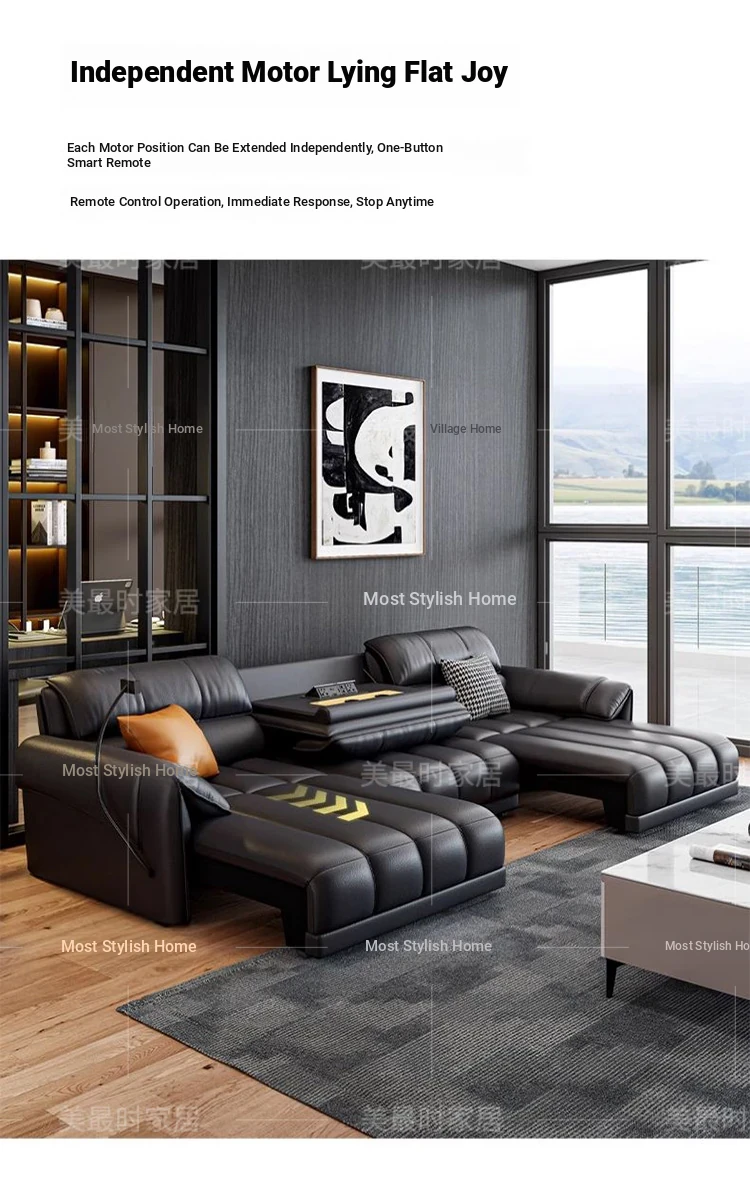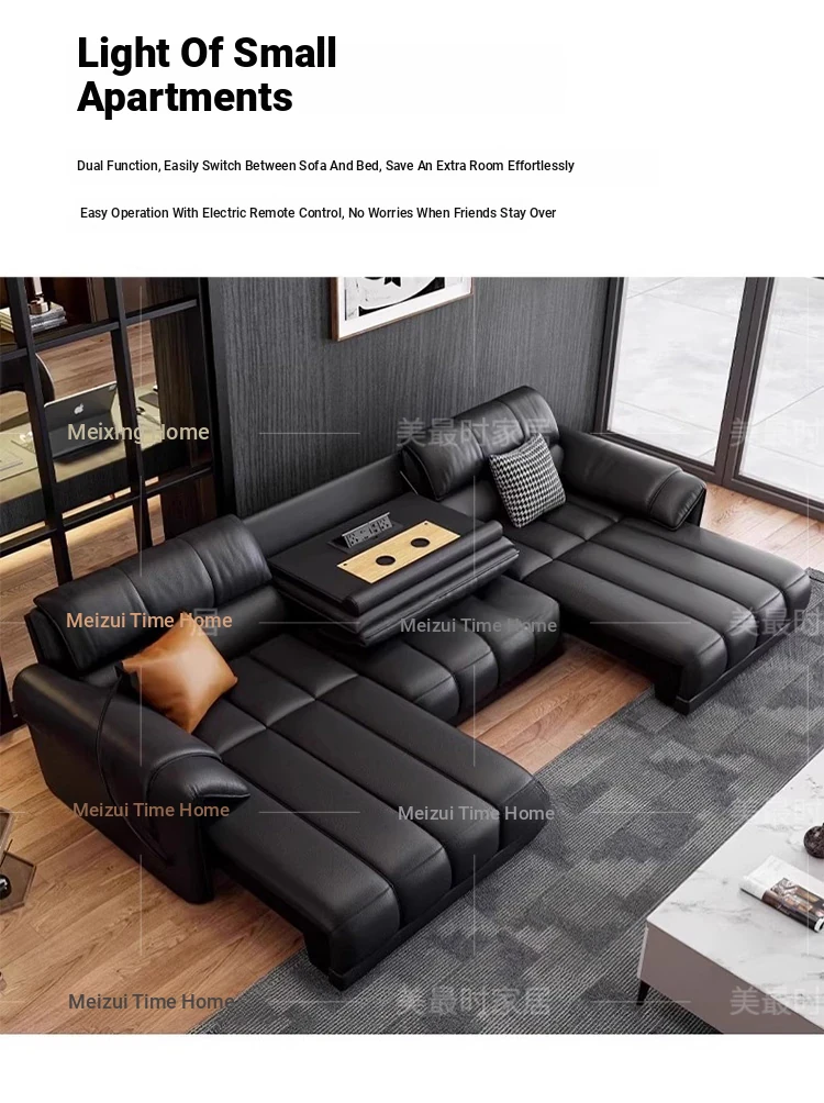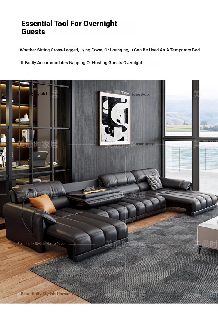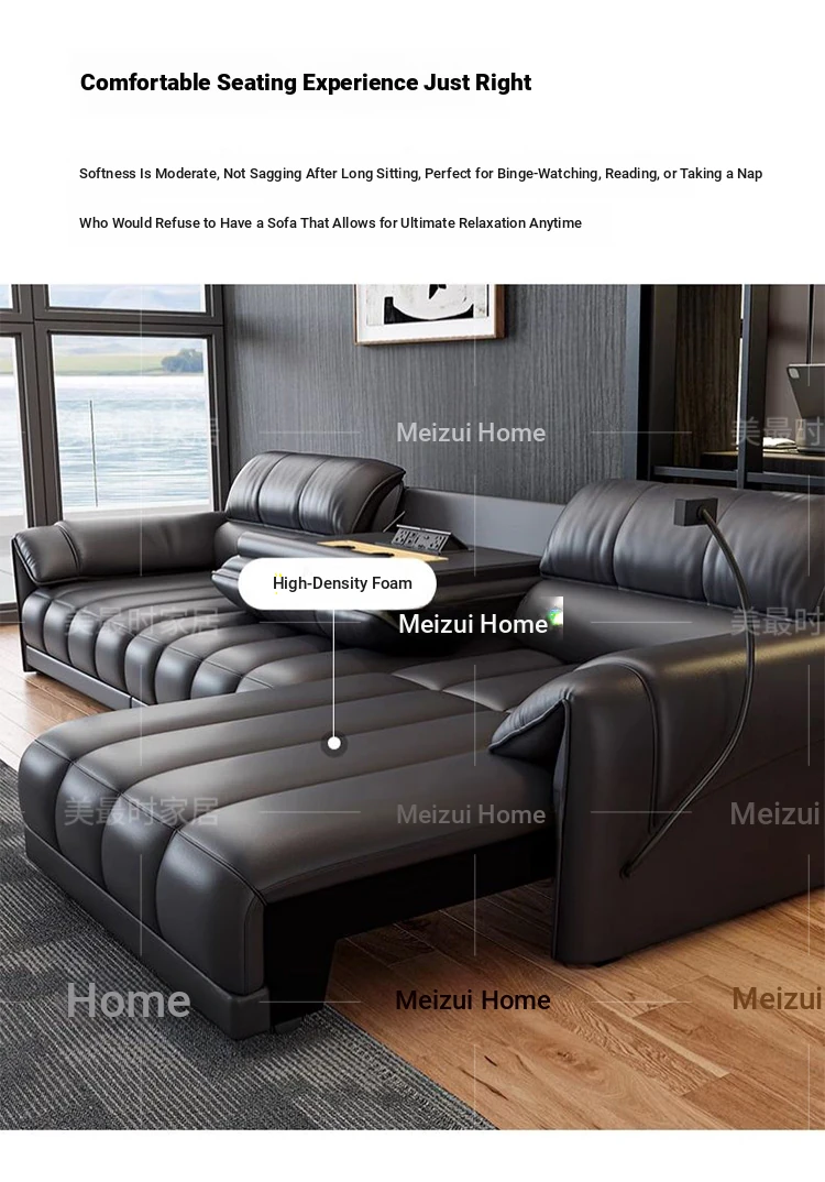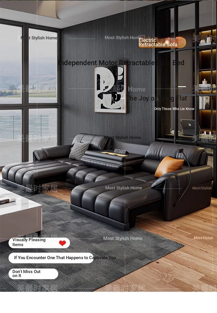 Luxury Electric Function Sofa Bed - Italian Minimalist Design, Genuine Top-Grain Leather, Perfect for Any Living Room Size, Smart Straight-Line Style