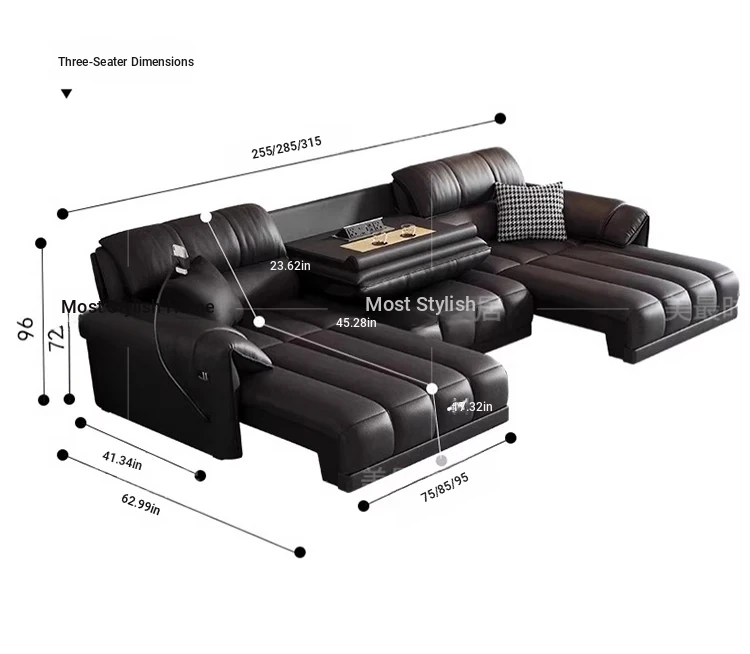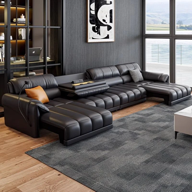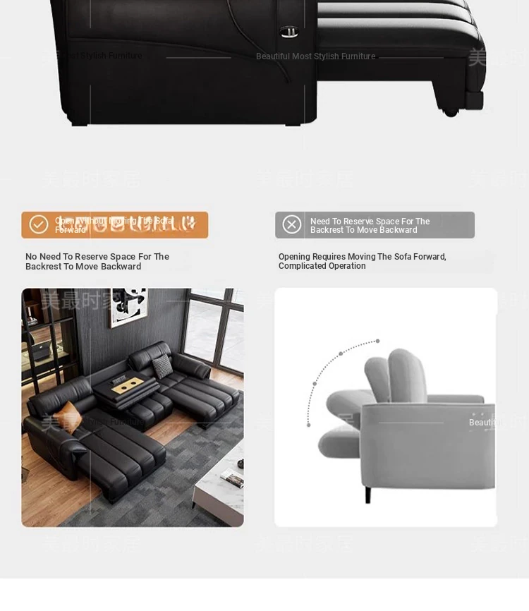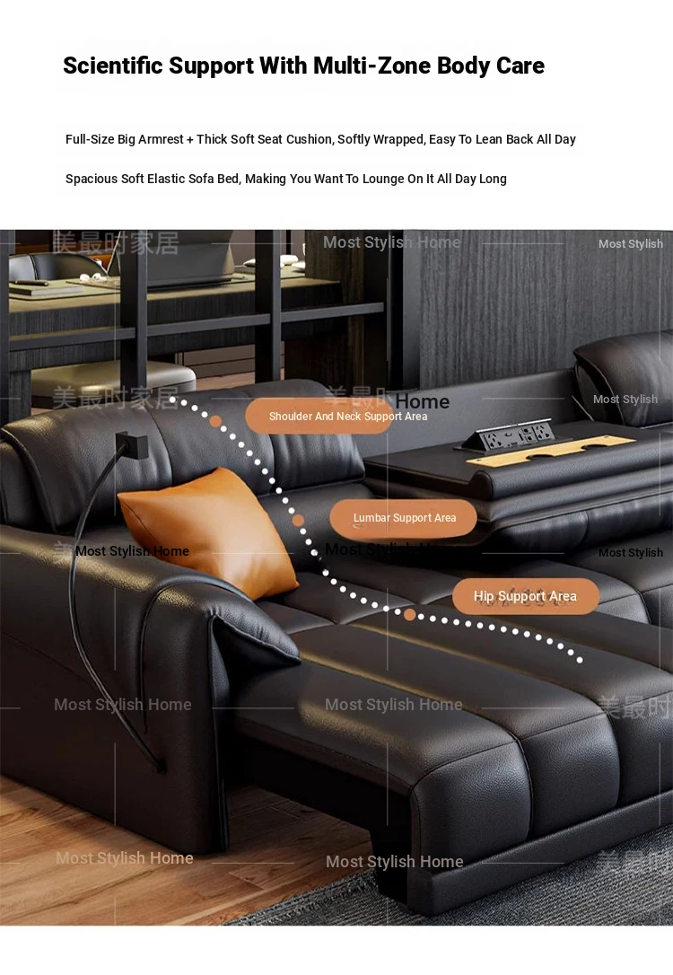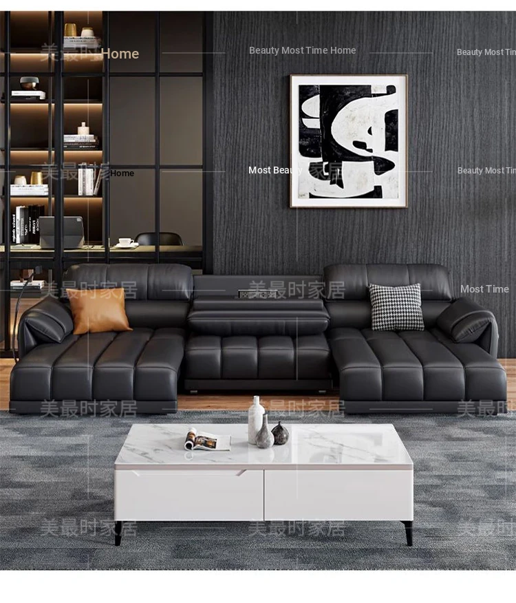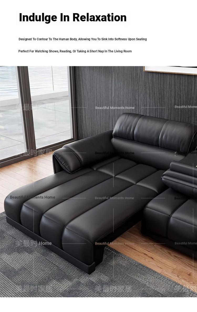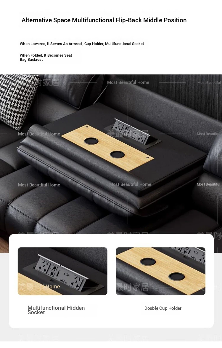 Luxury Electric Function Sofa Bed - Italian Minimalist Design, Genuine Top-Grain Leather, Perfect for Any Living Room Size, Smart Straight-Line Style