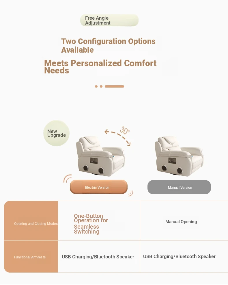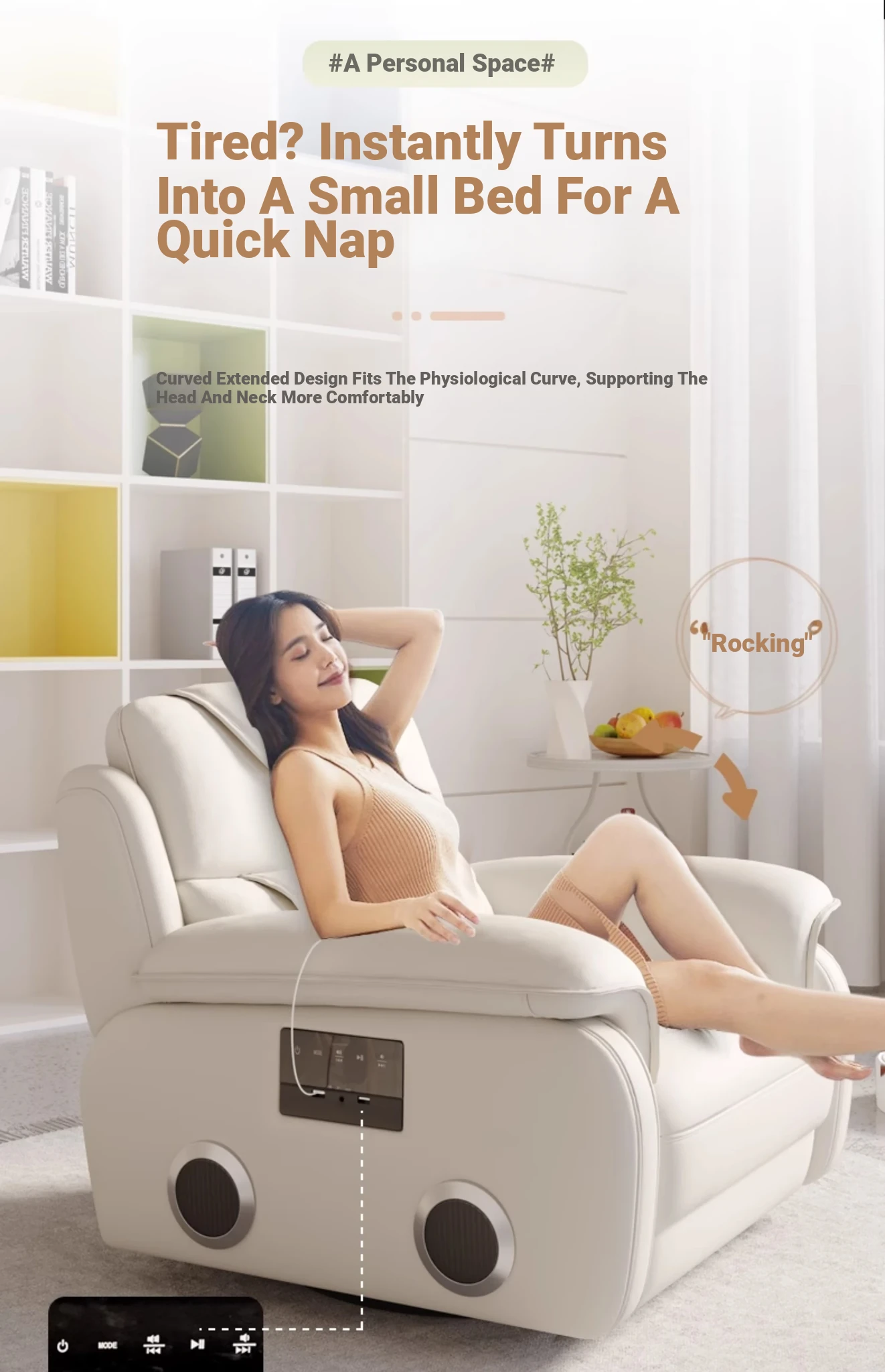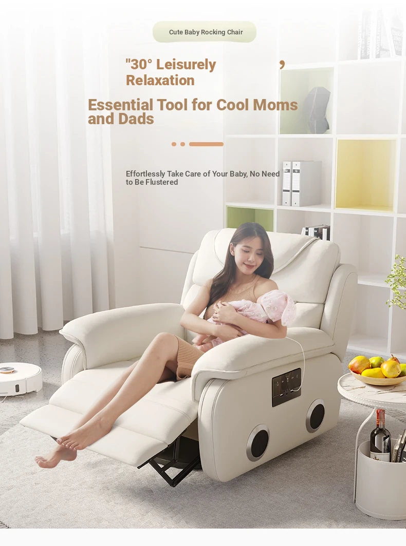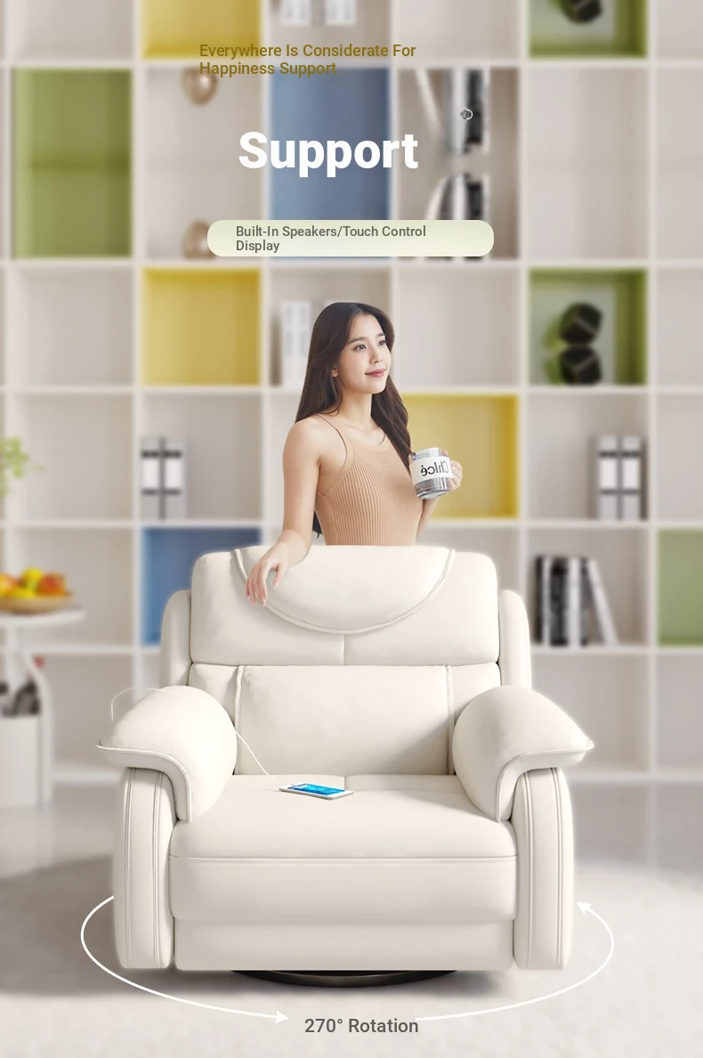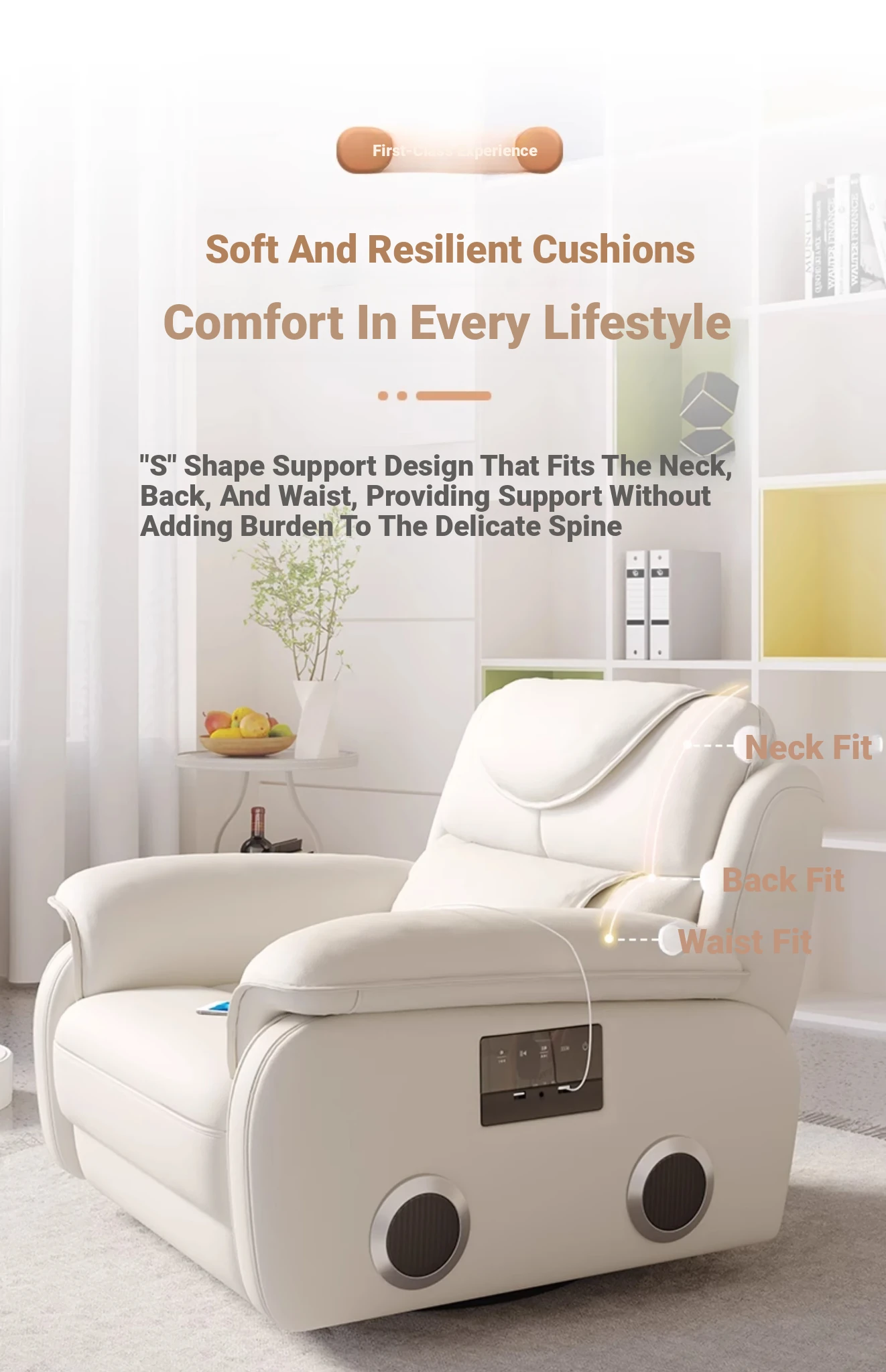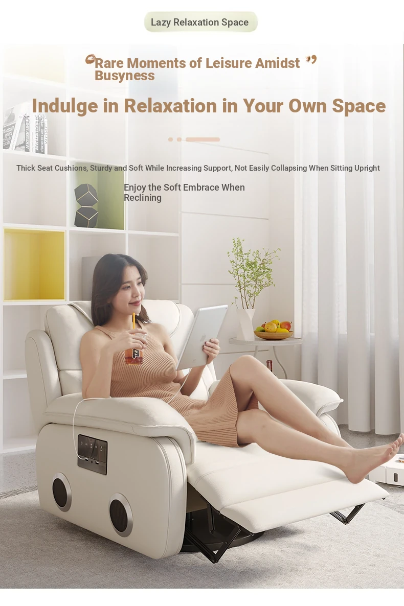 Luxury Space Sofa Pod - Single Genuine Leather Electric Massage Recliner Chair, Multifunctional Lazy Lounge for Living Room and Nail Art, Compact Rocking Chair