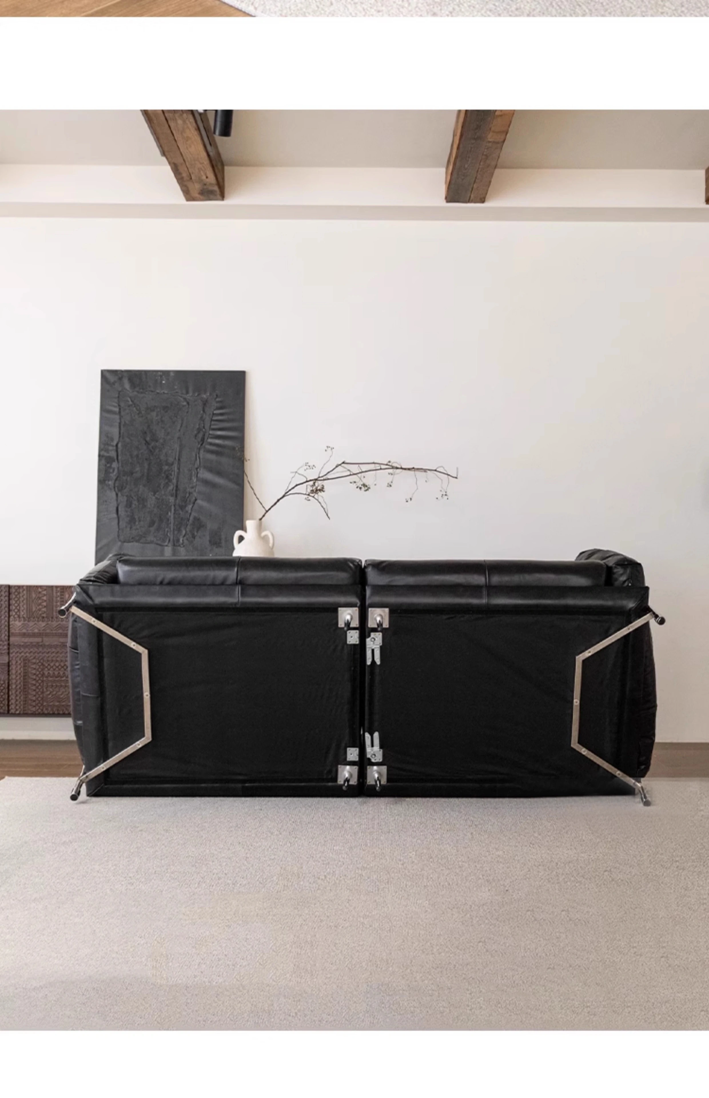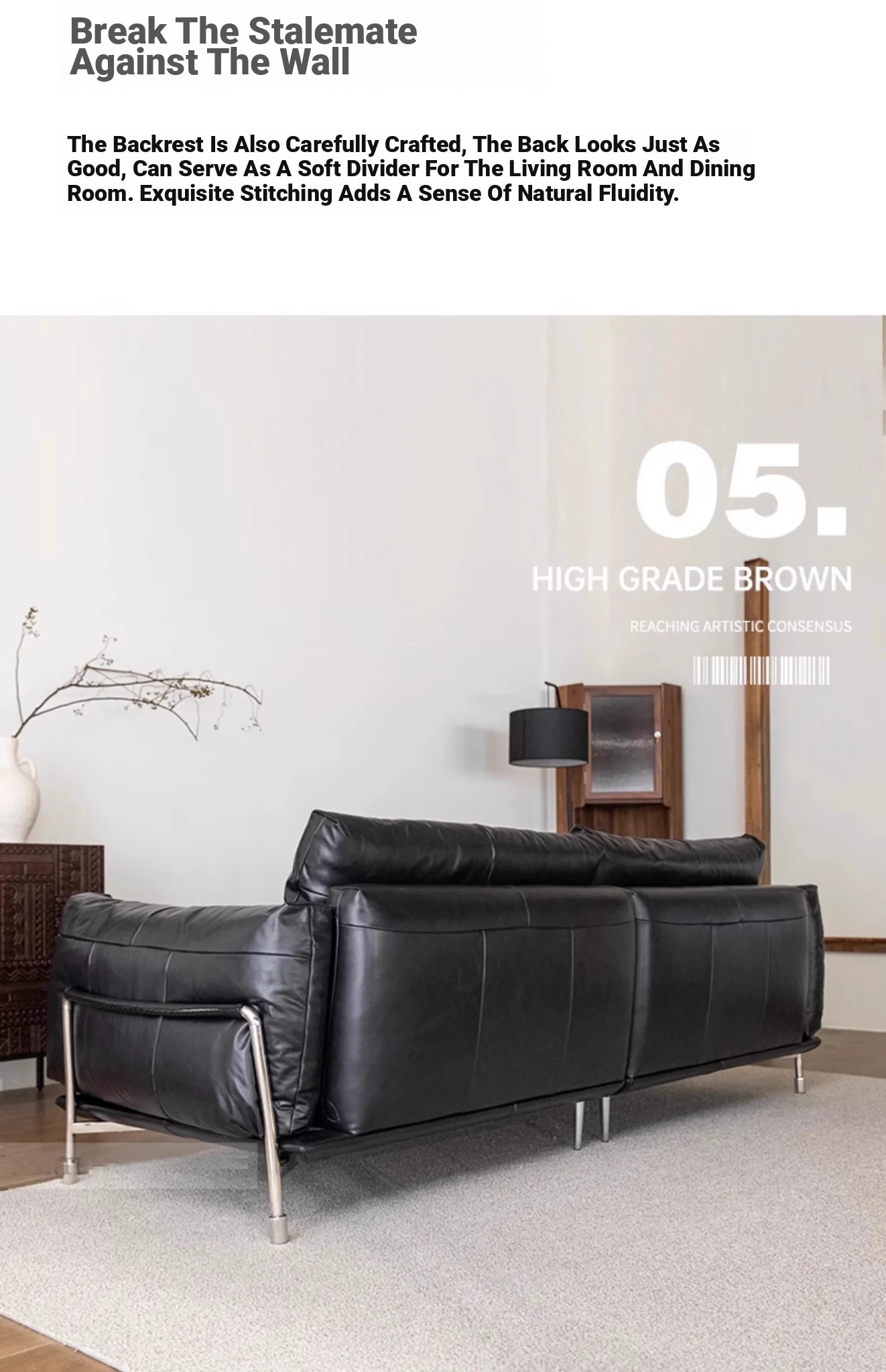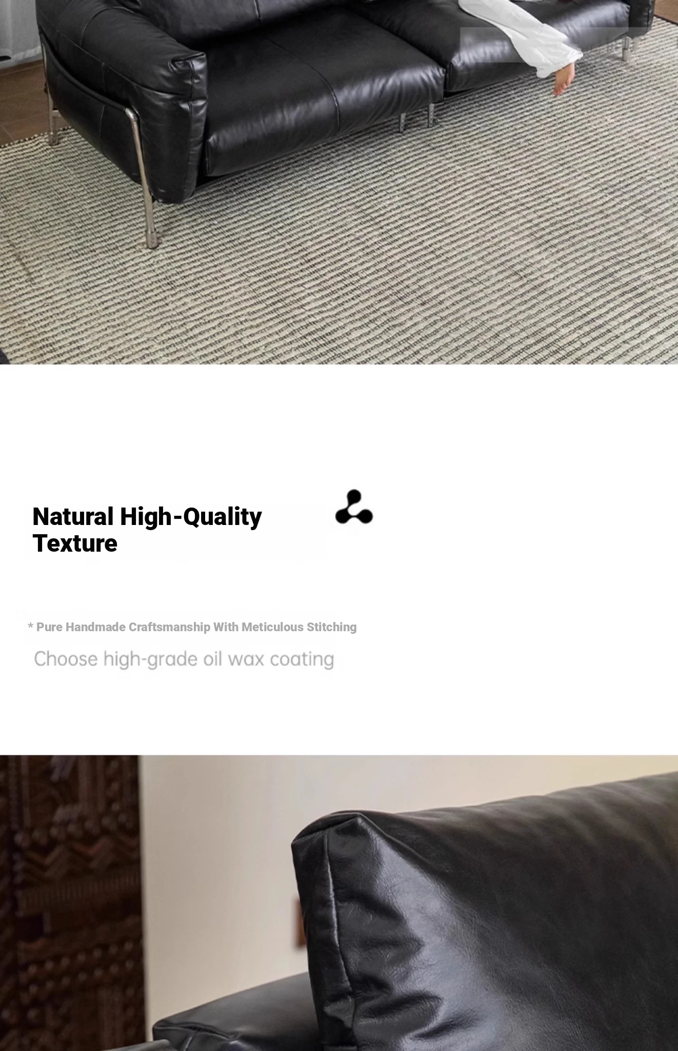 Minimalist Bauhaus-Inspired Dark Knight Sofa - Black Genuine Leather Designer Sofa for Small Spaces, Perfect for Modern Living Rooms, 3-Seater Elegance.