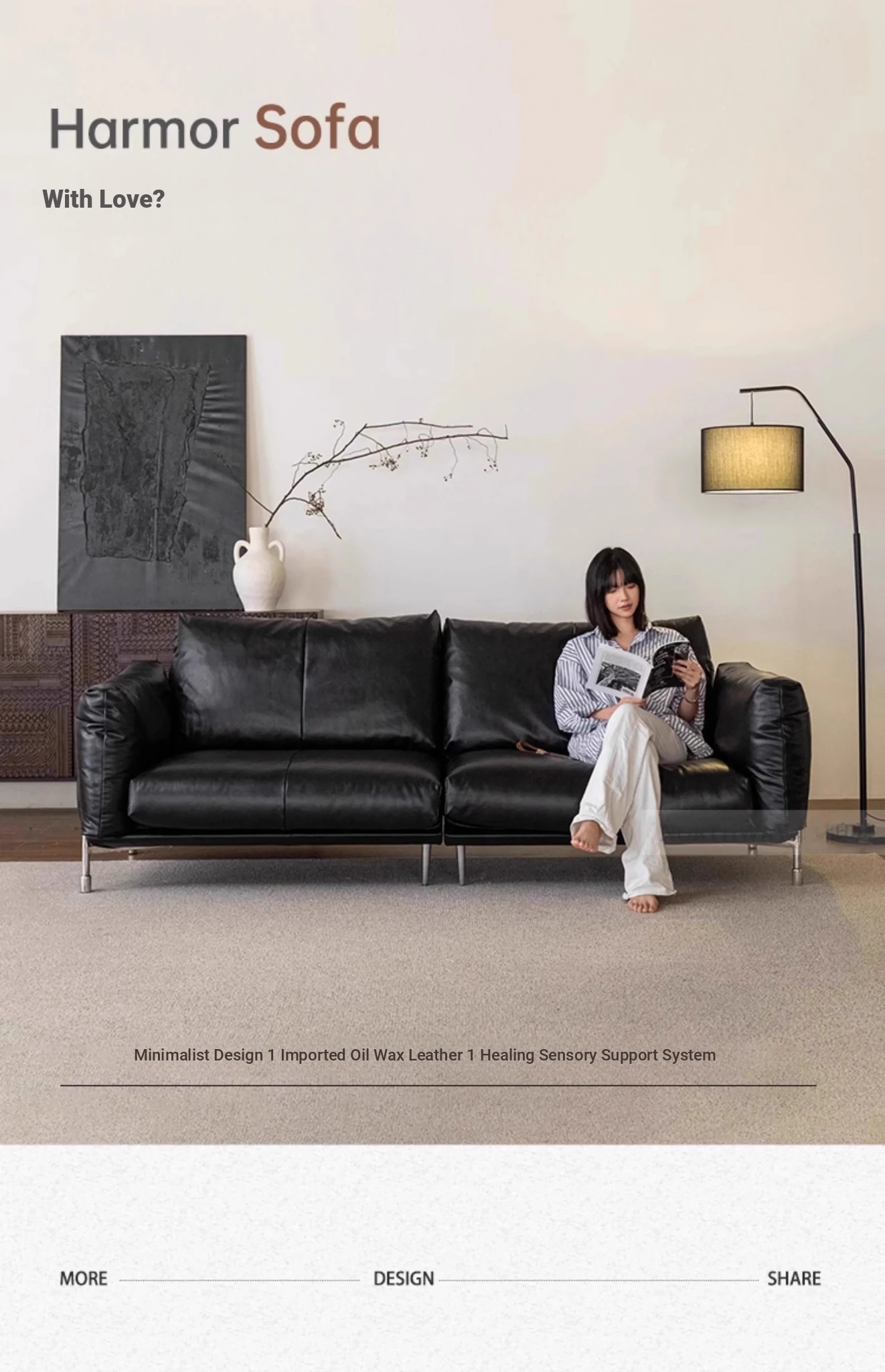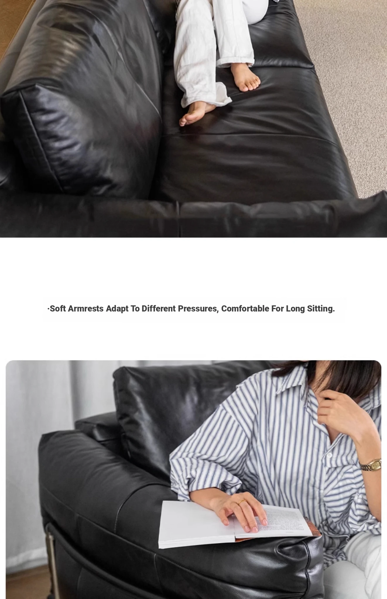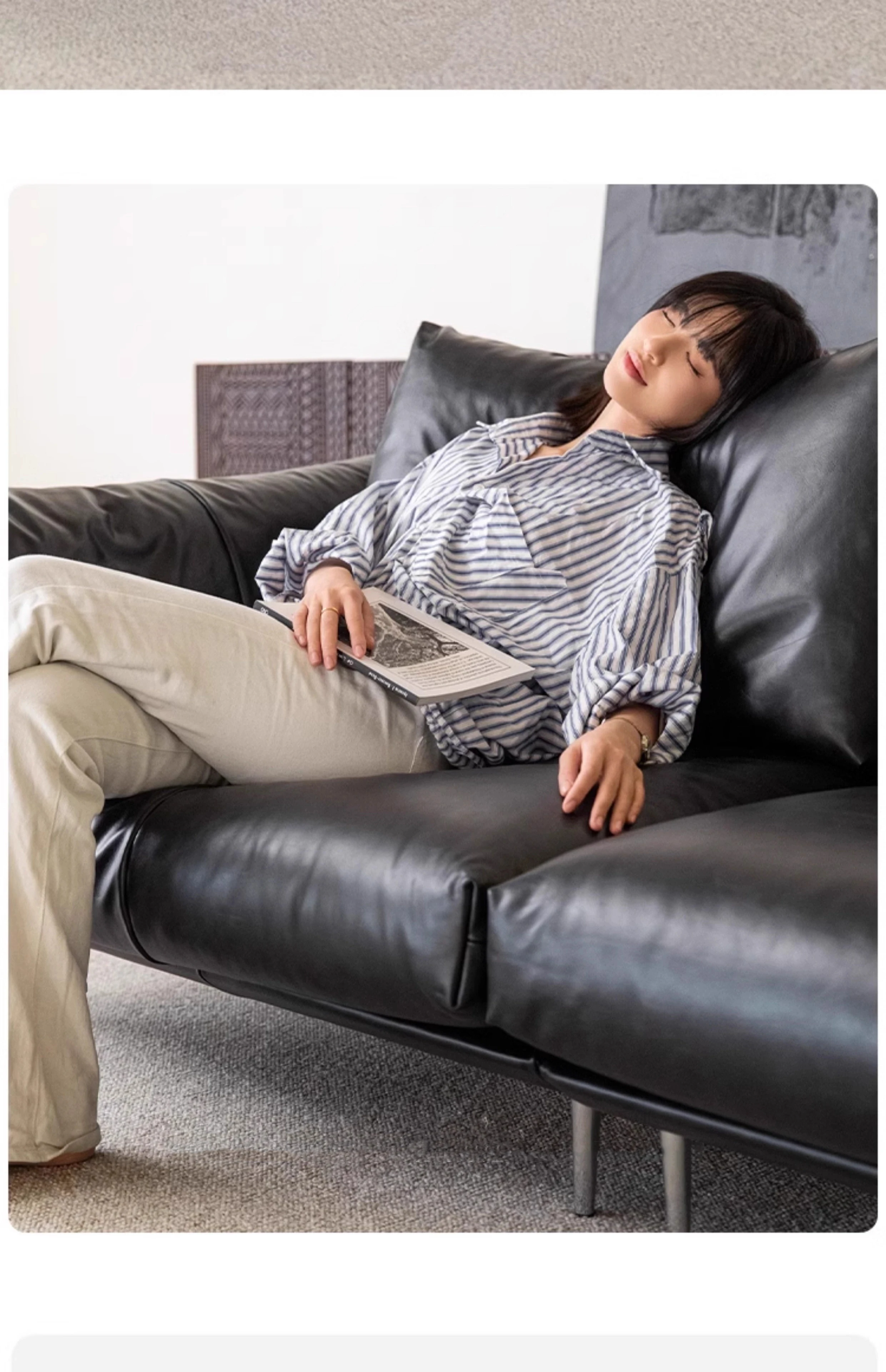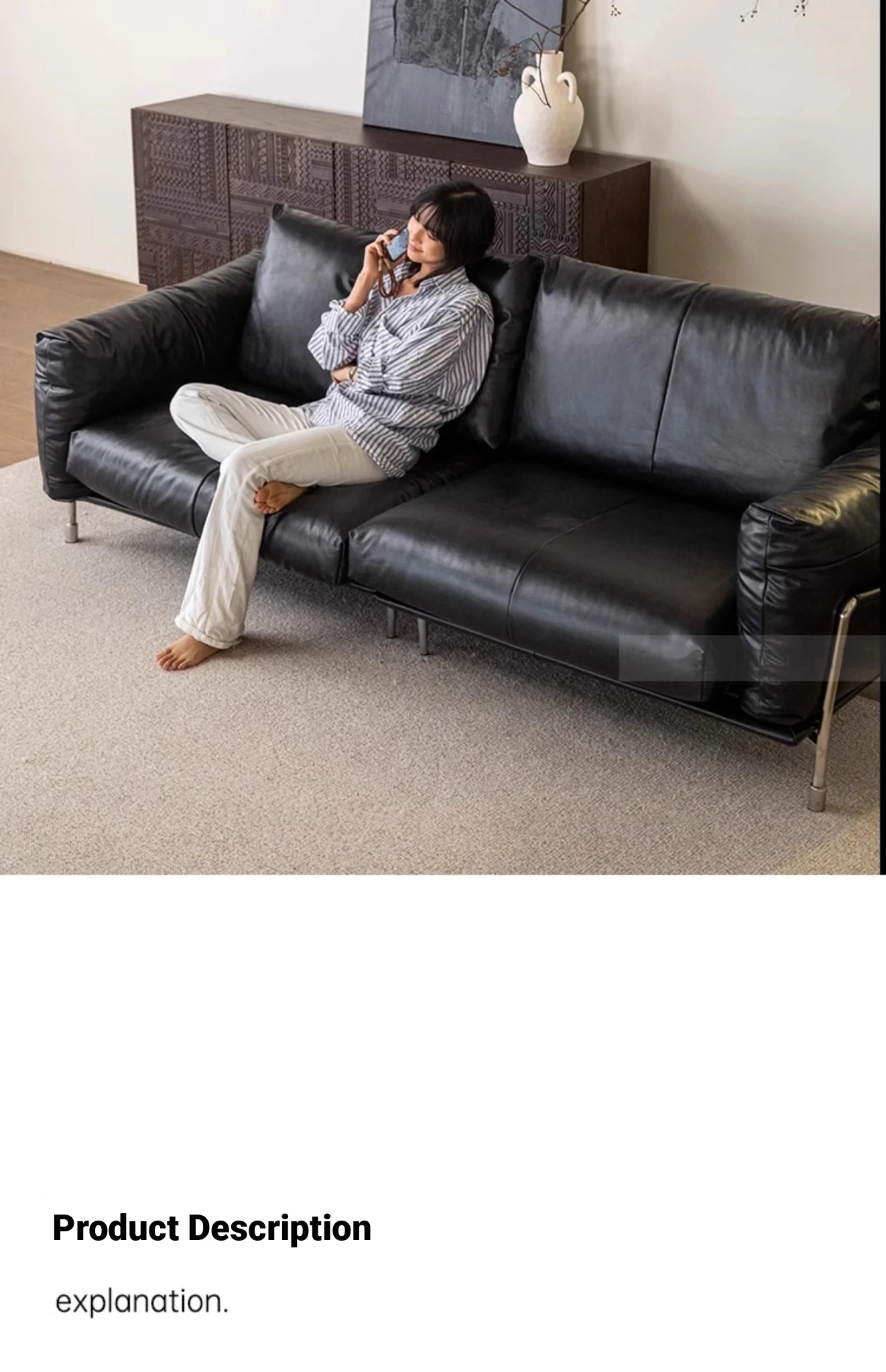 Minimalist Bauhaus-Inspired Dark Knight Sofa - Black Genuine Leather Designer Sofa for Small Spaces, Perfect for Modern Living Rooms, 3-Seater Elegance.