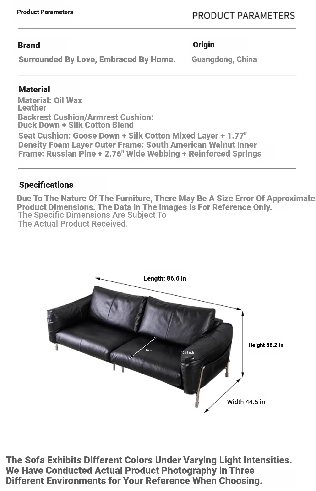 Default width 44.49 in, customizable 39.37 in width