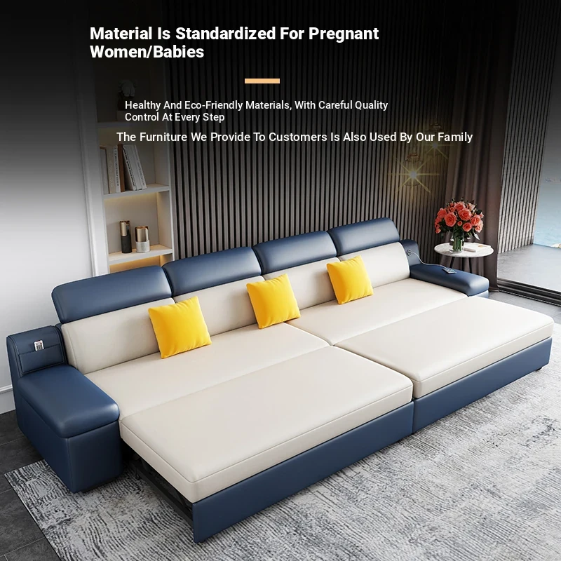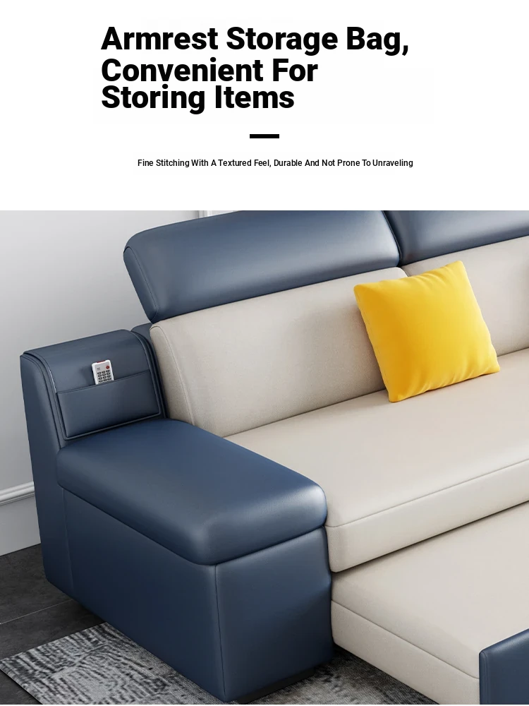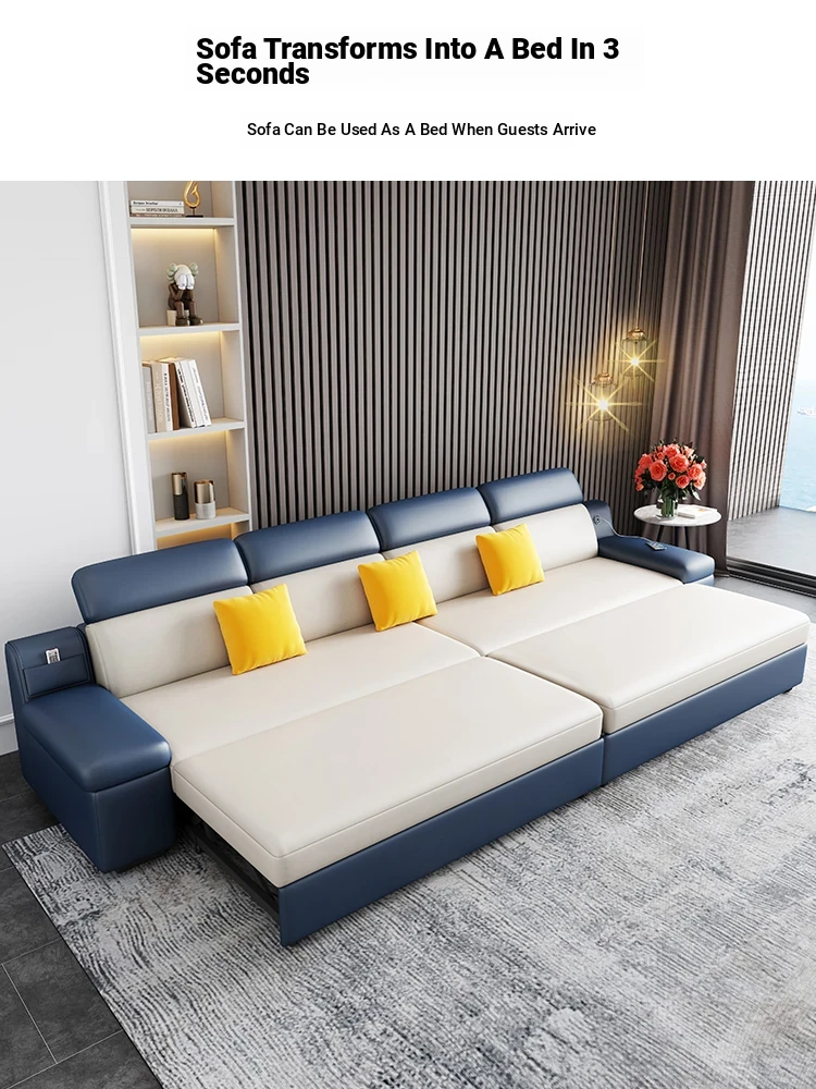 Modern L-Shaped Sofa Bed for Four - Versatile Foldable Design in High-Tech Fabric, Perfect for Spacious Living Rooms, Ideal for Couples and Guests