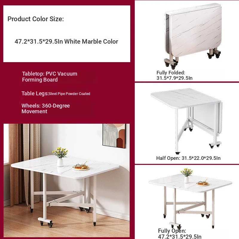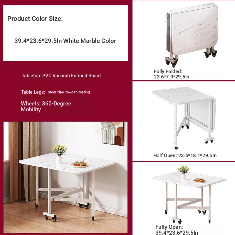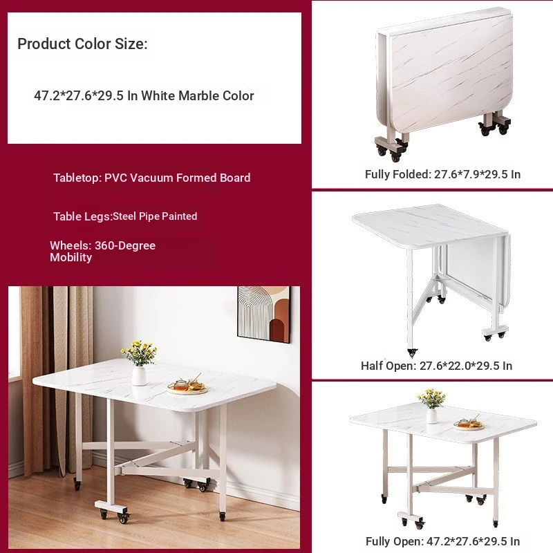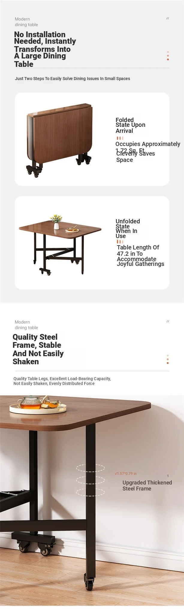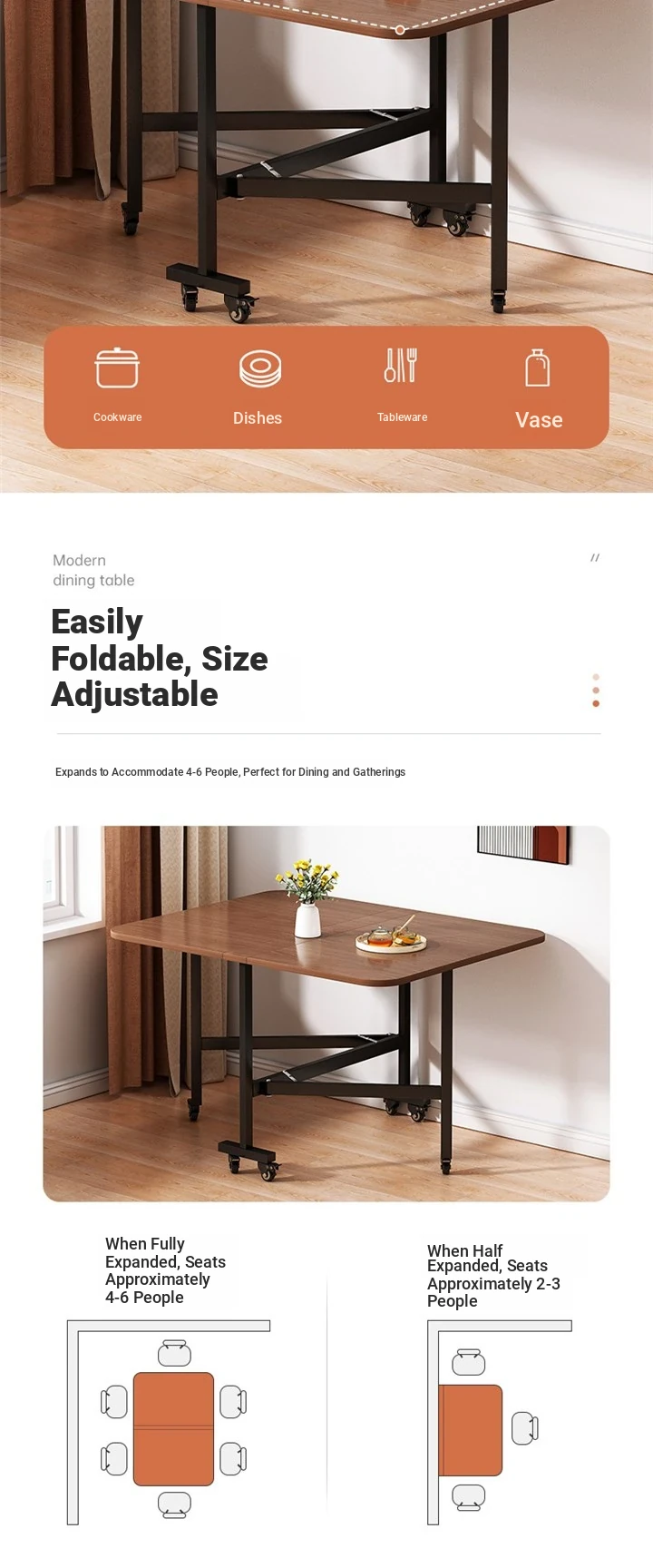 Modern Minimalist Folding Dining Table - Compact Rectangular Design for Small Apartments, Easy to Move, Perfect for Renting and Dining in Style!