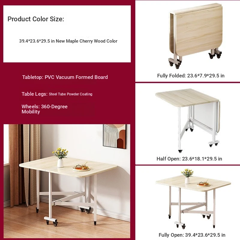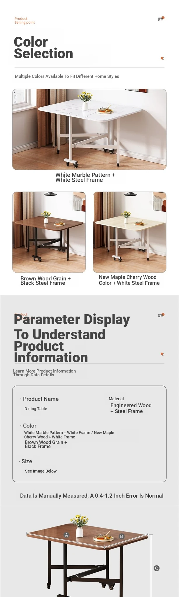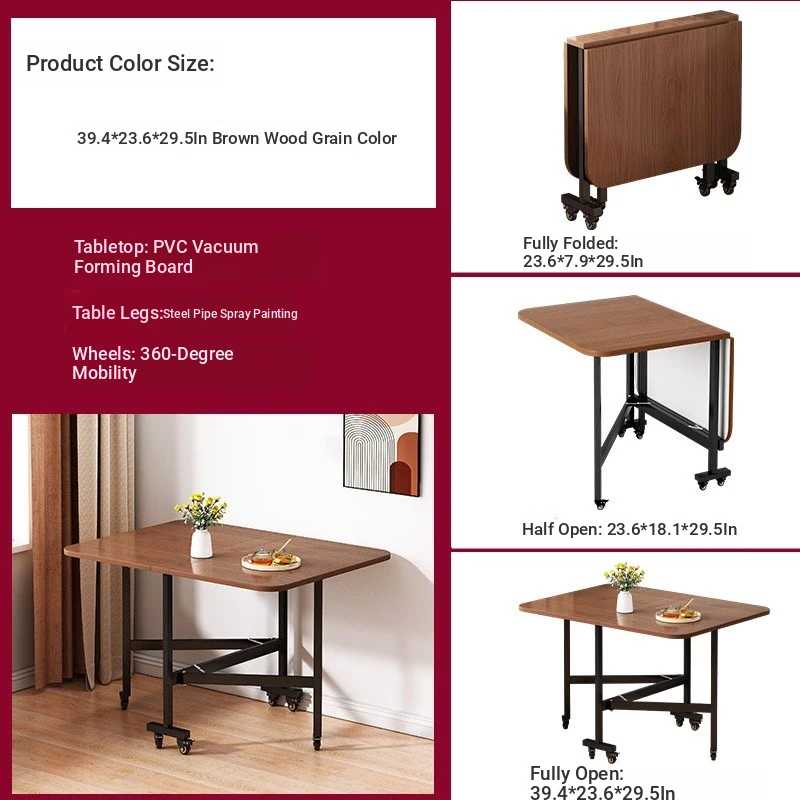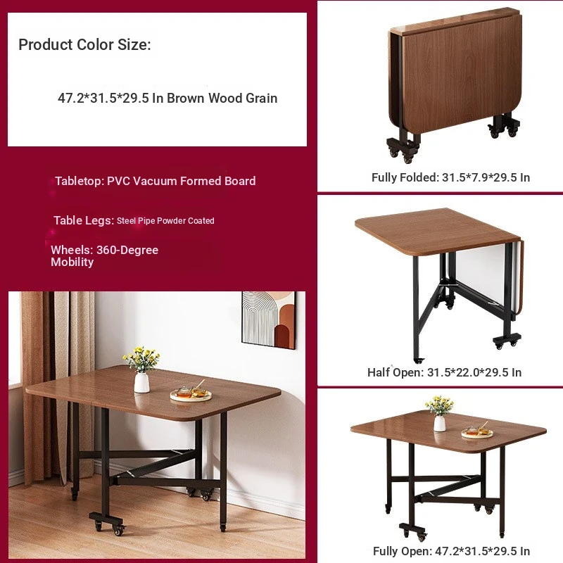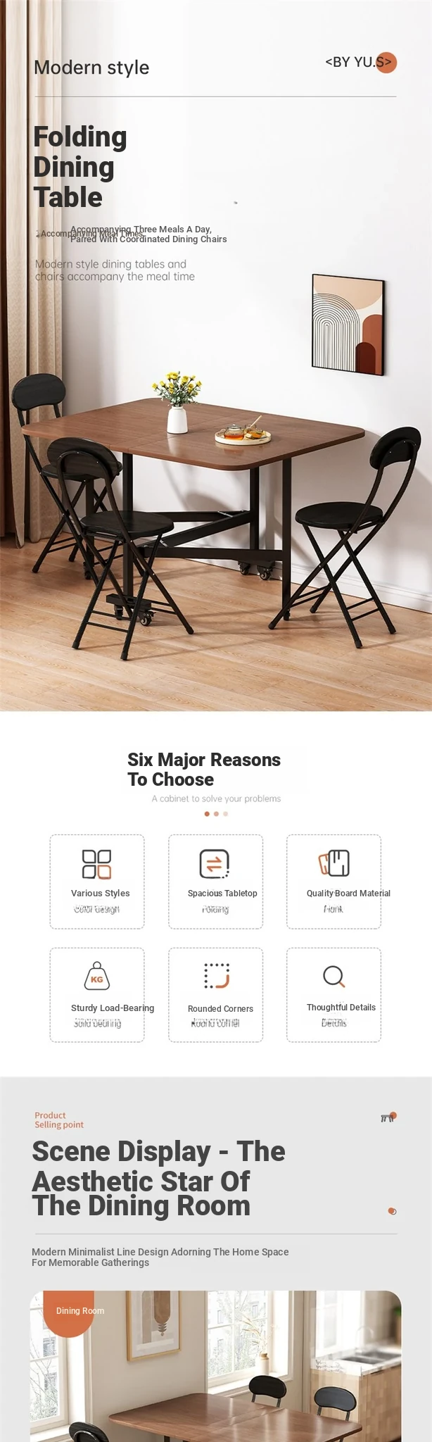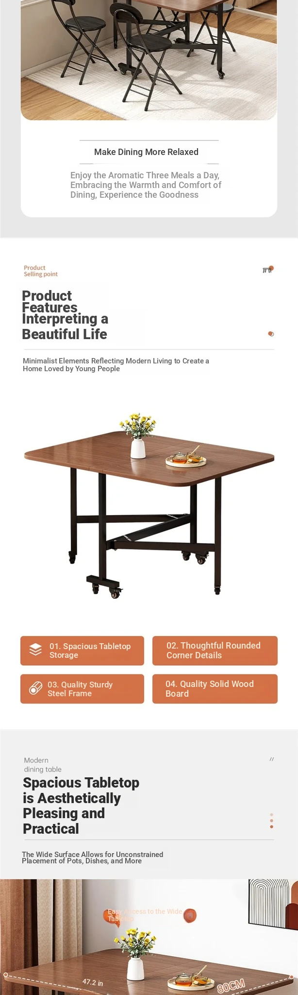 Modern Minimalist Folding Dining Table - Compact Rectangular Design for Small Apartments, Easy to Move, Perfect for Renting and Dining in Style!