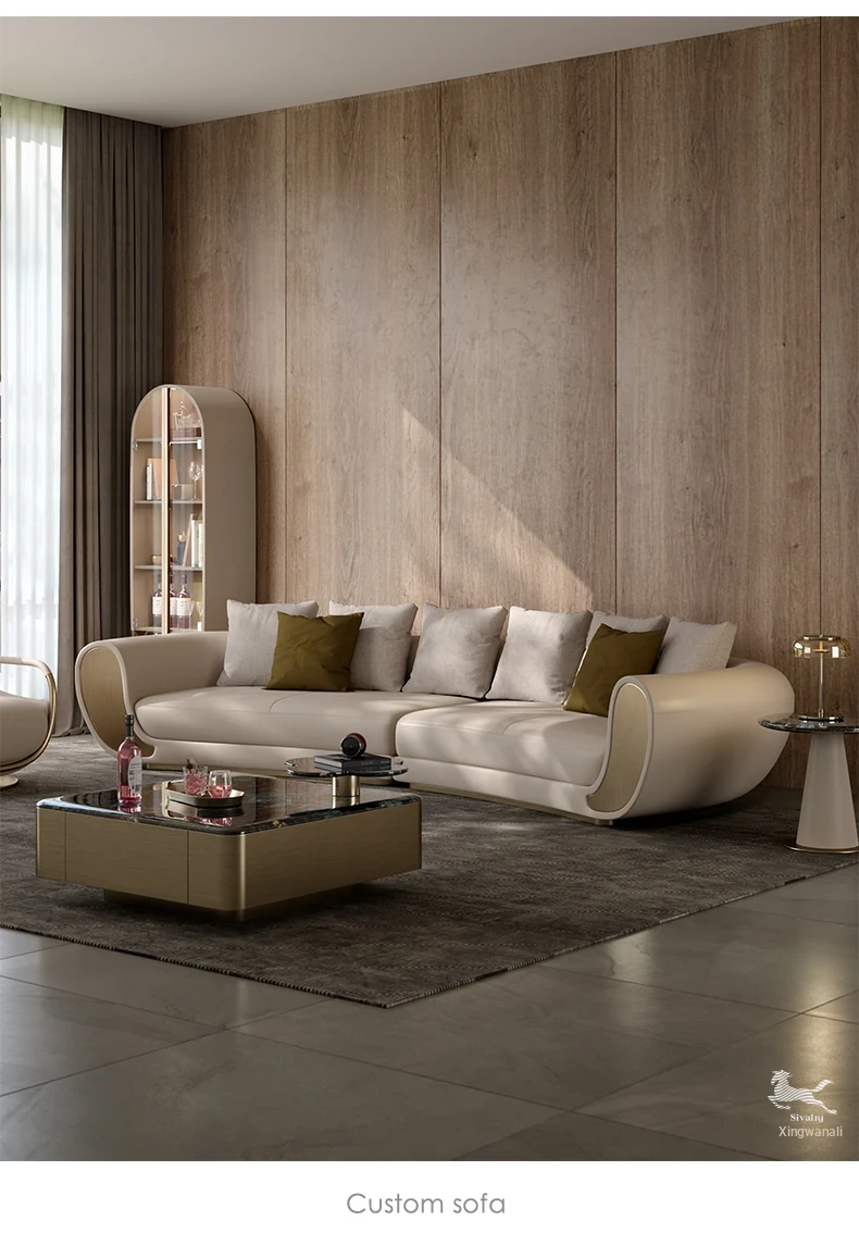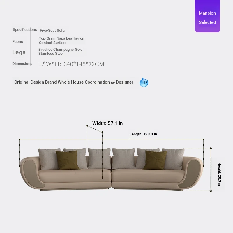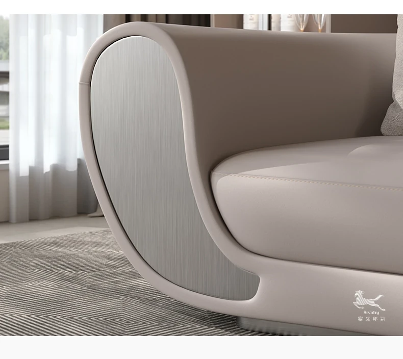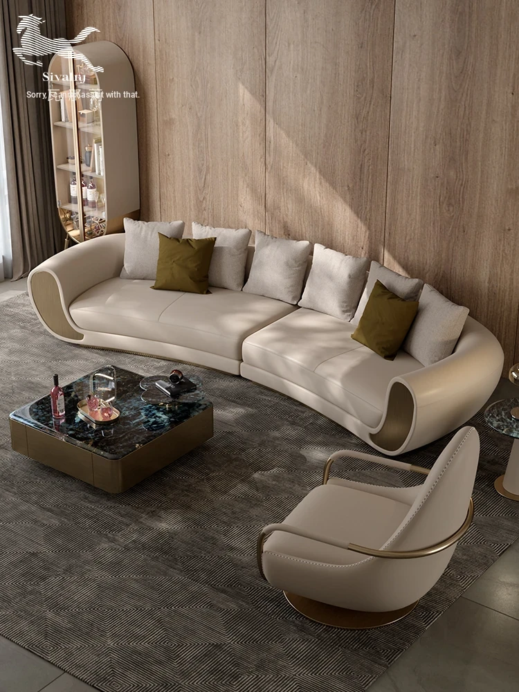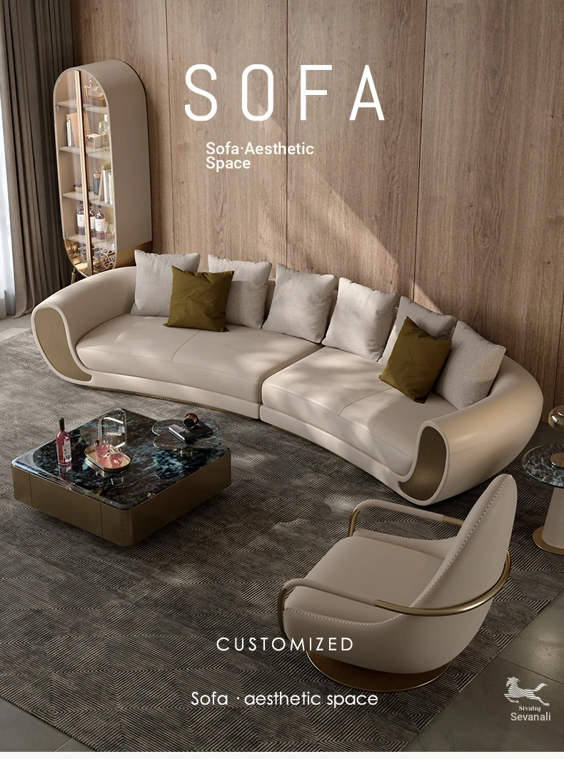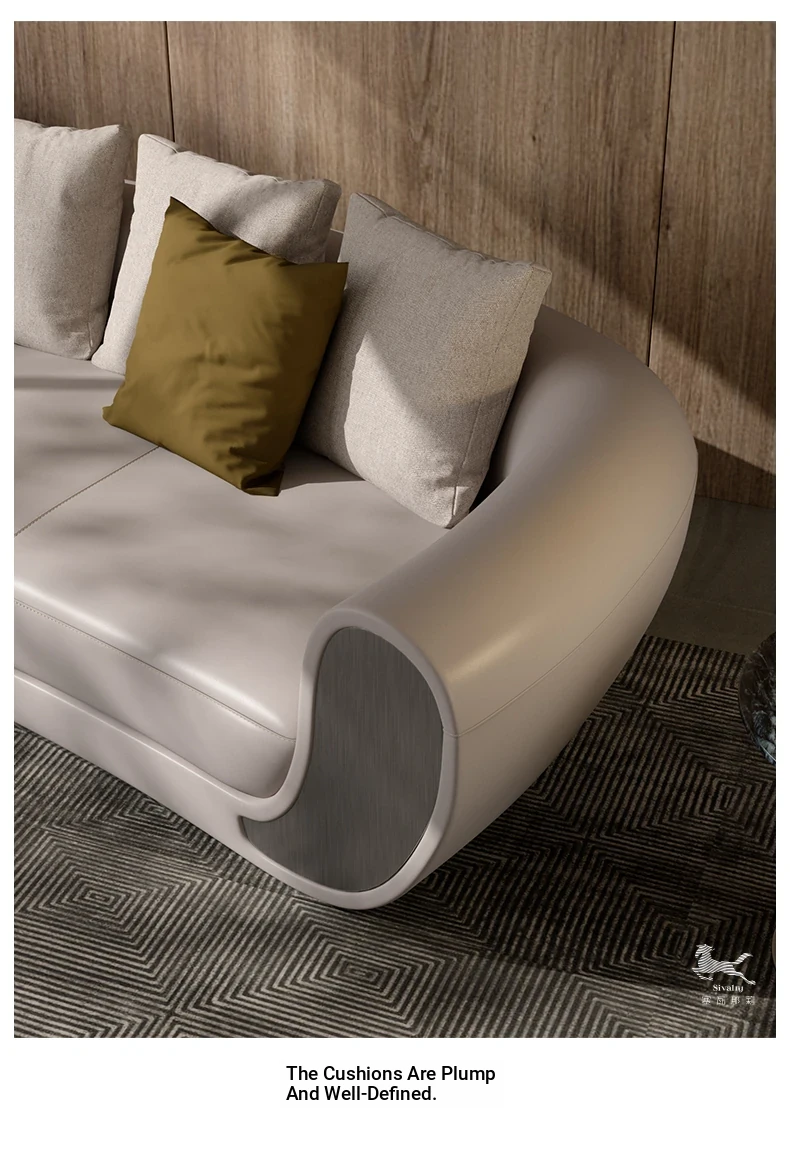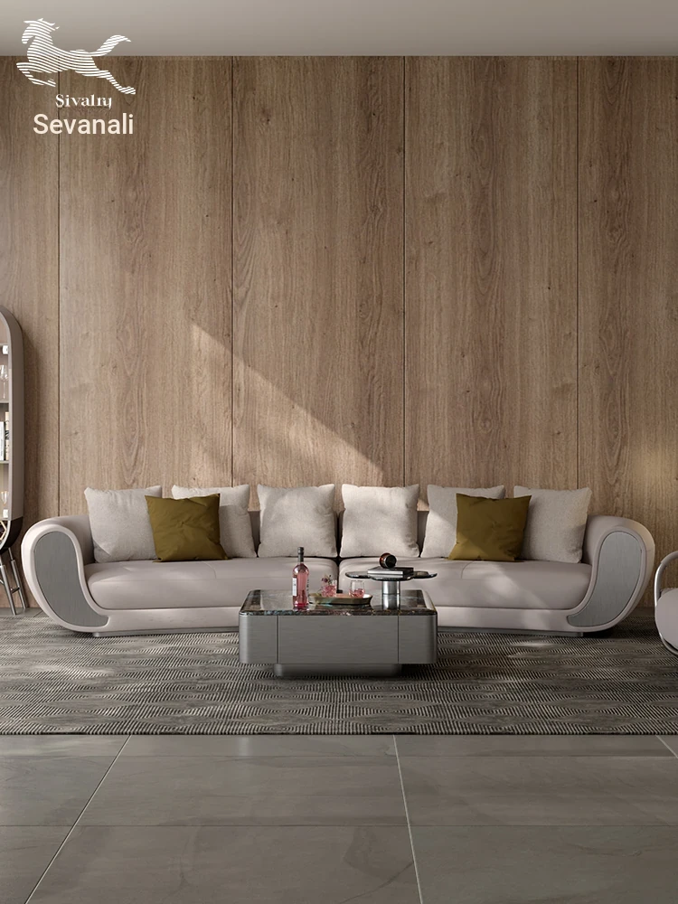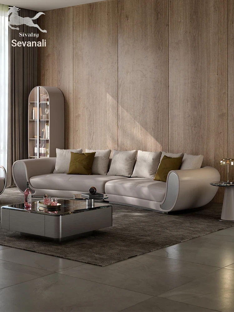 Sevanali French Leather Sofa - Luxurious Modern High-End Full Grain Cowhide Sofa for Spacious Living Rooms, Perfect for Elegant Interiors
