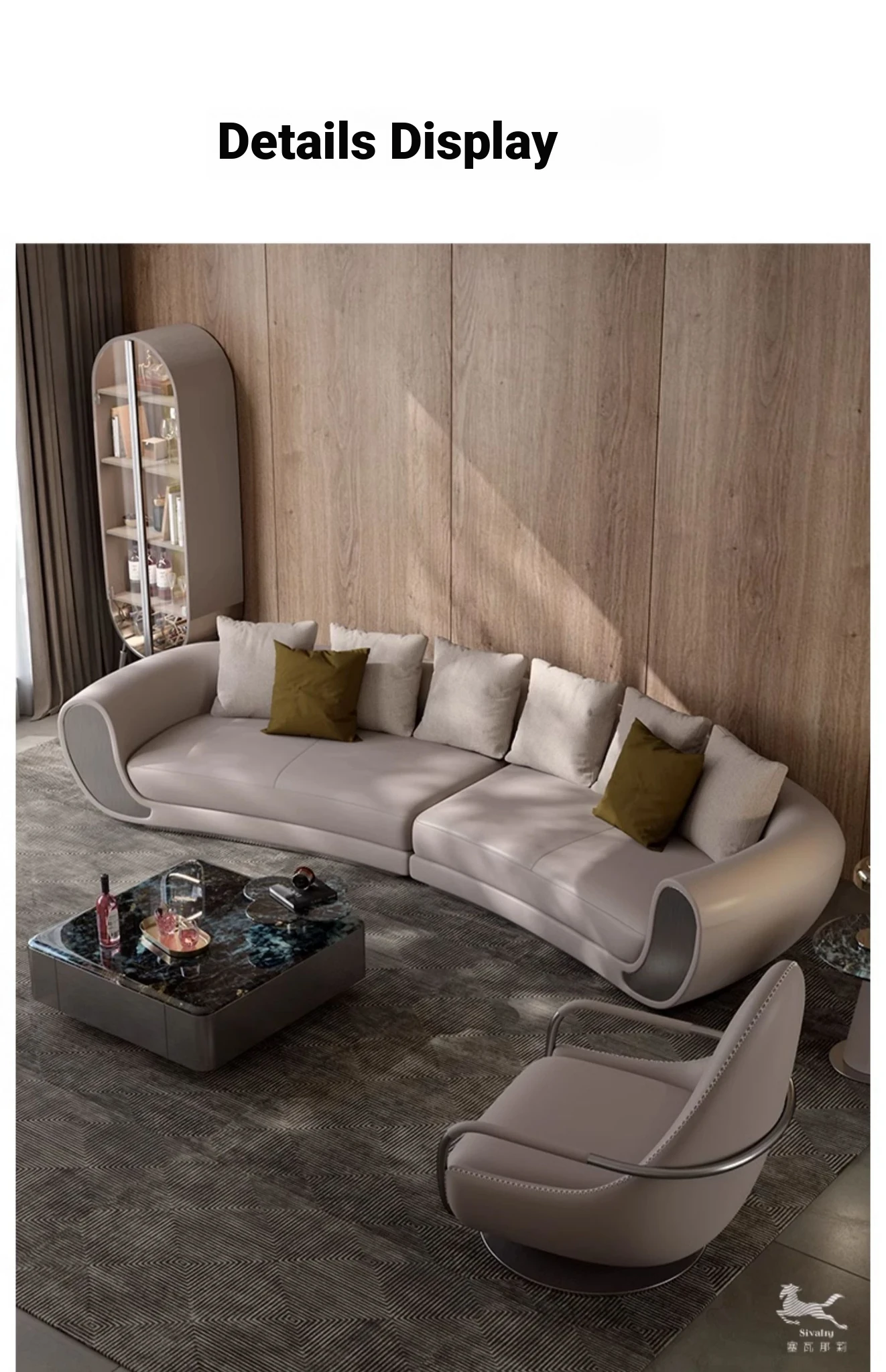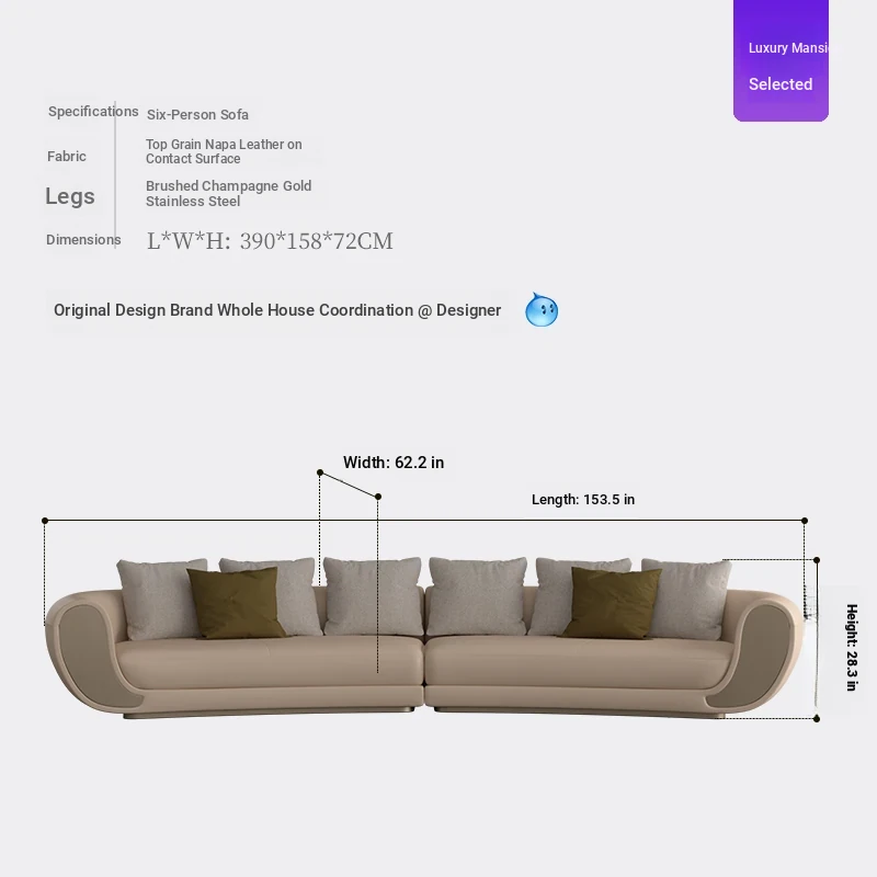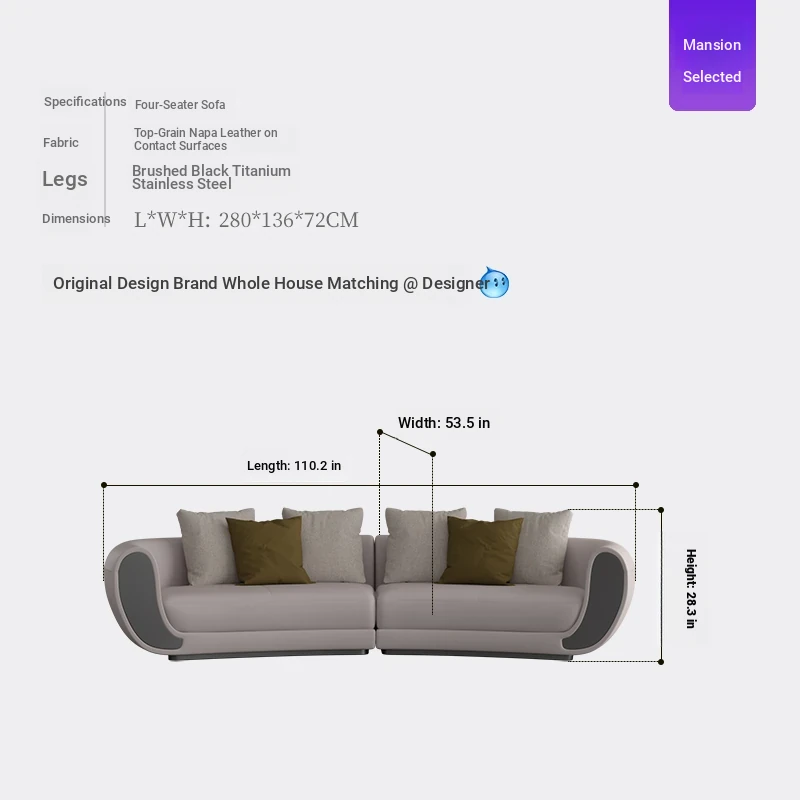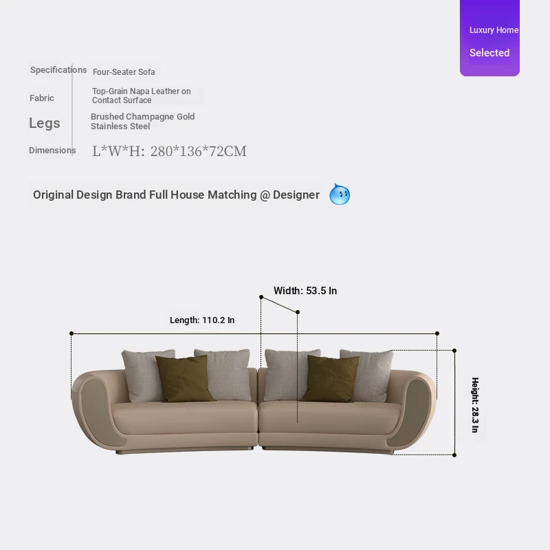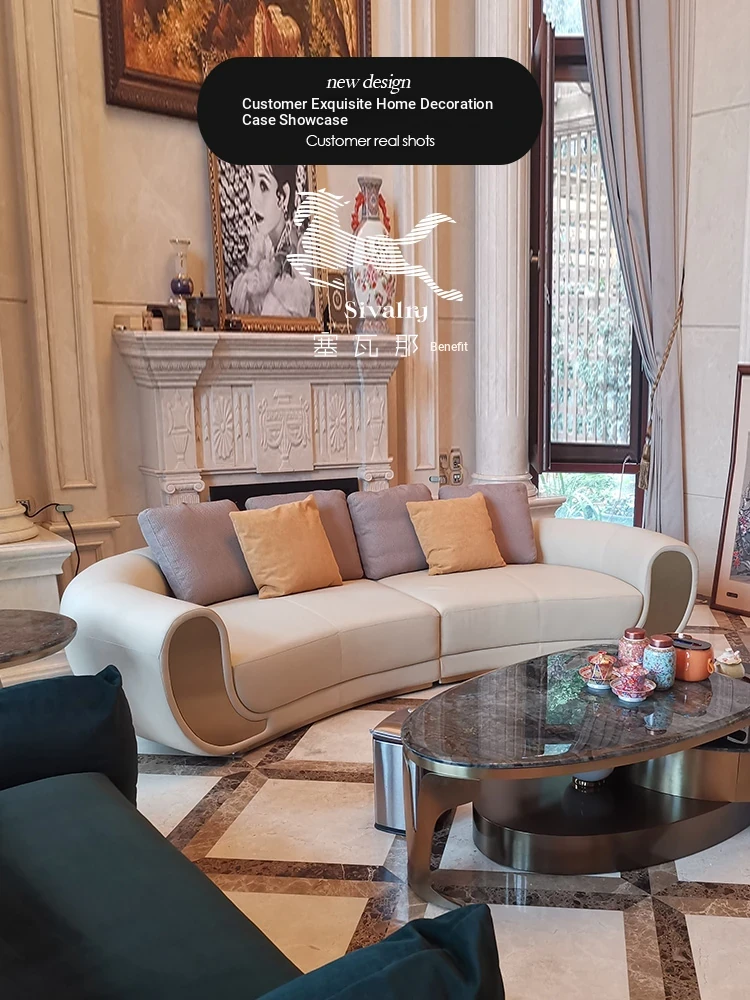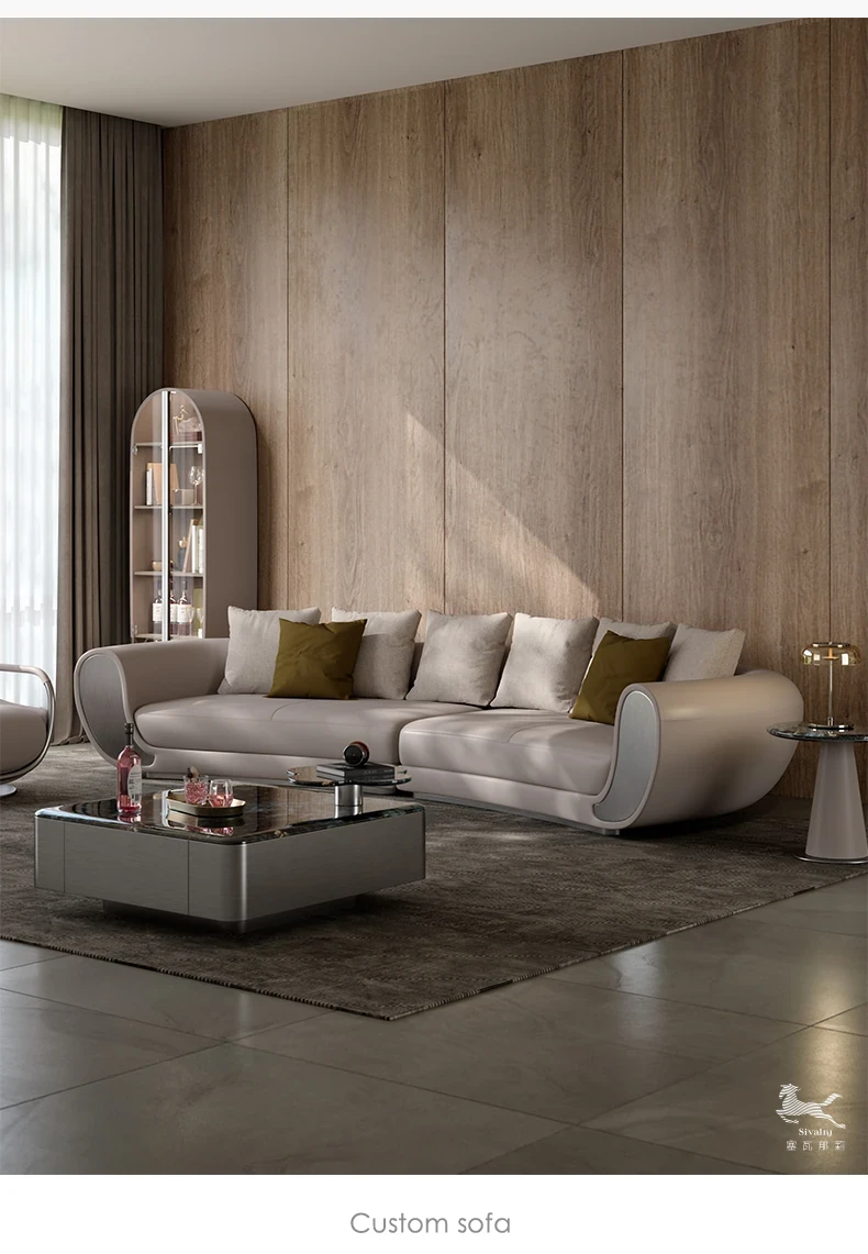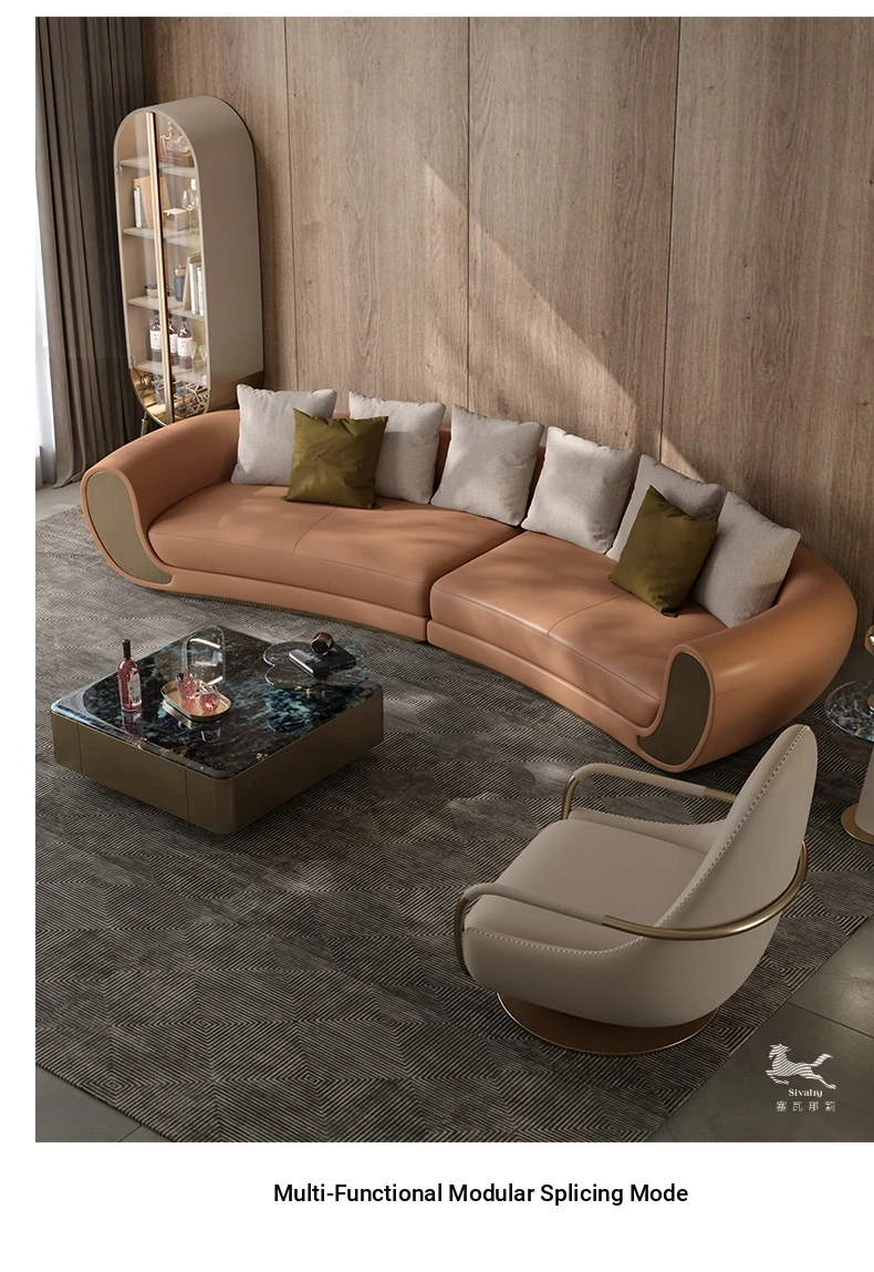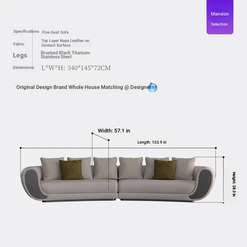 Sevanali French Leather Sofa - Luxurious Modern High-End Full Grain Cowhide Sofa for Spacious Living Rooms, Perfect for Elegant Interiors
