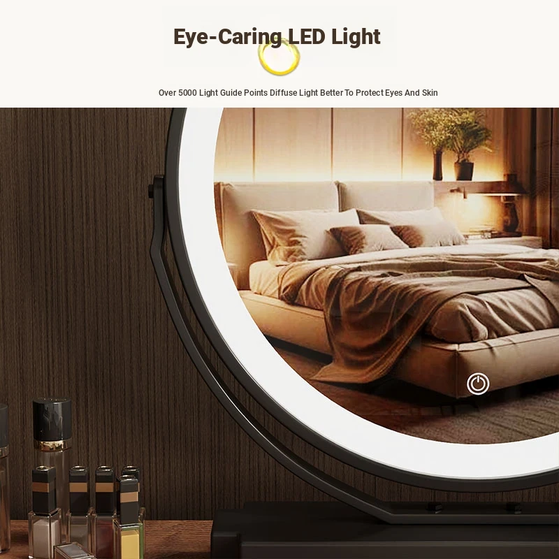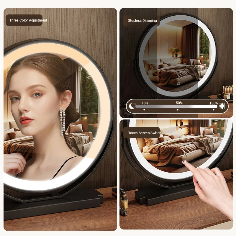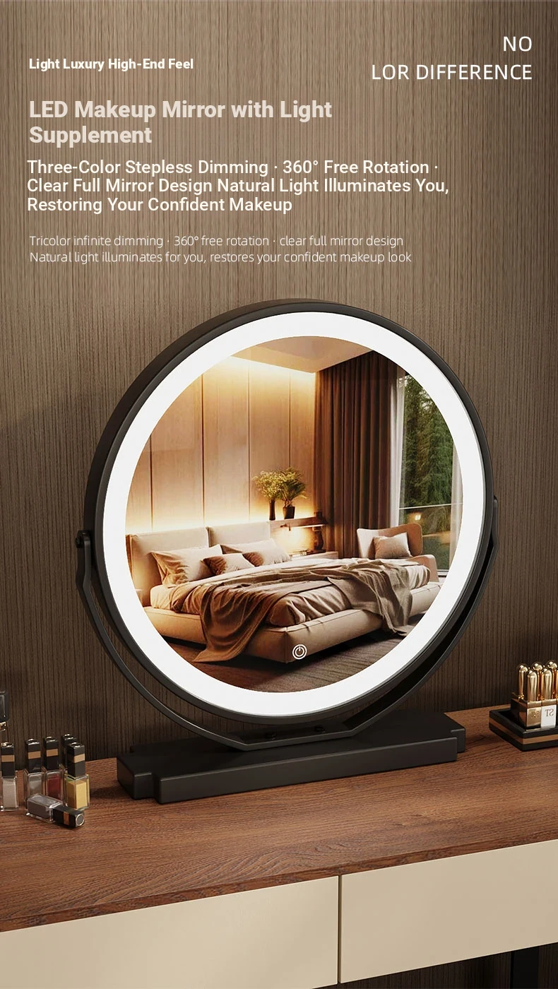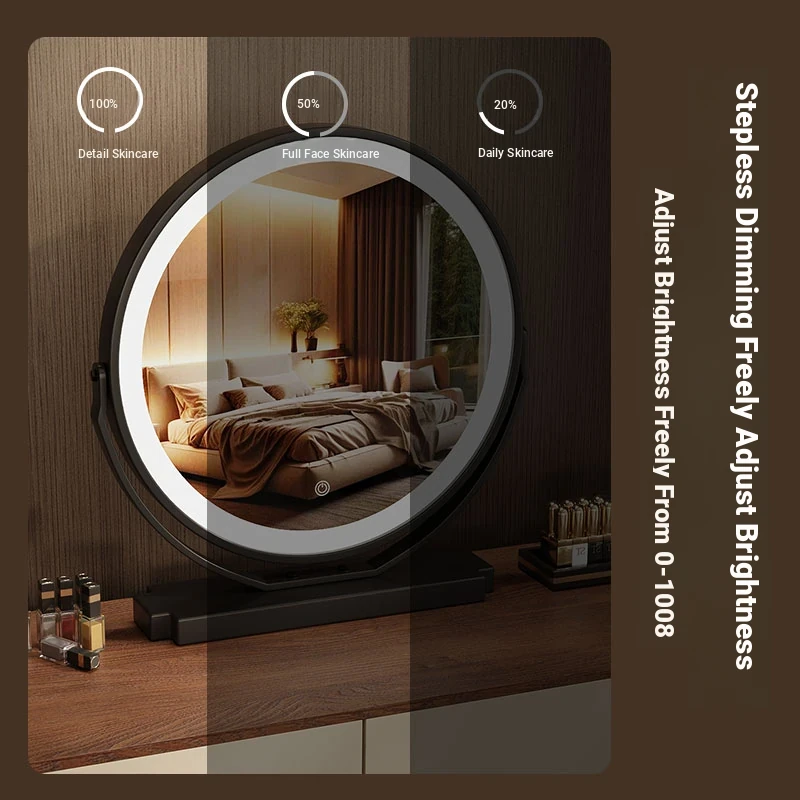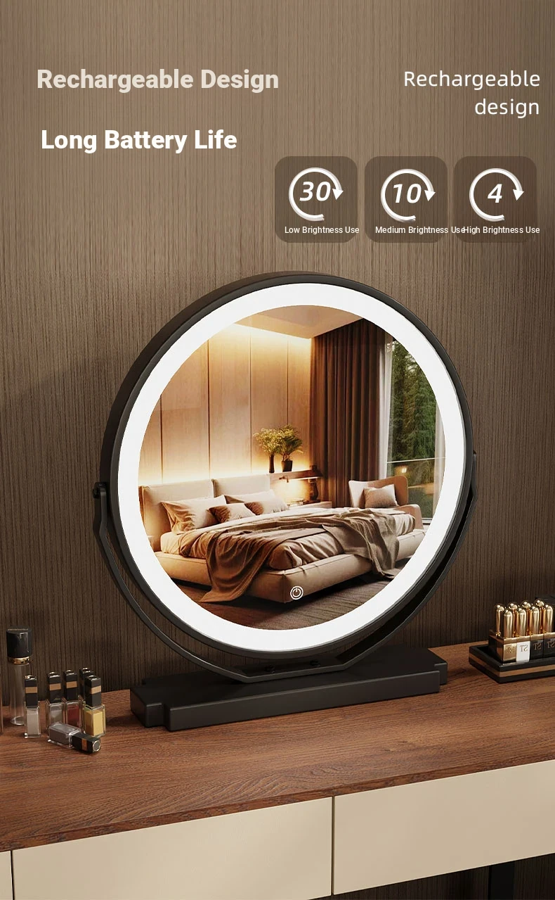 Smart LED Makeup Mirror for Dressing Table - Rotatable Luxury Desktop Mirror with Light for Bedroom and Dorm Room