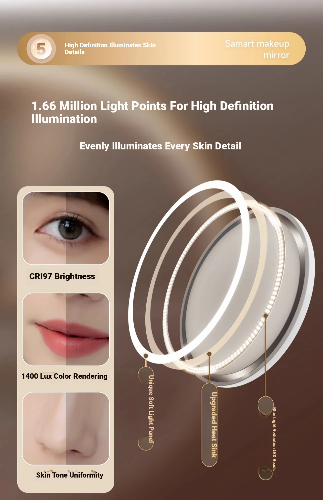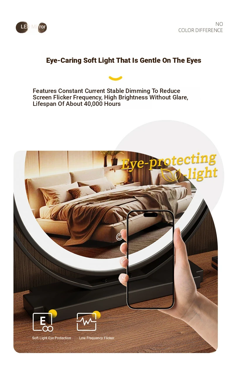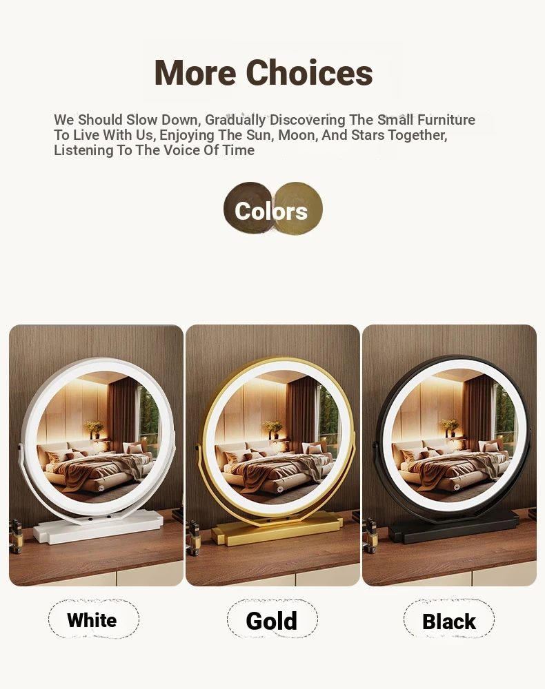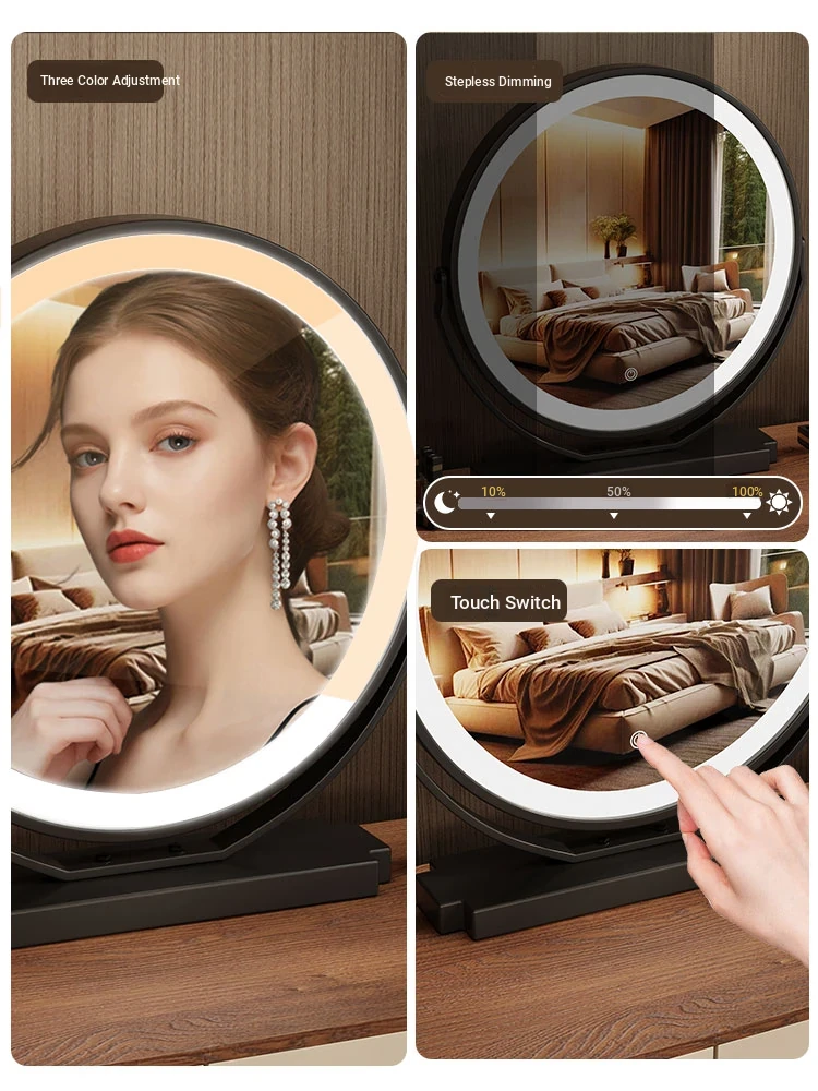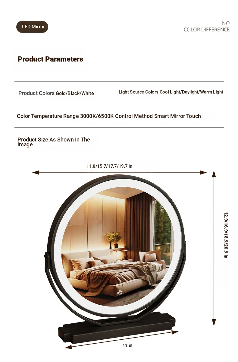 Smart LED Makeup Mirror for Dressing Table - Rotatable Luxury Desktop Mirror with Light for Bedroom and Dorm Room
