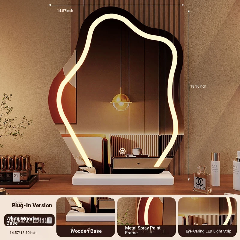 [Plug-in dual-use] Large Cloud smart mirror 43*55 Pearl White (wooden base✅Safety Environmental-Friendly)