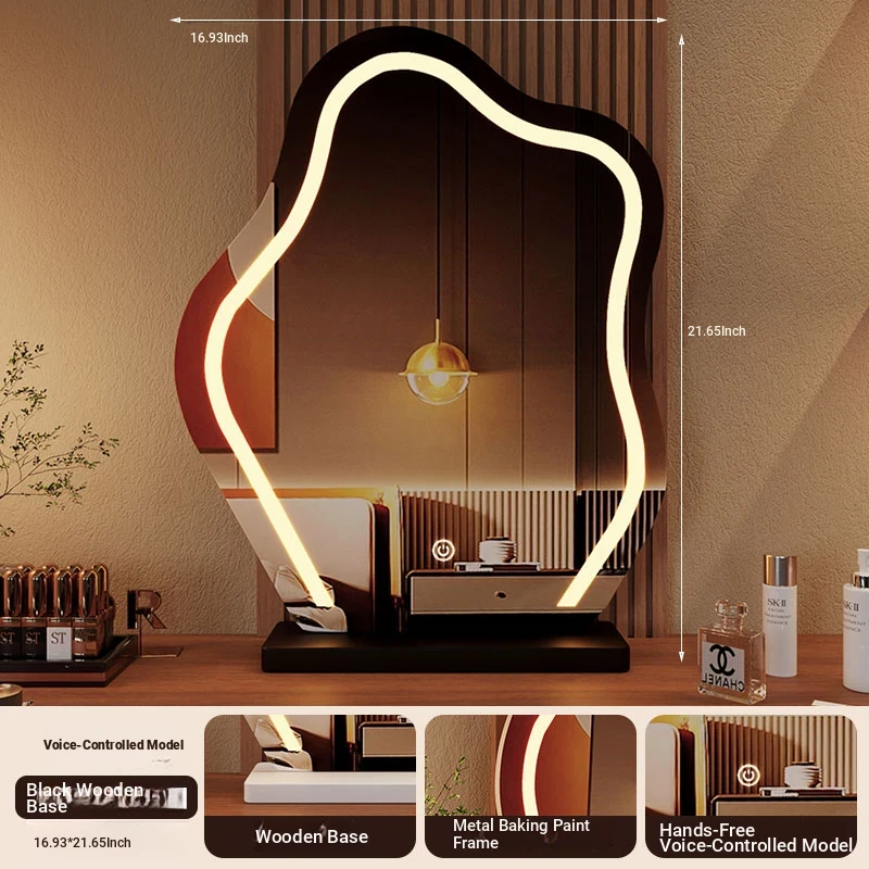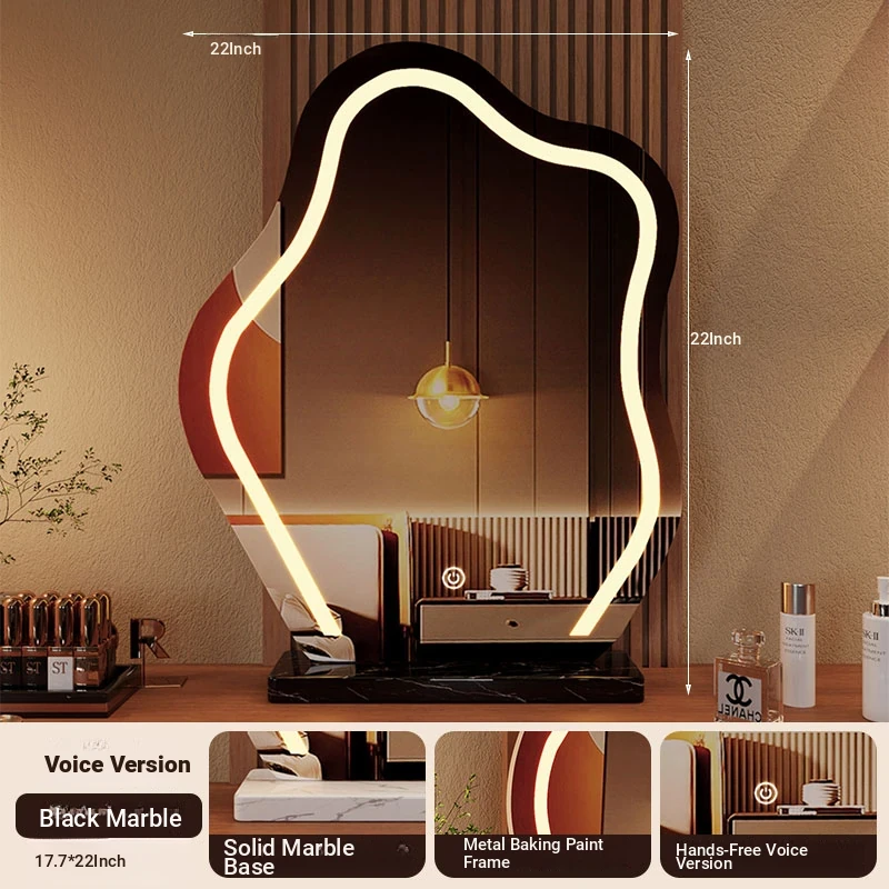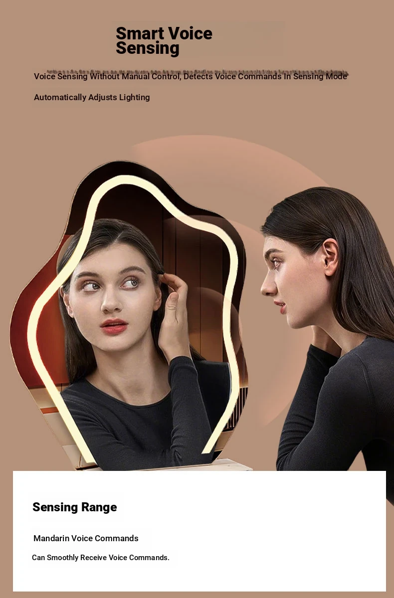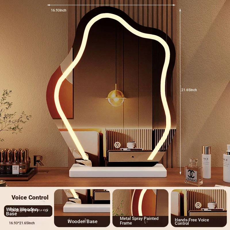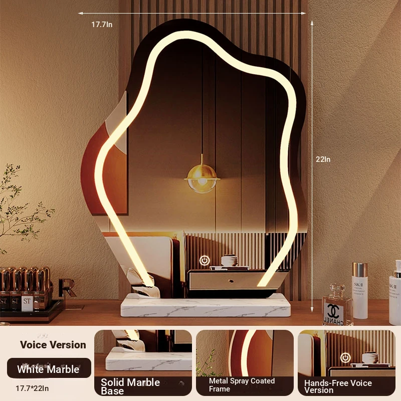 Smart Voice-Controlled LED Makeup Mirror - Trendy Cloud Design, 2025 New Luxurious Home Vanity Mirror for Bedroom - Perfect Lighting for Flawless Makeup Application