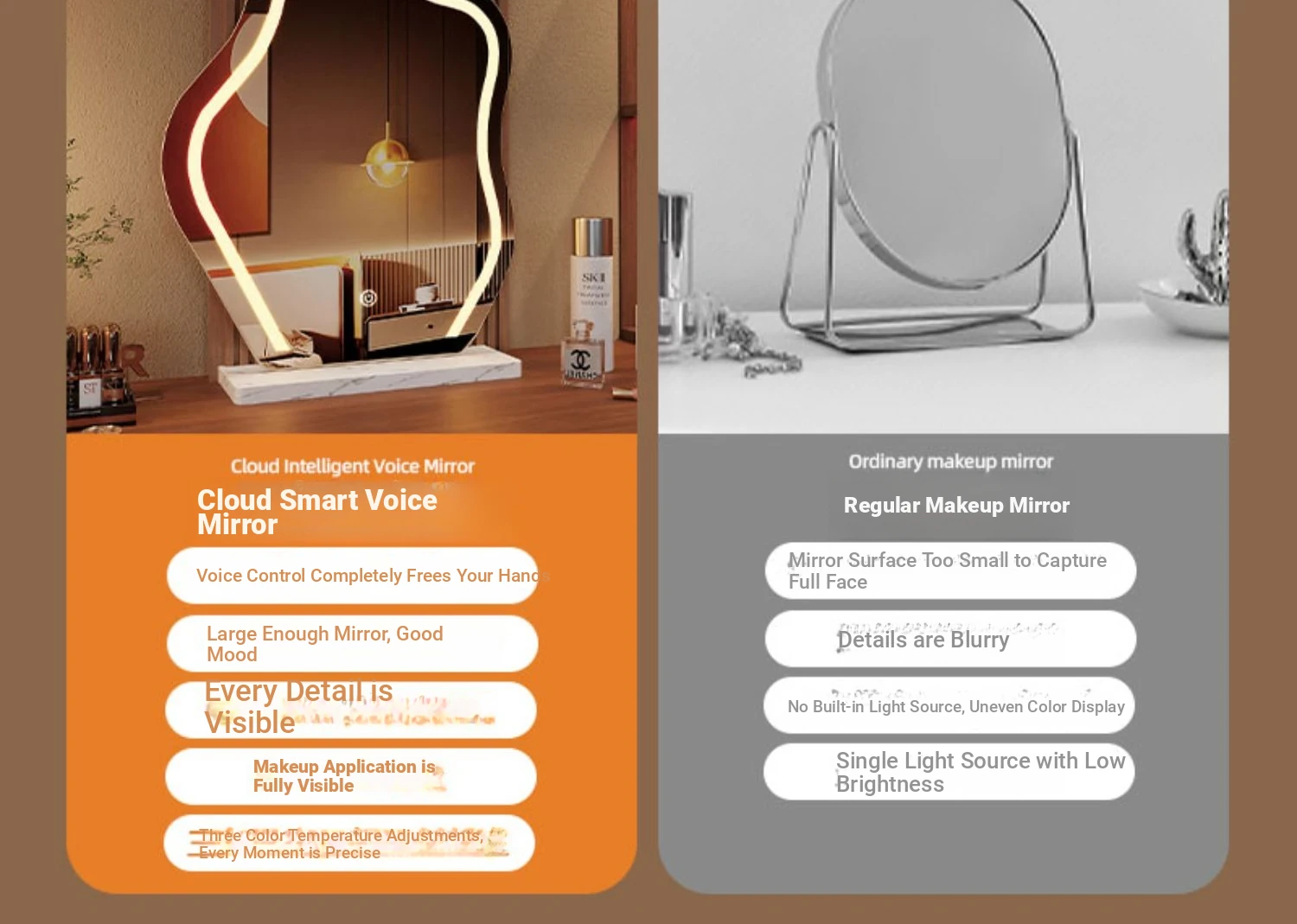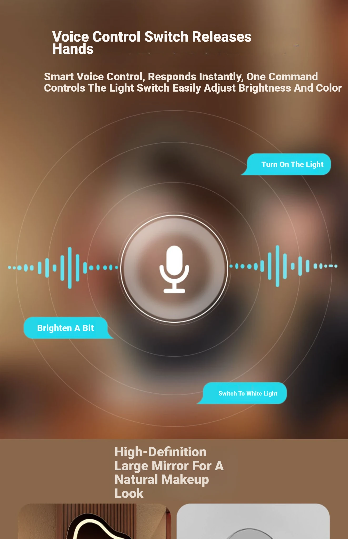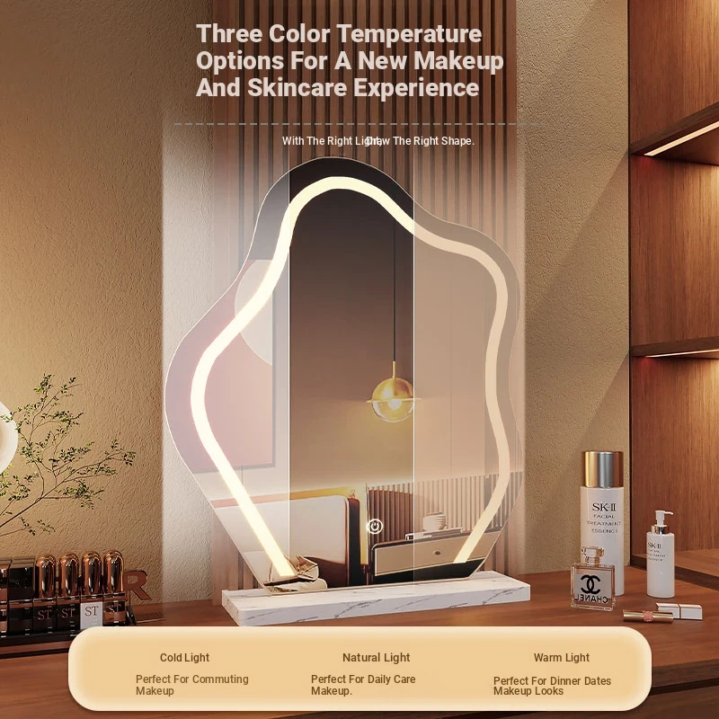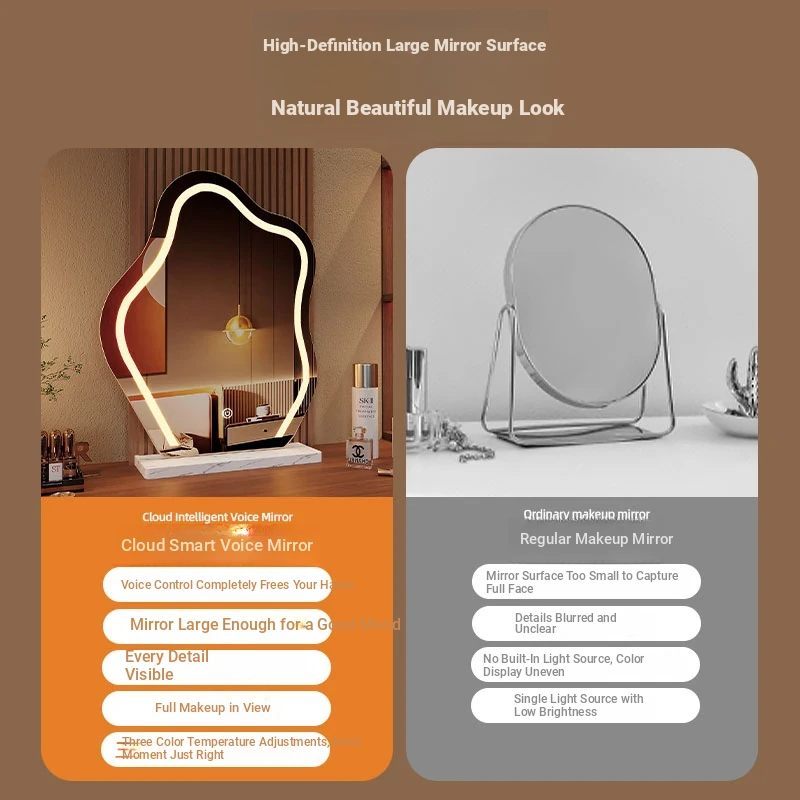 Smart Voice-Controlled LED Makeup Mirror - Trendy Cloud Design, 2025 New Luxurious Home Vanity Mirror for Bedroom - Perfect Lighting for Flawless Makeup Application