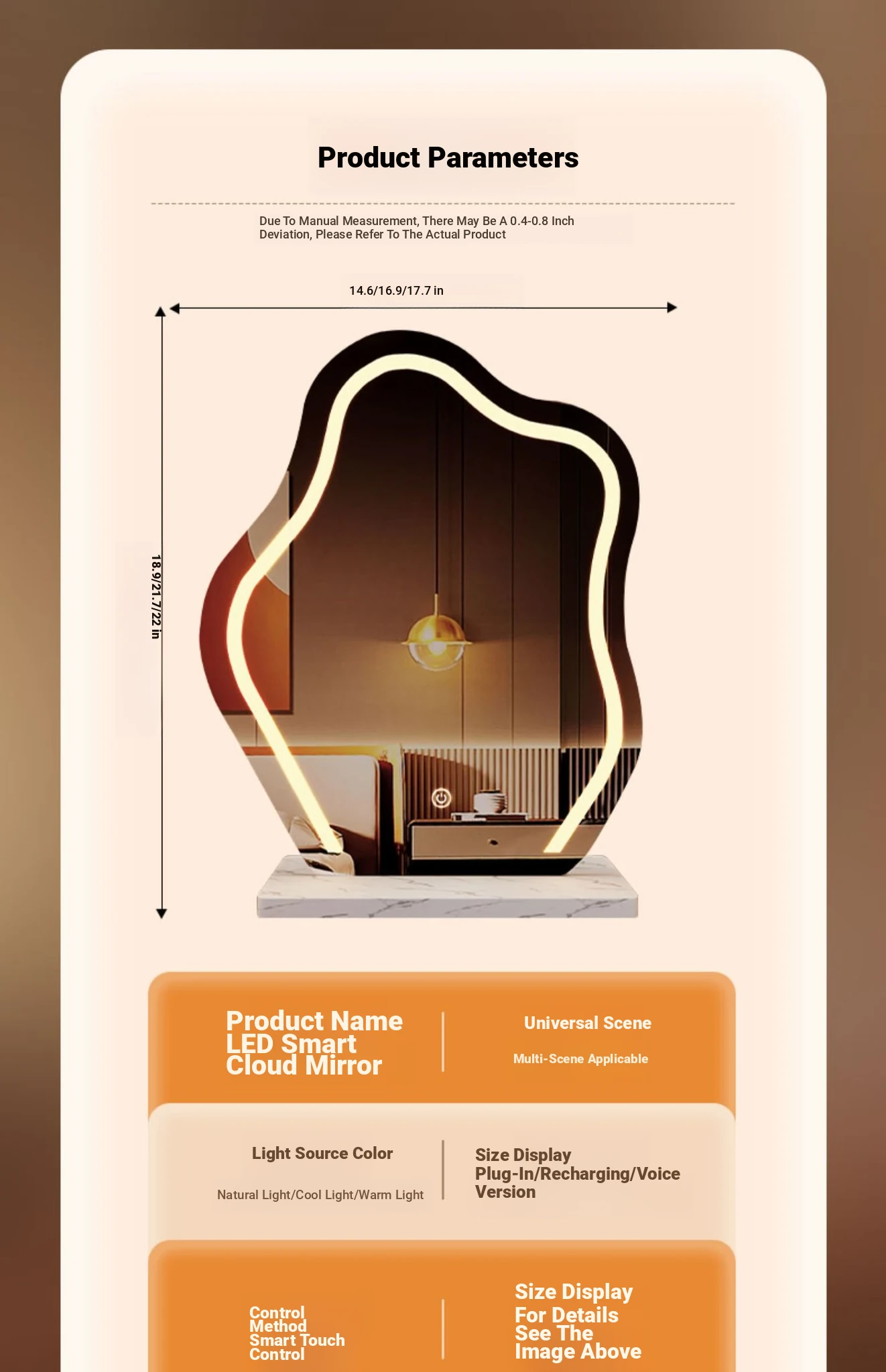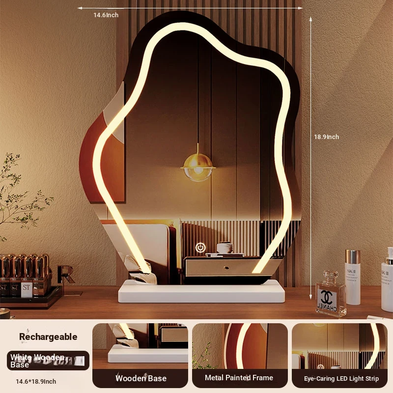 [Plug-in] Large Cloud smart mirror 43*55 Pearl White (wooden base✅Safety Environmental-Friendly)