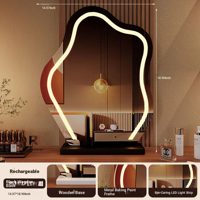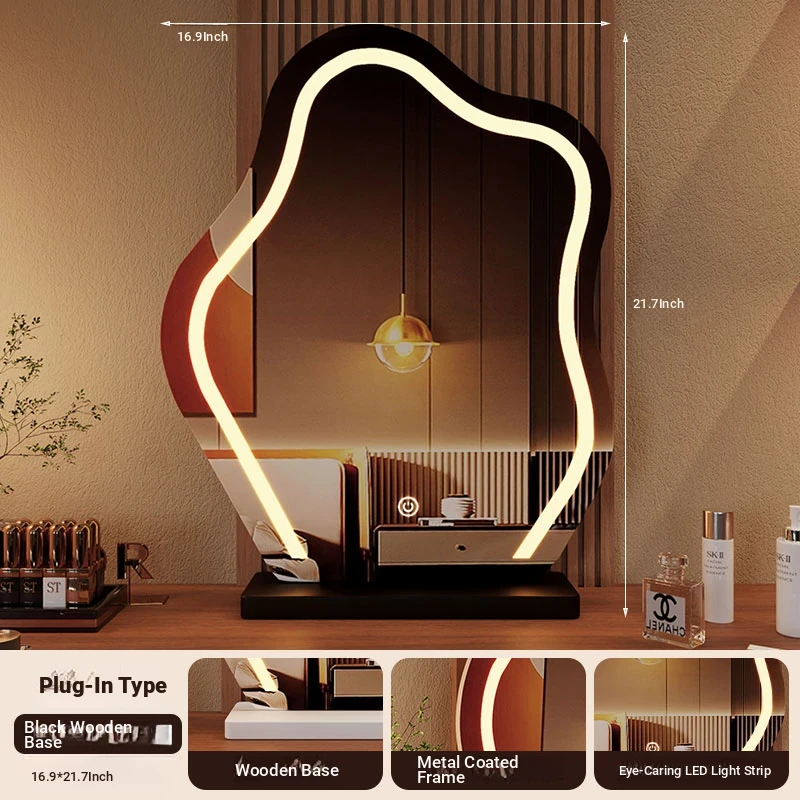 [Plug-in dual-use] Large Cloud smart mirror 43*55 luxury black (wooden base✅Safety Environmental-Friendly)