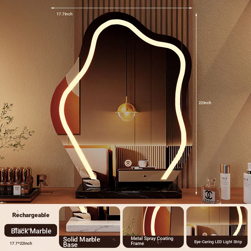 [Plug-in dual-use] Large Cloud Smart Mirror 45*56 Luxury Black (Natural Marble⭐Stepless diining)