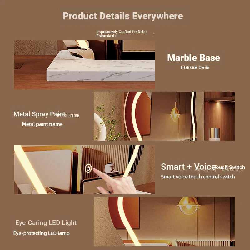 New Upgrade [Free Hands Voice] Large Cloud Smart Mirror 45*56 Luxury Black (Natural Marble⭐Stepless diining)