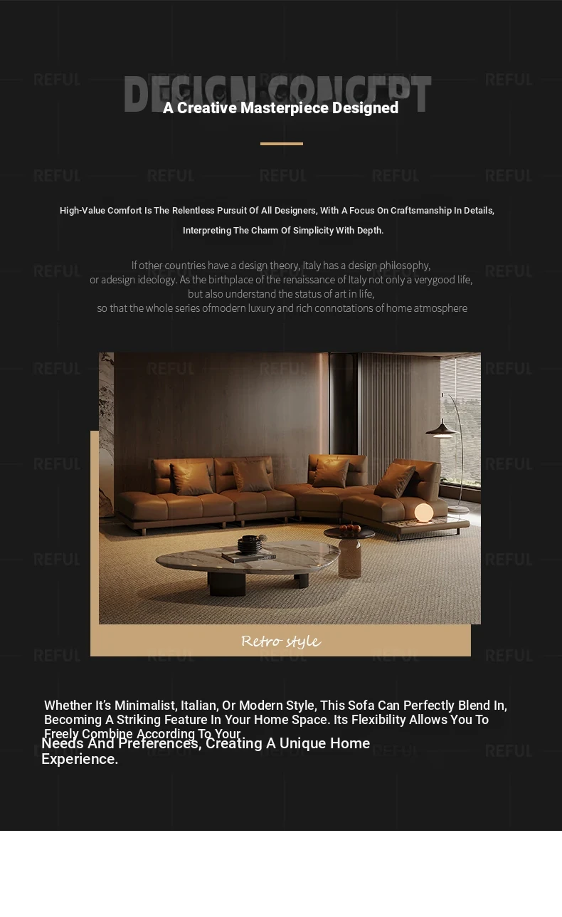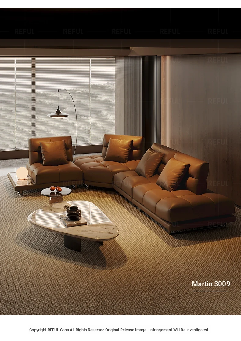Yuefu Italian Minimalist Genuine Leather Sofa - Luxurious Half-Aniline Leather Rome Chaise Lounge Corner Couch for Elegant Living Rooms