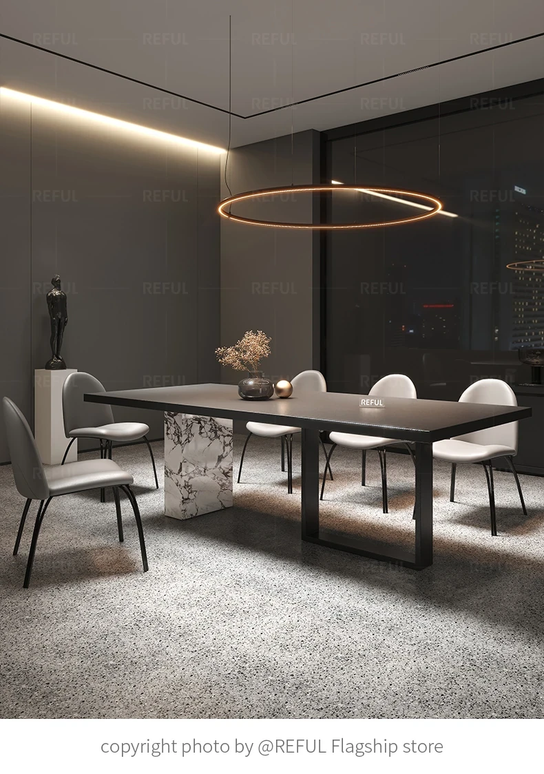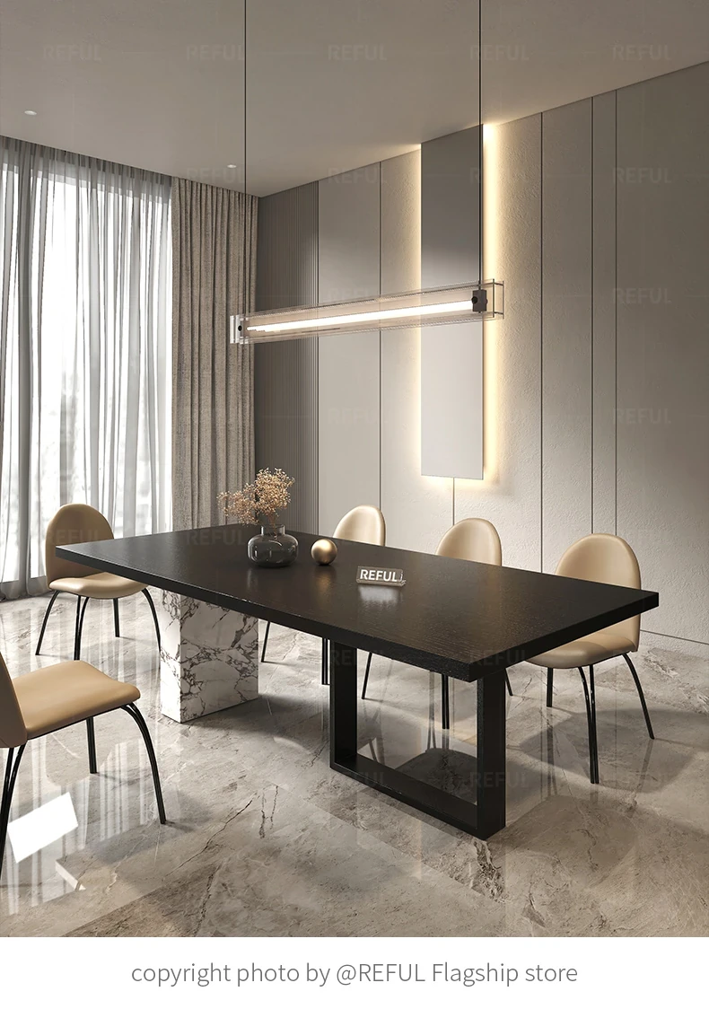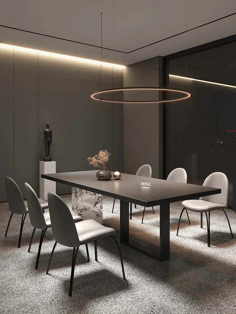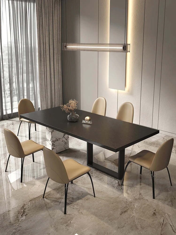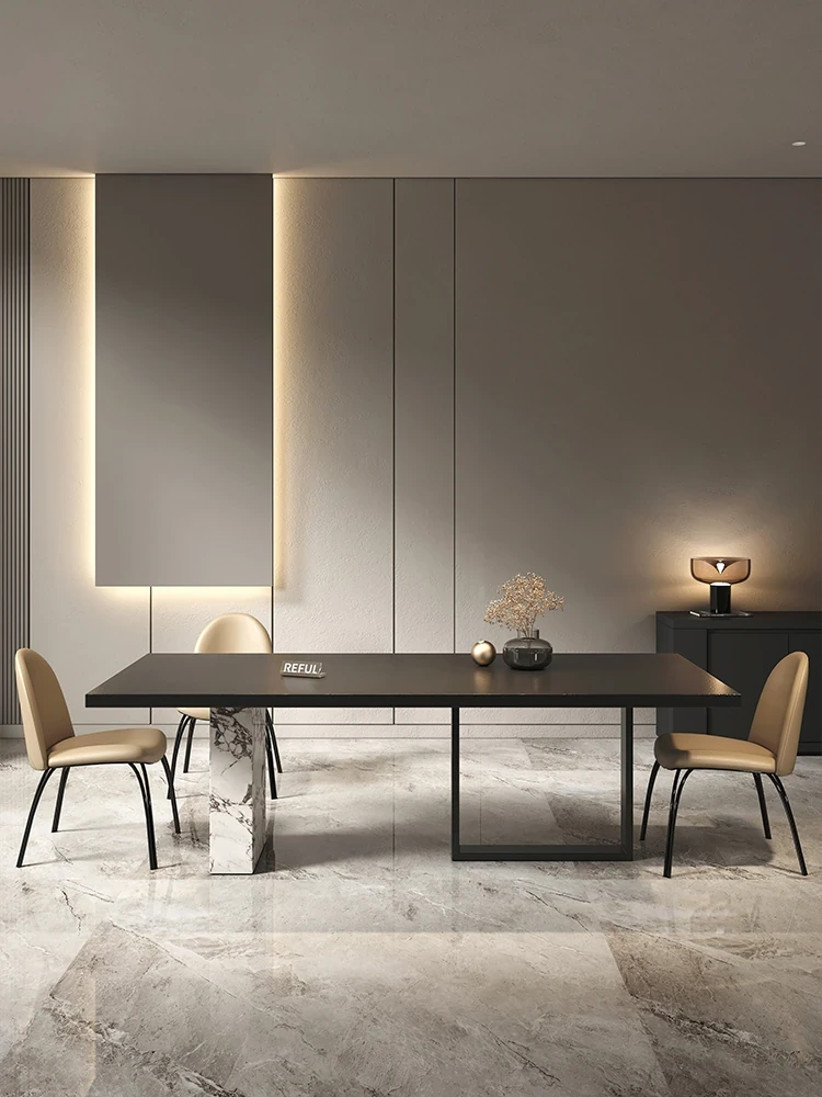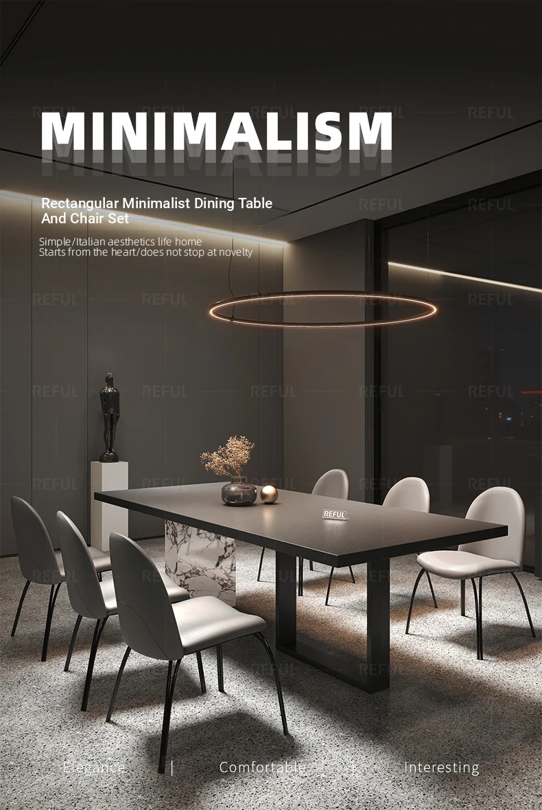 Yuefu Modern Black Rectangular Dining Table Set - Minimalist Italian Style with 1 Table and 6 Chairs for a Luxurious Dining Experience
