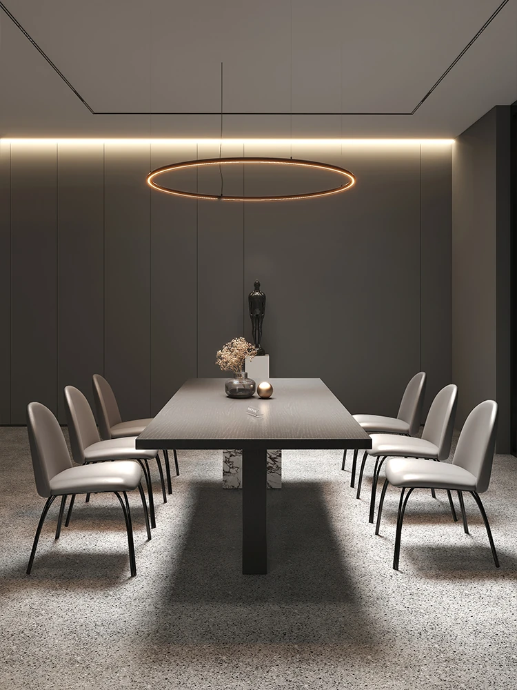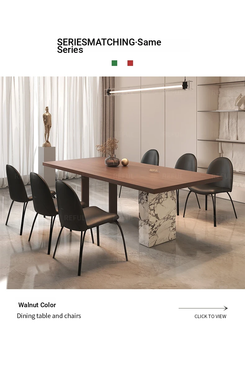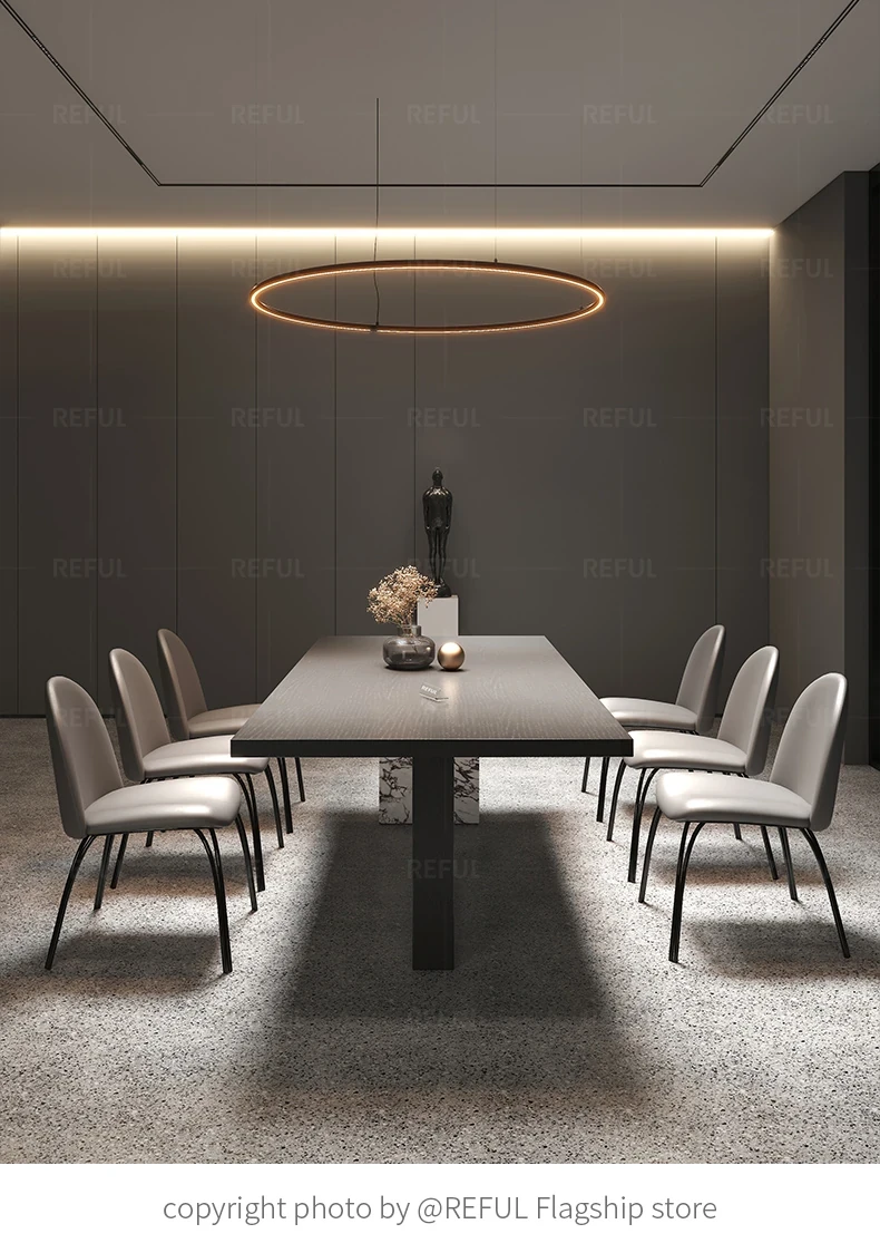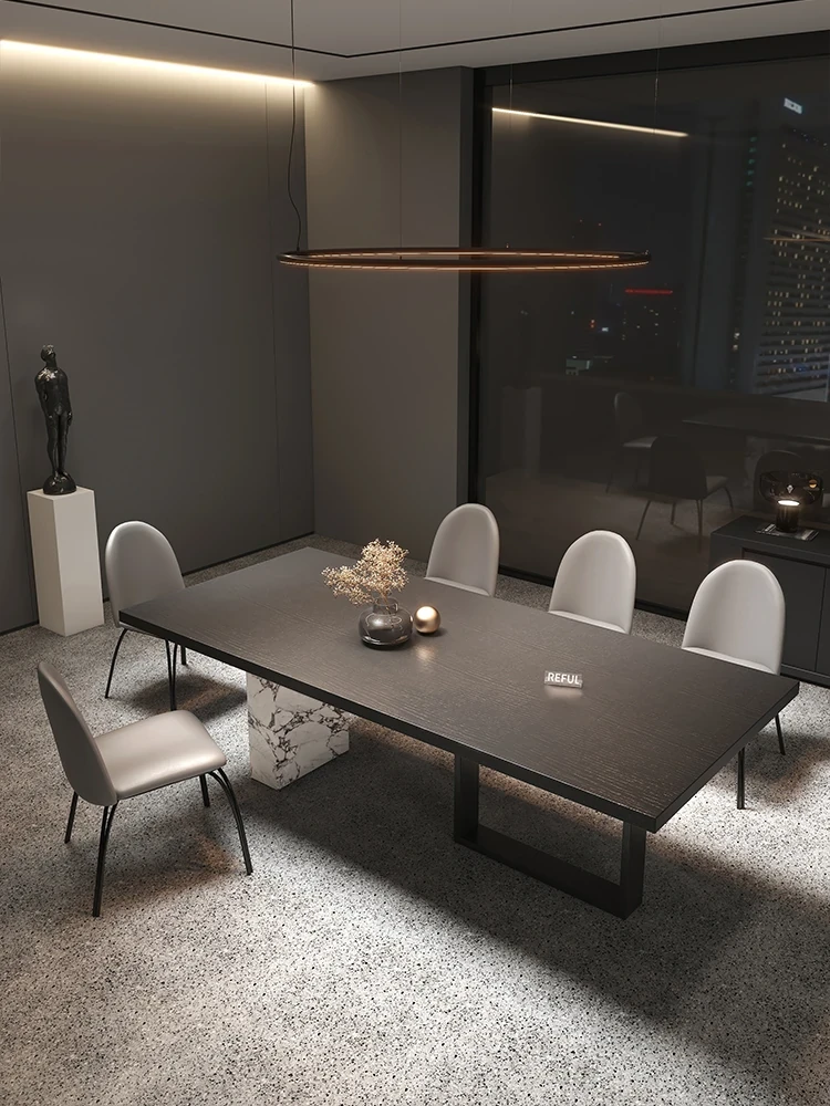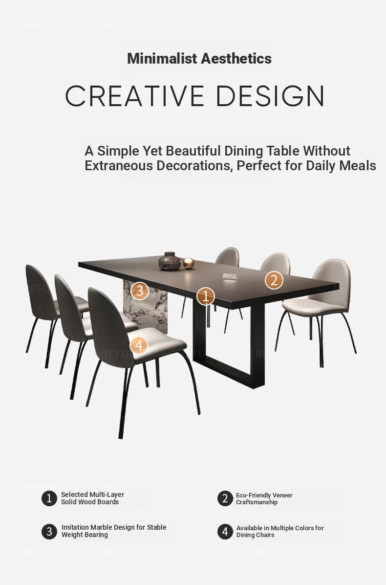 Yuefu Modern Black Rectangular Dining Table Set - Minimalist Italian Style with 1 Table and 6 Chairs for a Luxurious Dining Experience