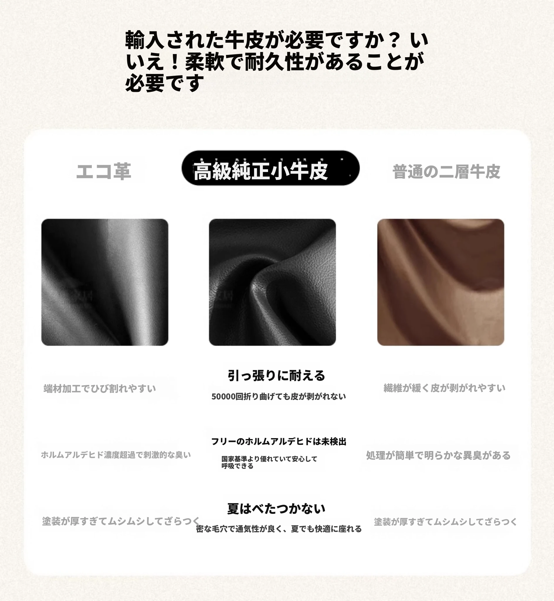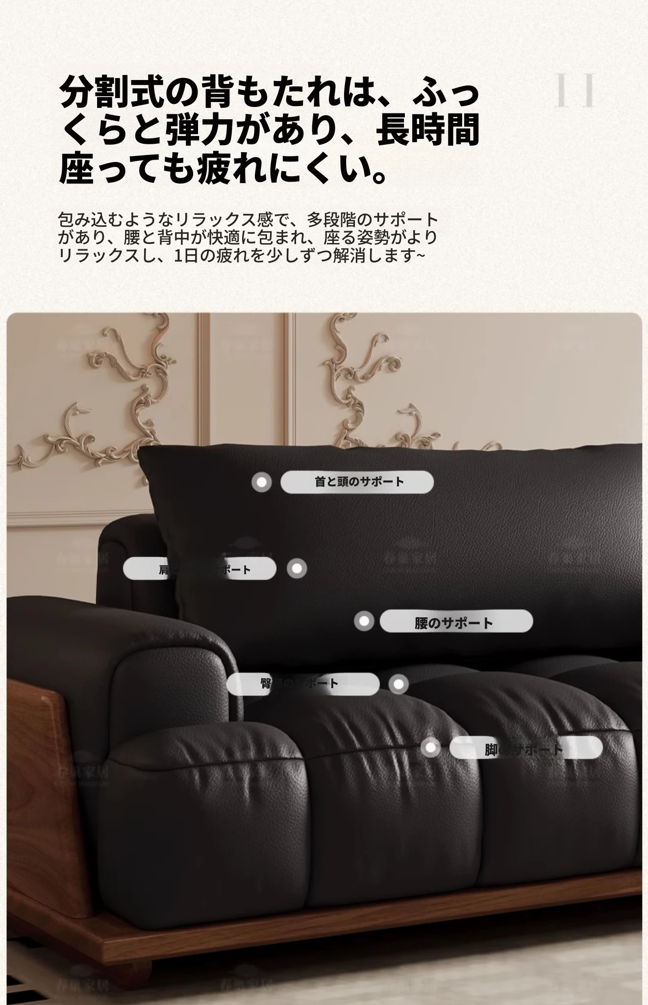 【至高版】4人用2.6M【SS級ブラックウォールナット+360度全V級細かいしわのあるトップレザーの黄牛皮】