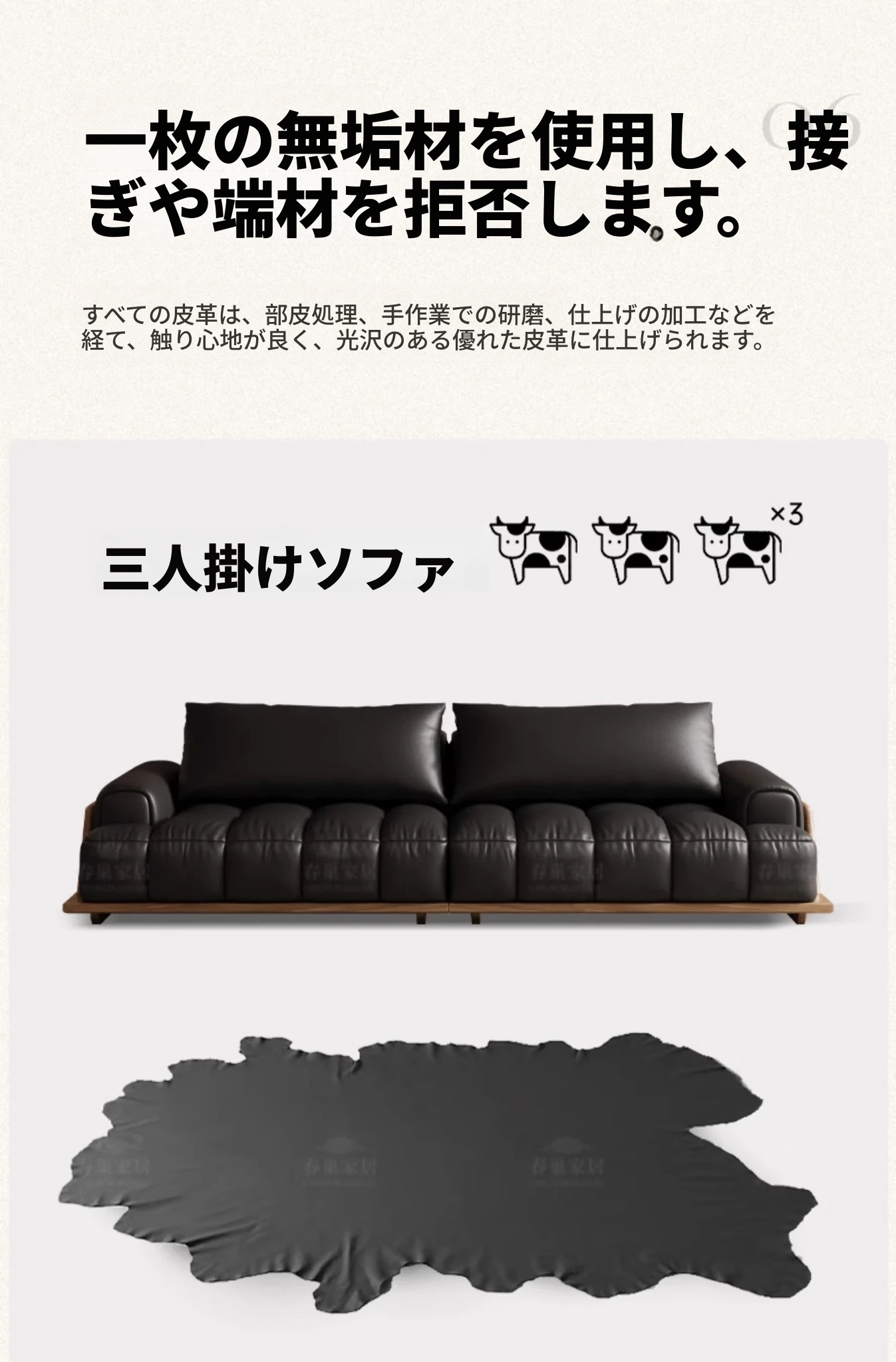 【クラウド版】4人用3.0M【SS級ブラックウォールナット+R級細かいしわのあるトップレザーの黄牛皮】