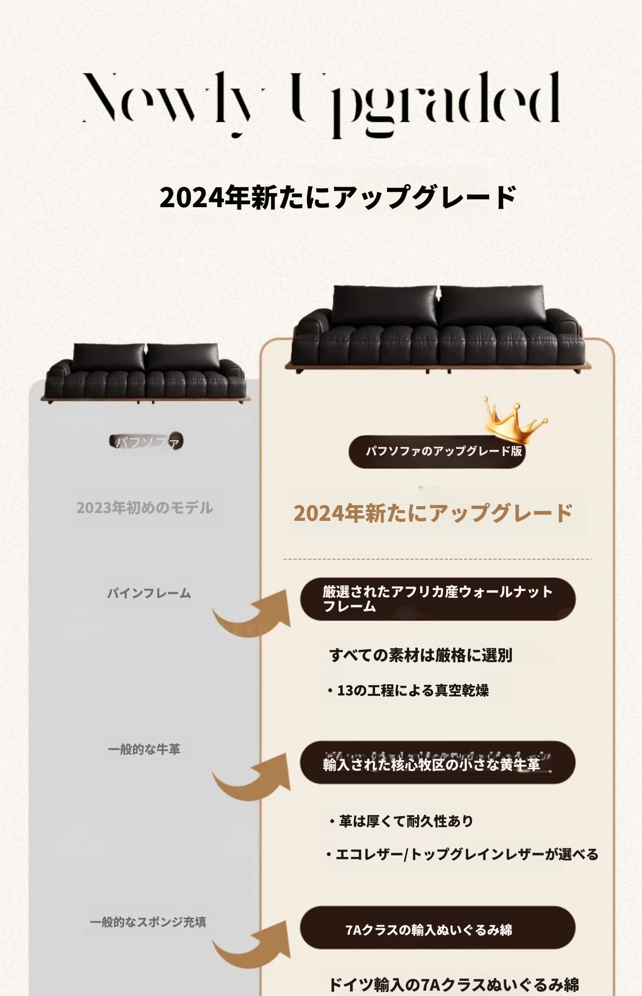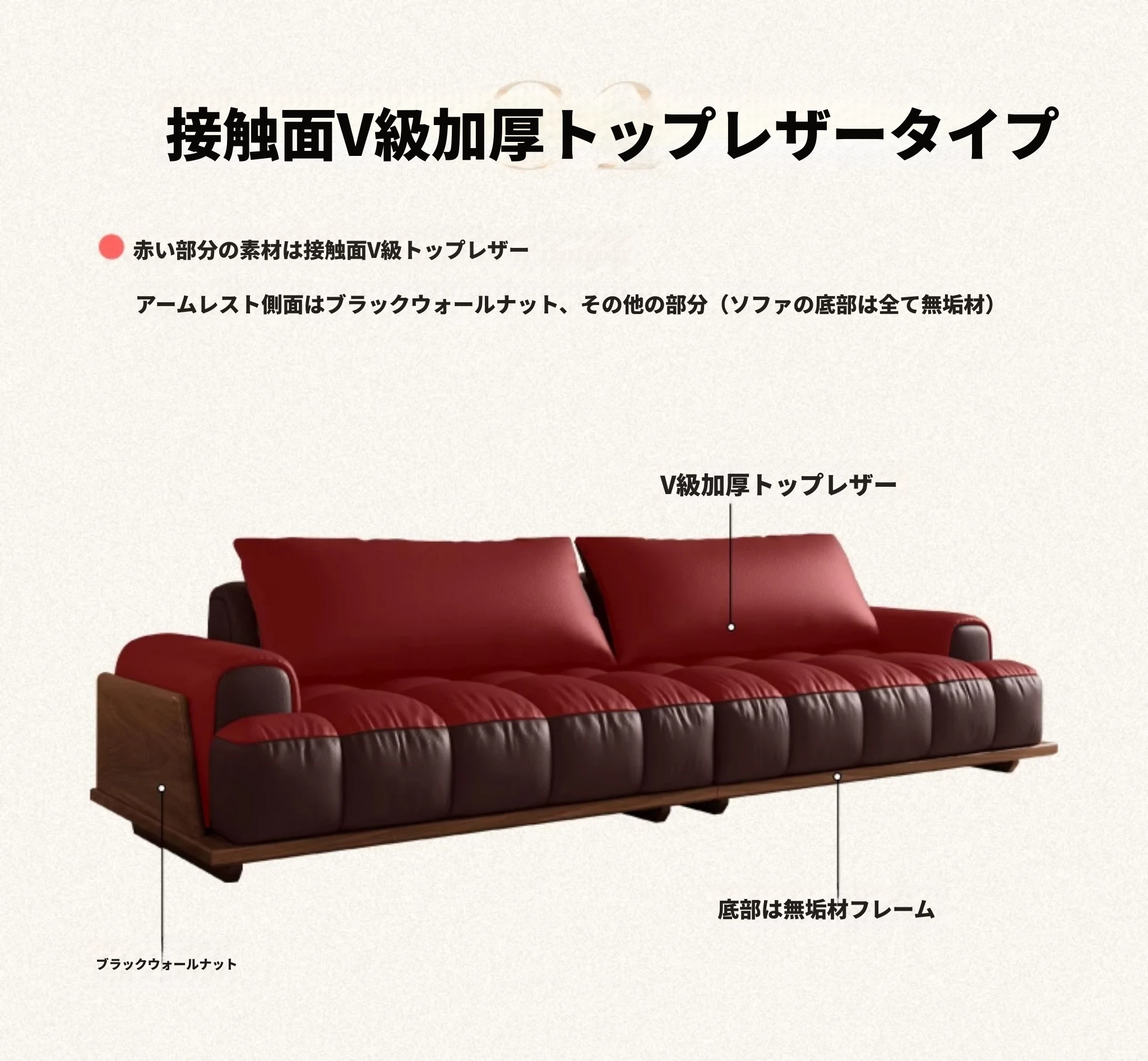 【クラウド版】4人用2.6M【SS級ブラックウォールナット+R級細かいしわのあるトップレザーの黄牛皮】