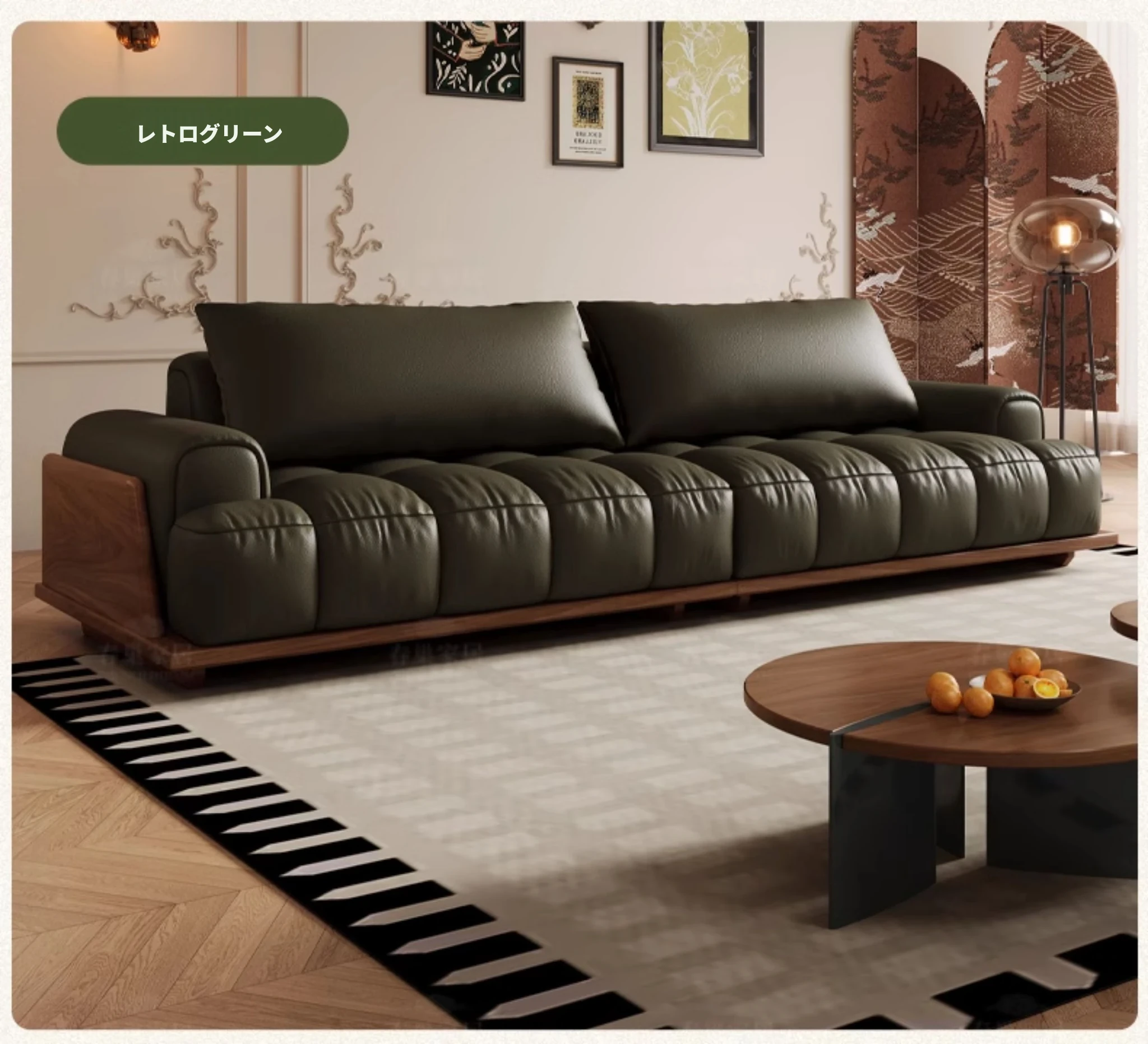 【クラウド版】4人用3.2M【SS級ブラックウォールナット+R級細かいしわのあるトップレザーの黄牛皮】