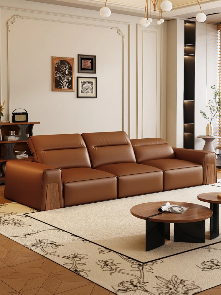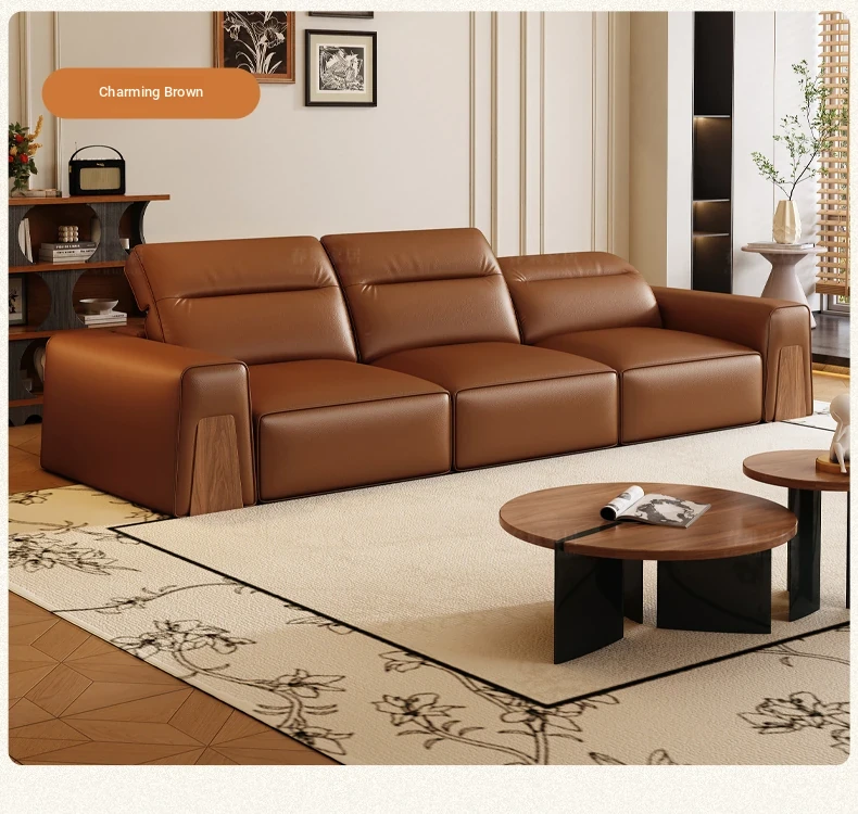 2025 New French Vintage Wall-Free Electric Sofa - Adjustable Genuine Top-Grain Leather Sofa Bed, Perfect for Style and Comfort
