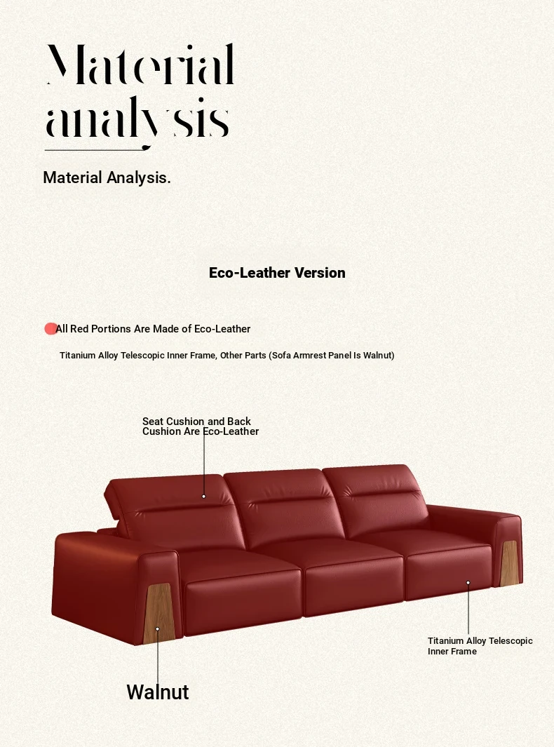 [Charming Brown-Comfort Edition] Four-person 129.92in [S-grade Black Walnut + S-grade High Quality Ecological Leather]]