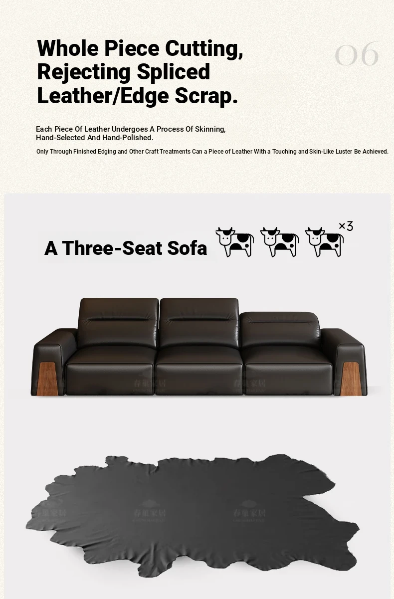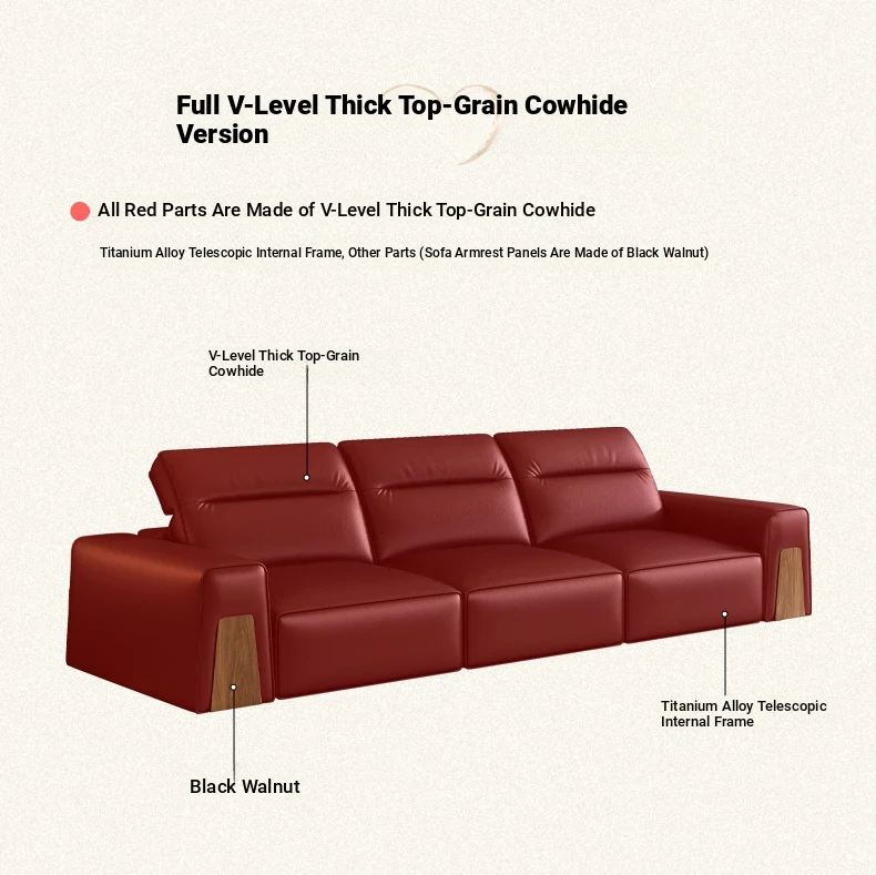 [Charming Brown-Cloud Edition] Four-person 129.92in [SS Black Walnut + R Fine Break Head Layer Cattle Leather]]
